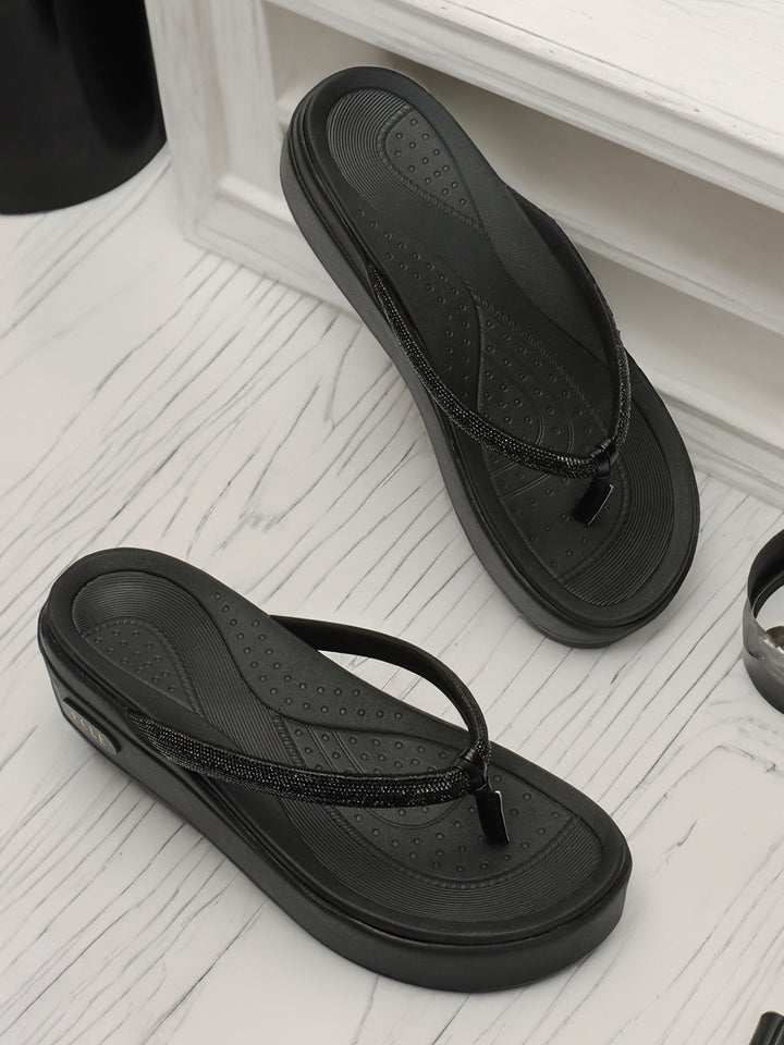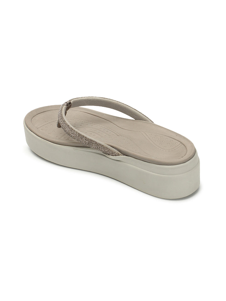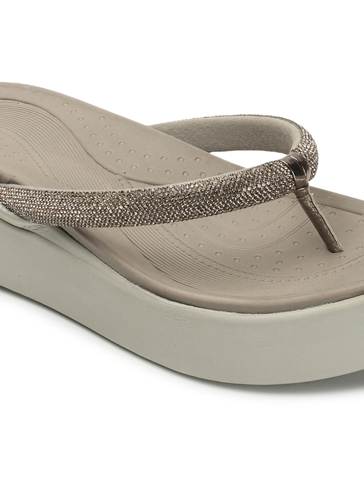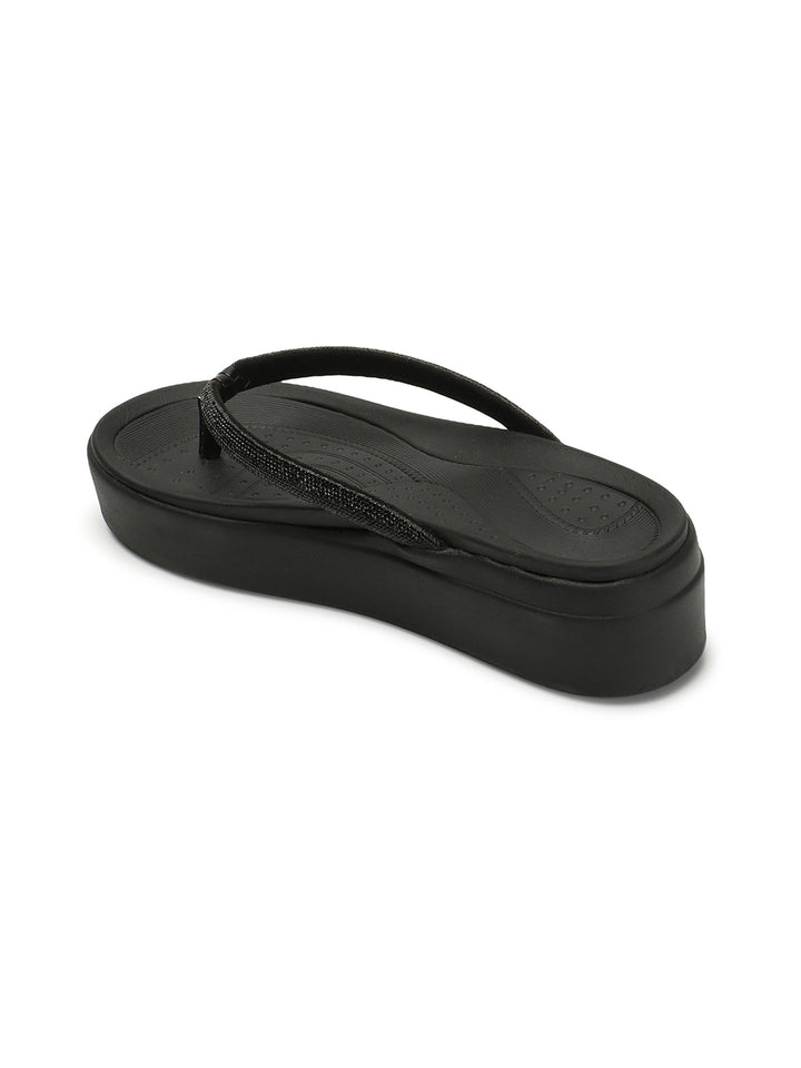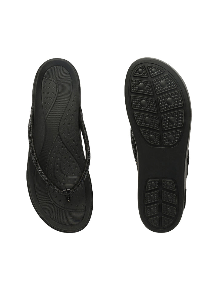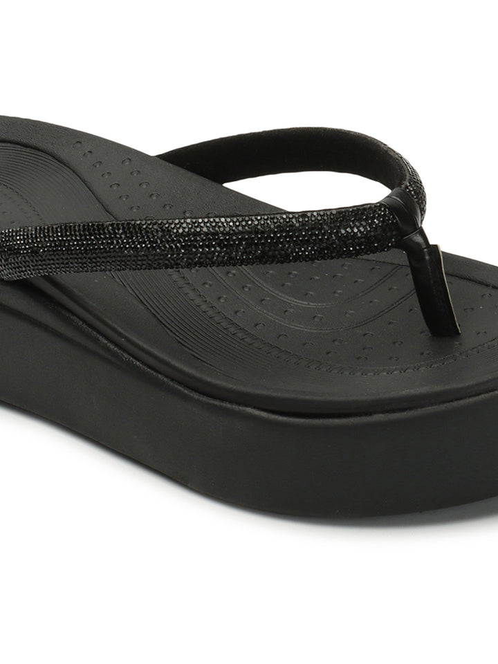 Step into sparkling comfort with these stylish platform thong sandals. Featuring a dazzling glitter-embellished strap and a comfortable, elevated sole, these sandals are perfect for adding a touch of glamour to your casual look. The contoured footbed provides support, making them ideal for everyday wear, beach outings, or relaxed evenings.