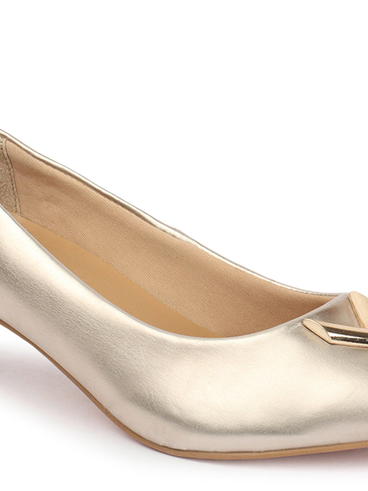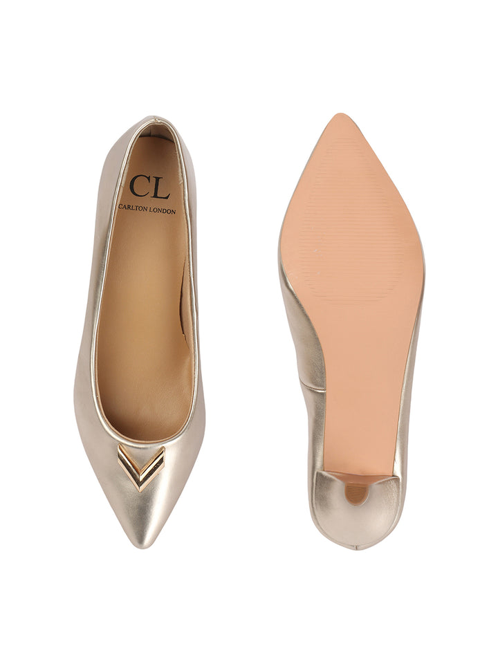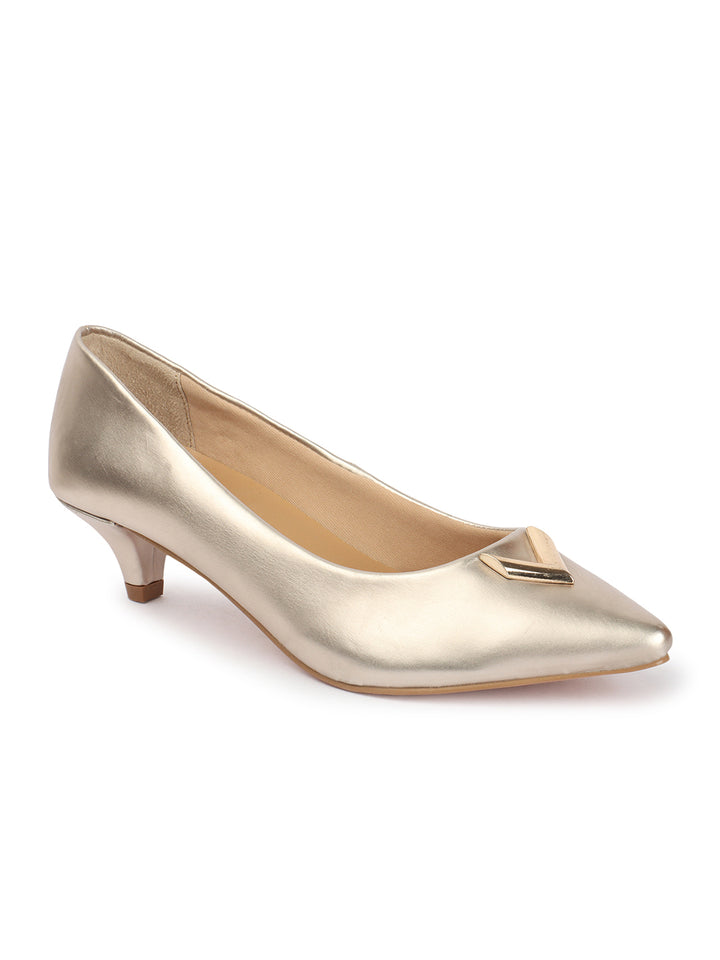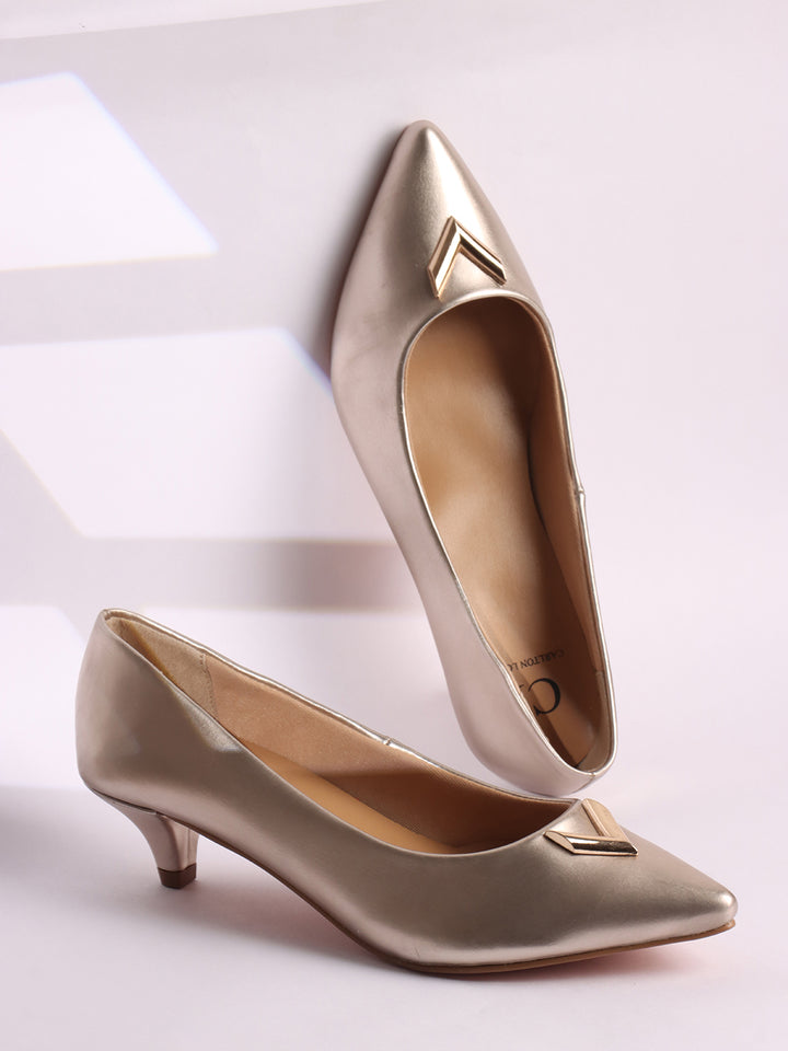 Carlton London Metallic Gold Pointed Toe Kitten Heel Pumps