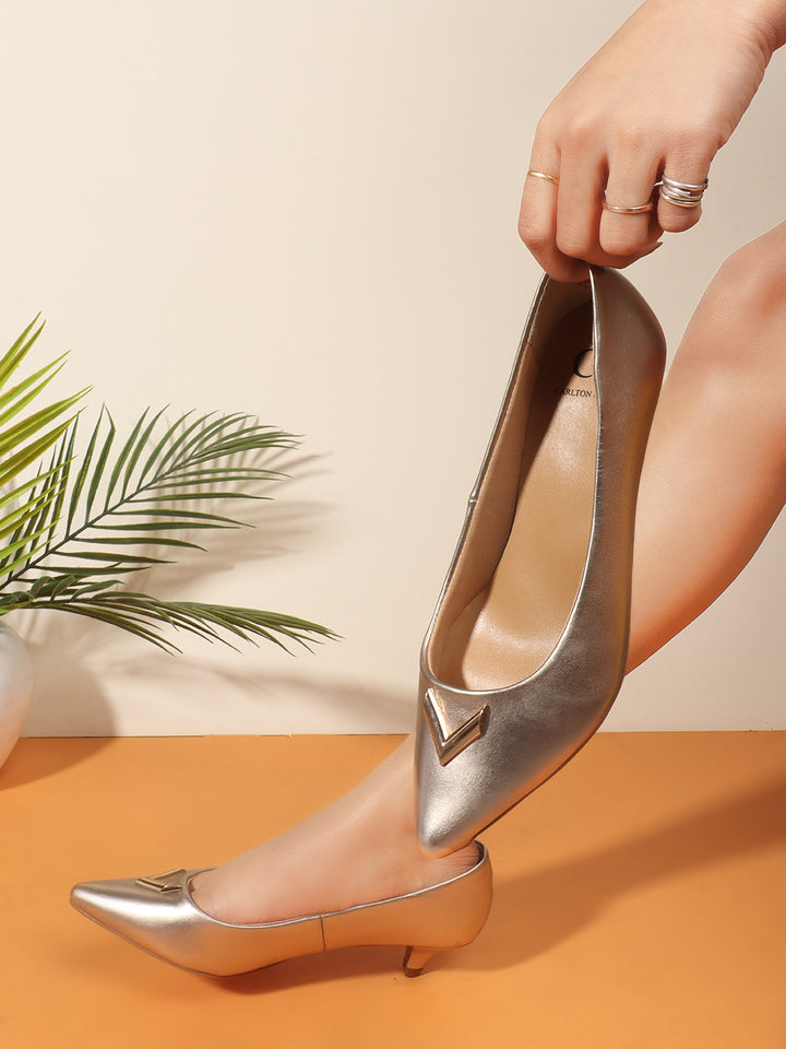 Step into sparkling style and comfort with these Metallic Gold Pointed Toe Kitten Heel Pumps Women's Designed for a fashionable yet relaxed look, these footwear The comfortable Perfect for warm weather, these versatile are ideal for casual outings, special events, or simply adding a touch to your everyday look.