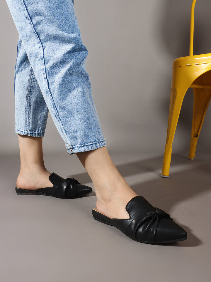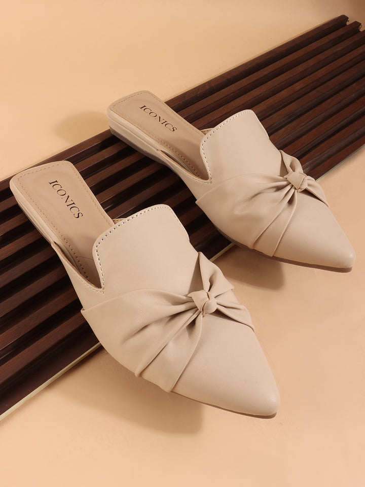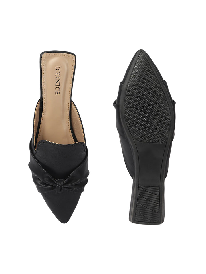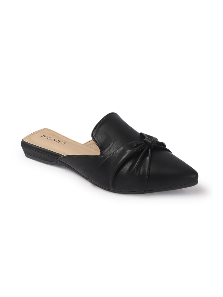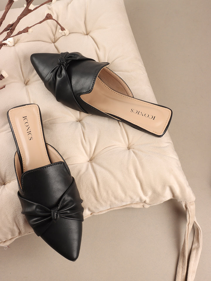 ICONICS Pointed-Toe Knotted Vamp Slip-On Flat Mule