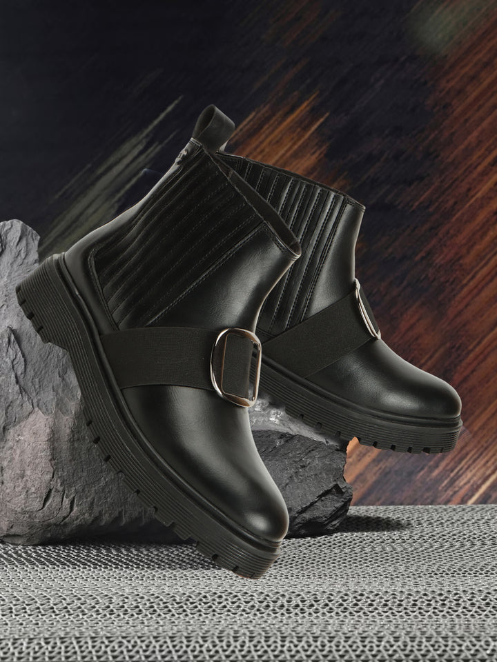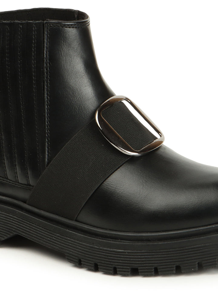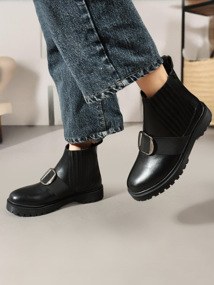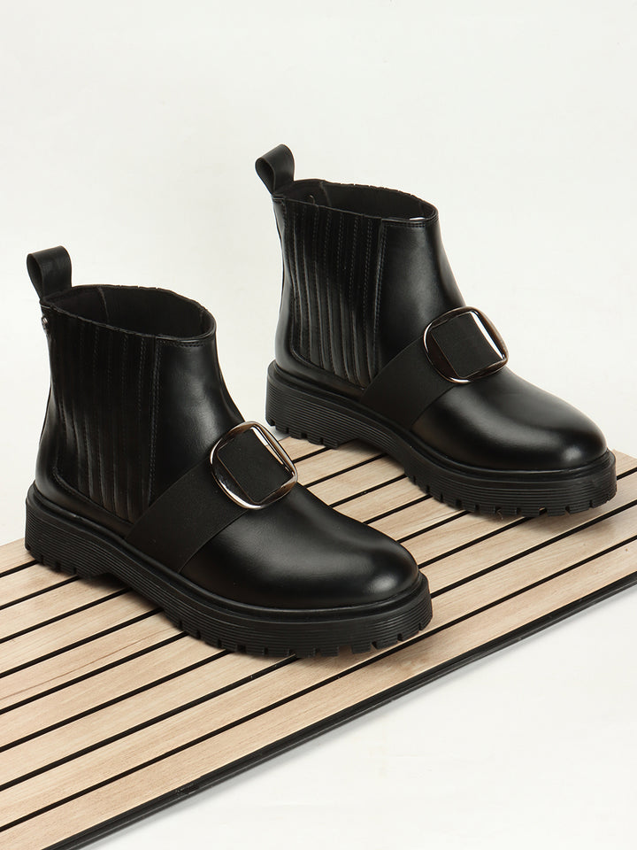 Women Casual Block-Heeled Chelsea Boots With Buckle Details