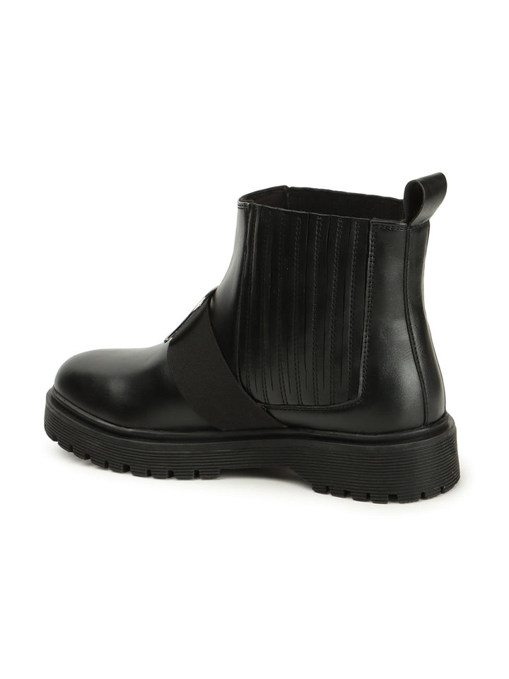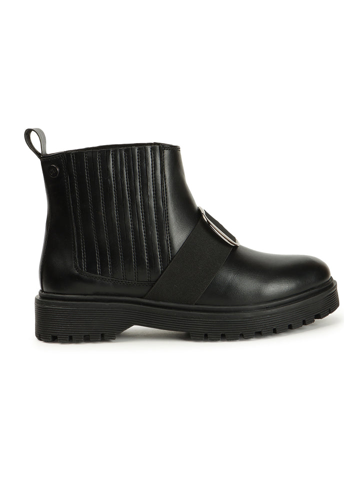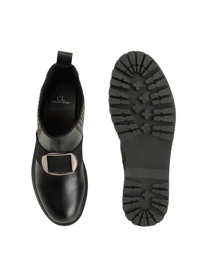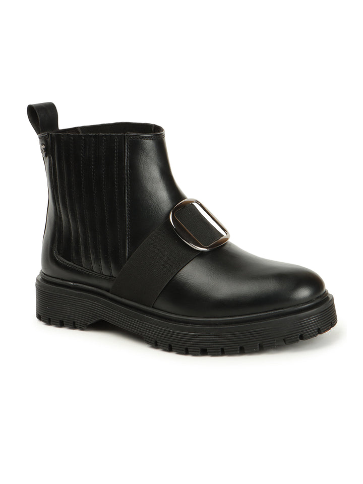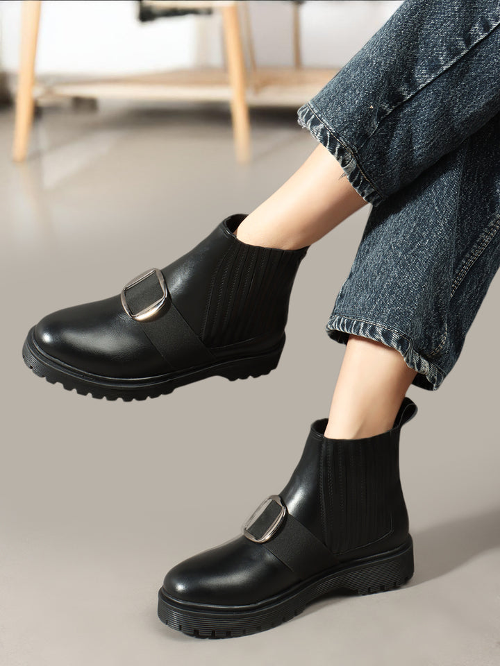 Women Casual Block-Heeled Chelsea Boots With Buckle Details