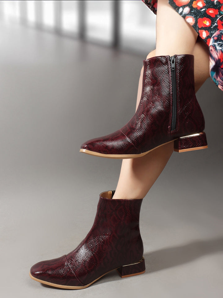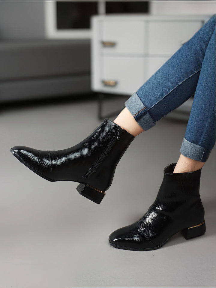 Women Casual Textured Zippered Boots