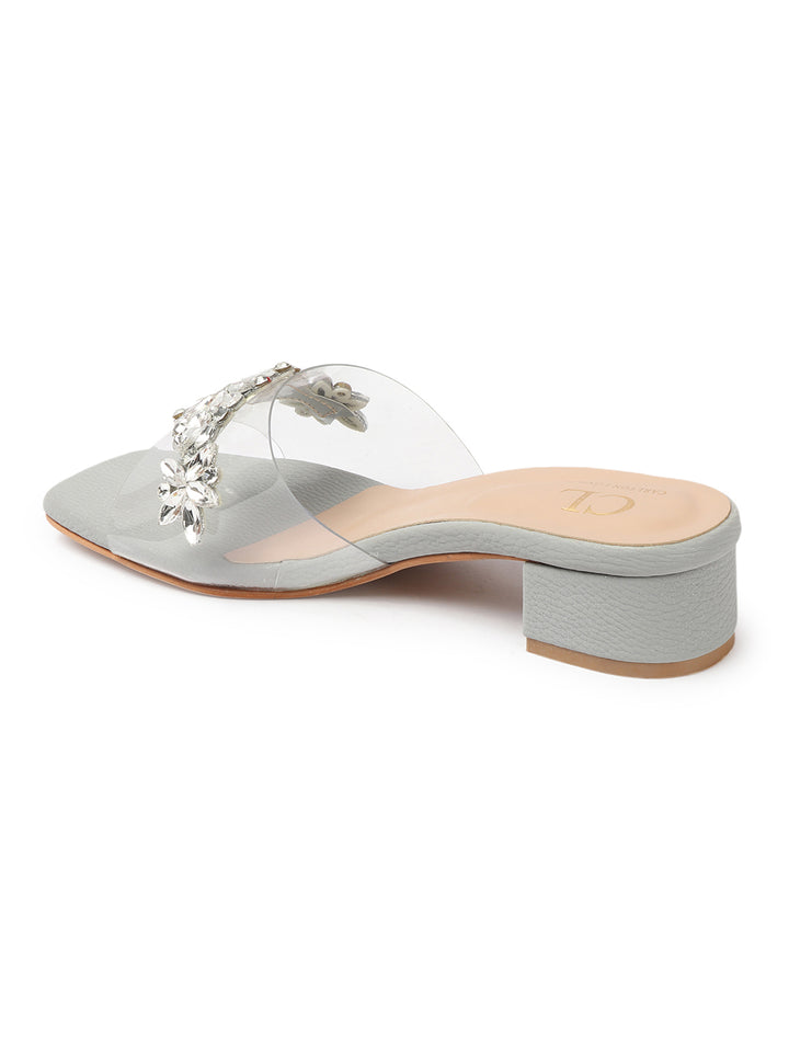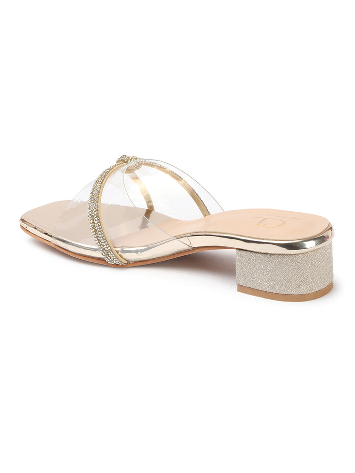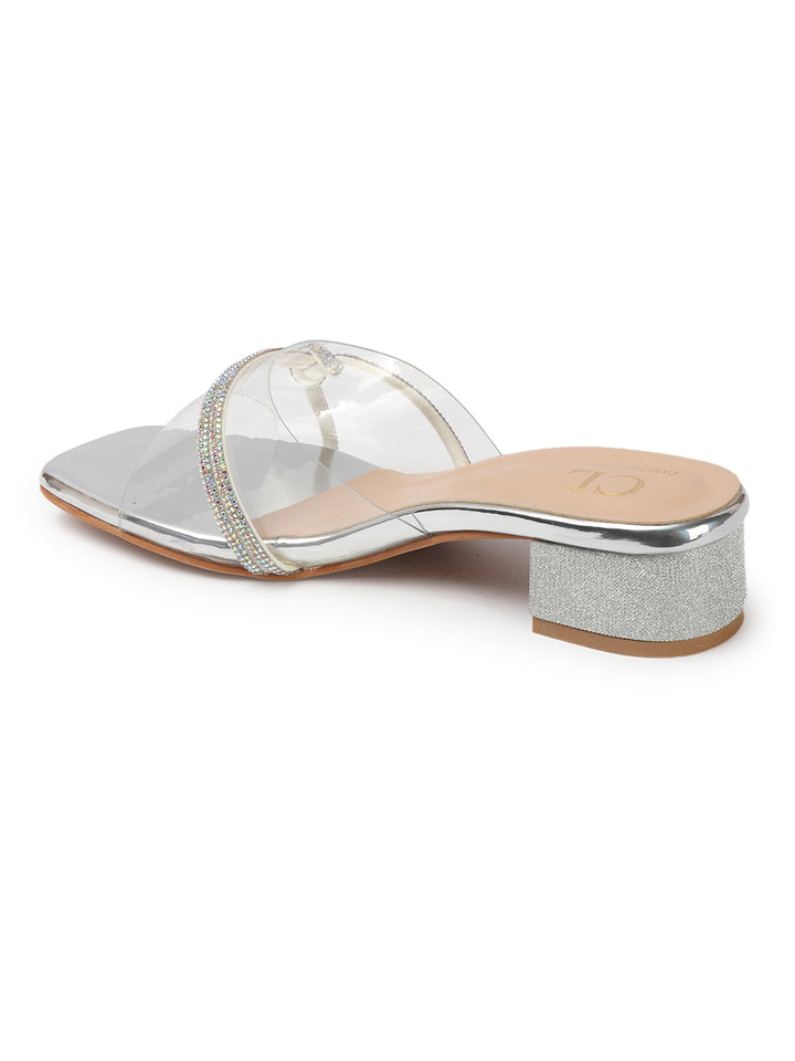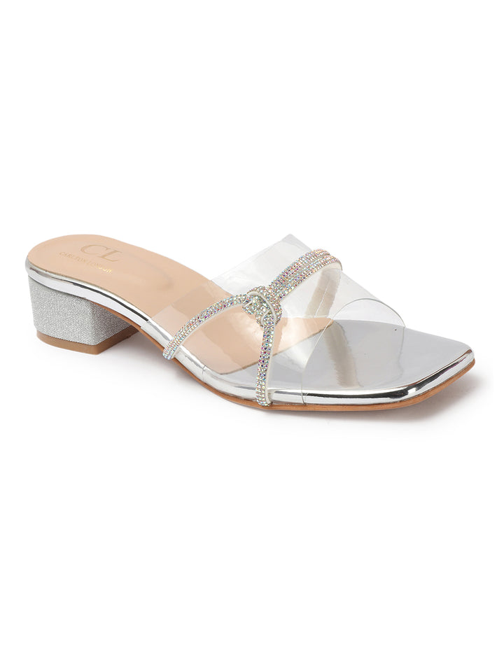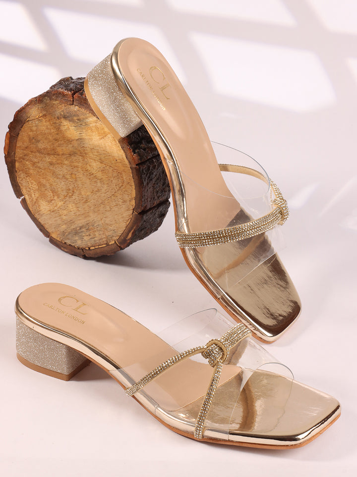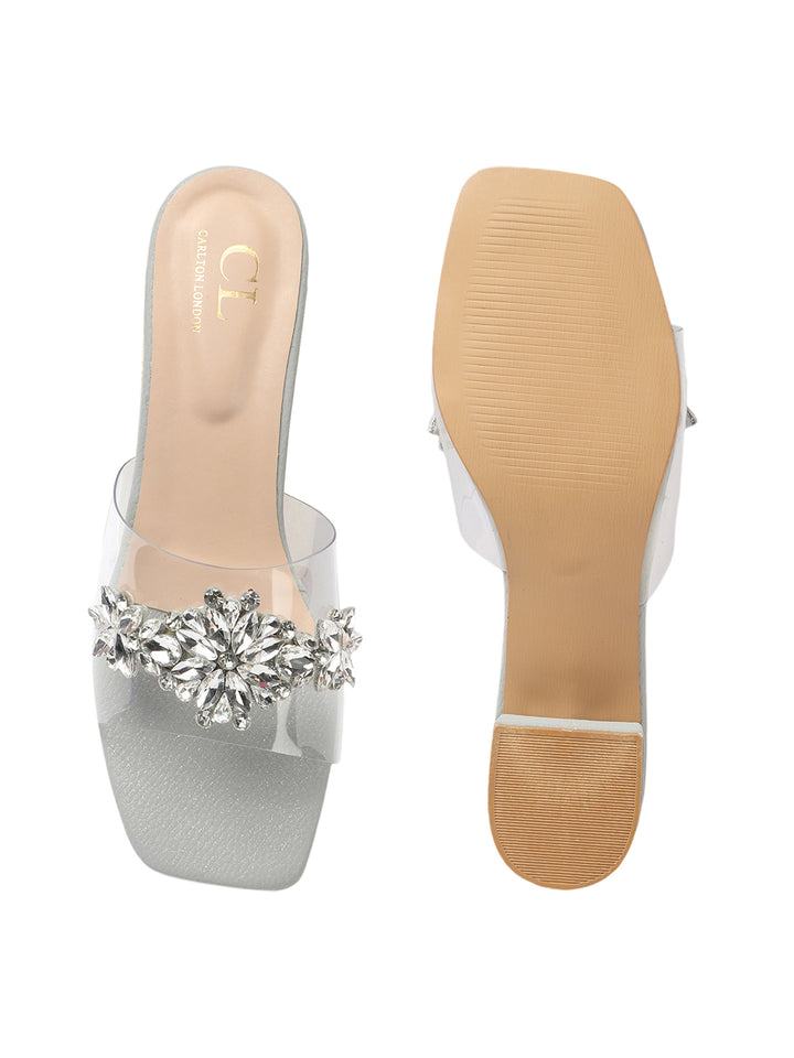 Carlton London Women Embellished Block Heels Transparent Sandals