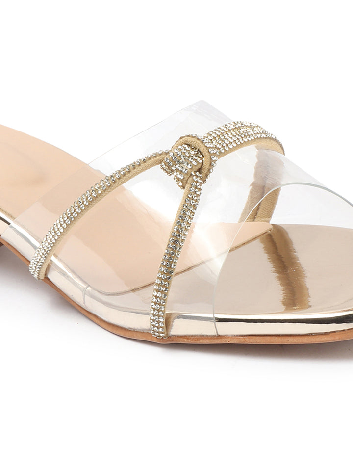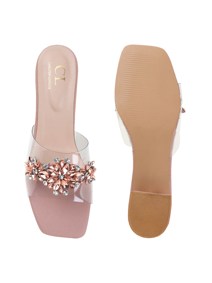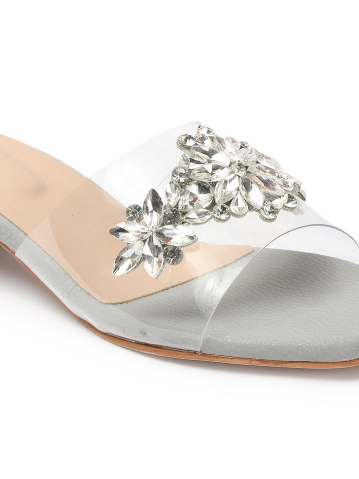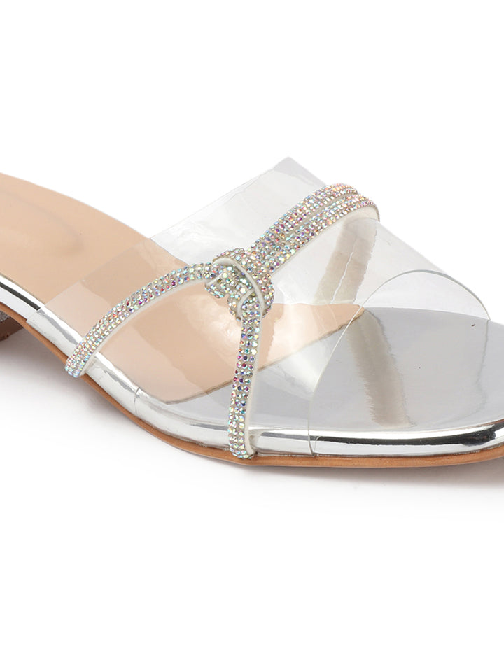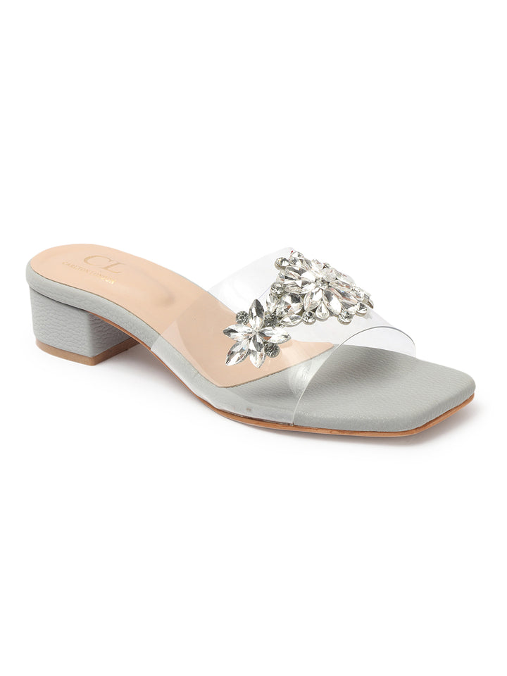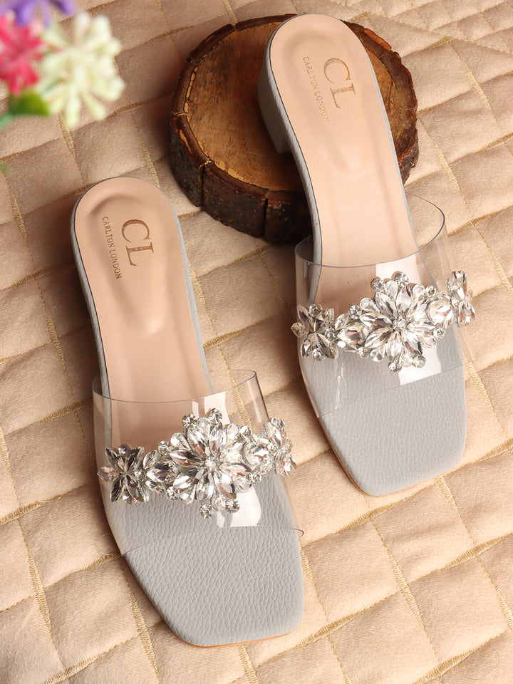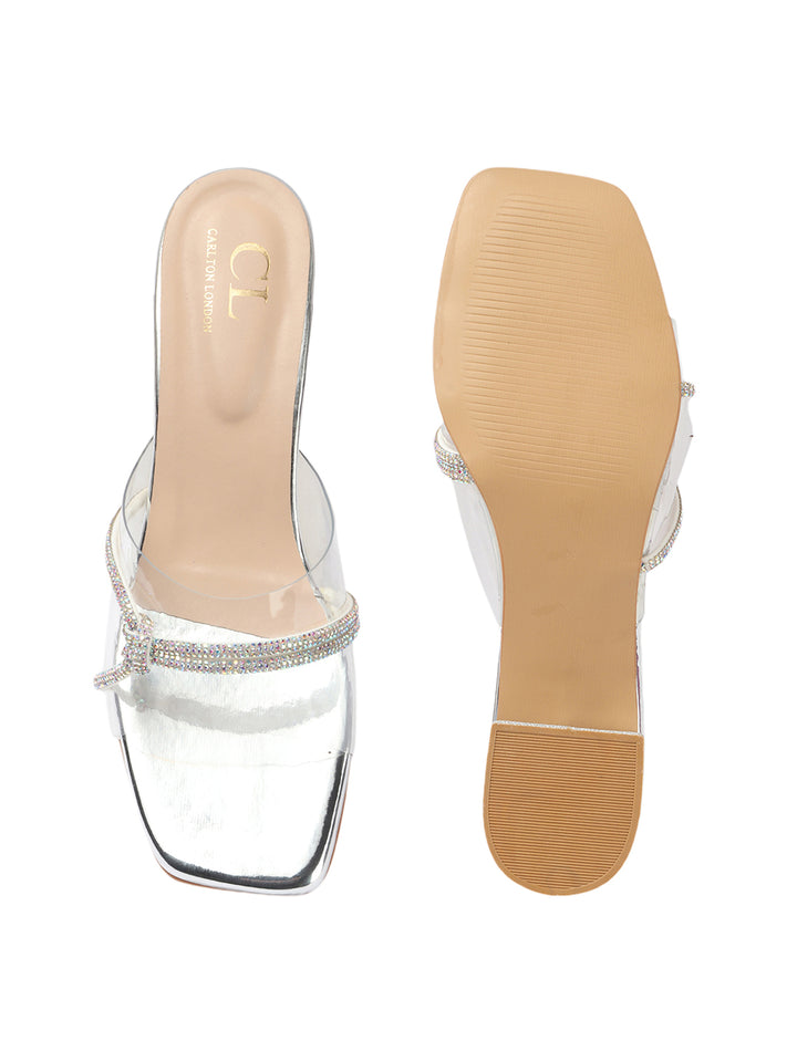 Carlton London Women Embellished Block Heels Transparent Sandals