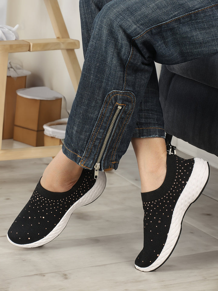 Step into sparkling style and comfort with these Women Embellished Lightweight Slip-On Sneakers Women's Designed for a fashionable yet relaxed look, these footwear The comfortable Perfect for warm weather, these versatile are ideal for casual outings, special events, or simply adding a touch to your everyday look.