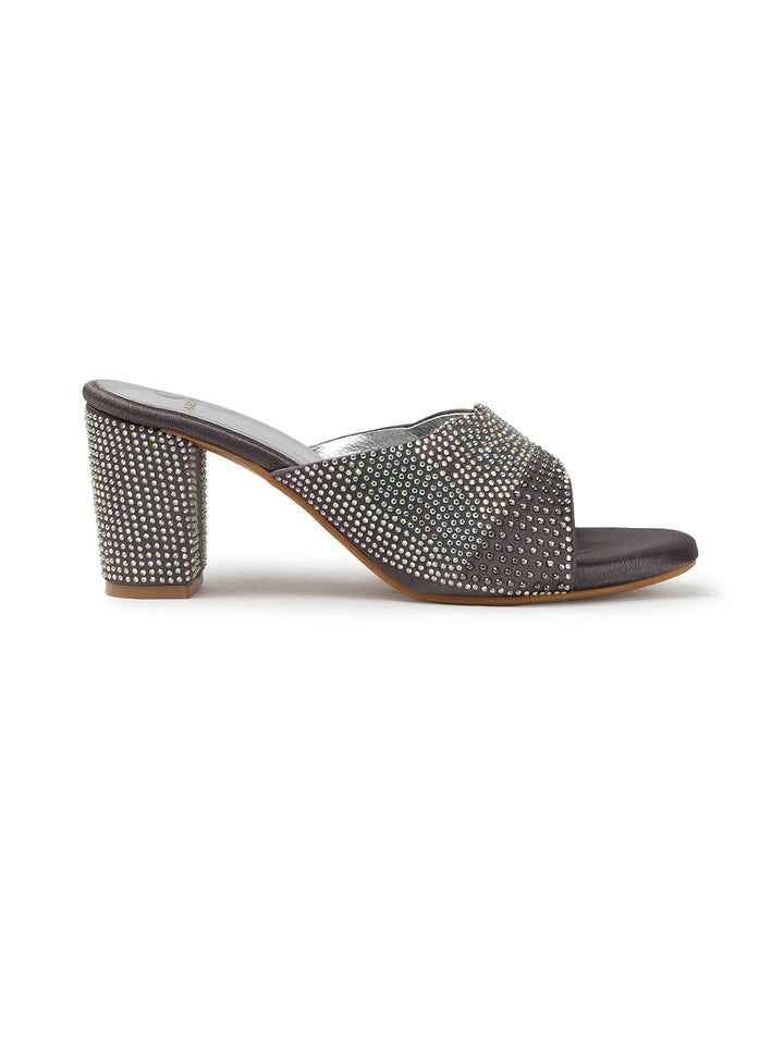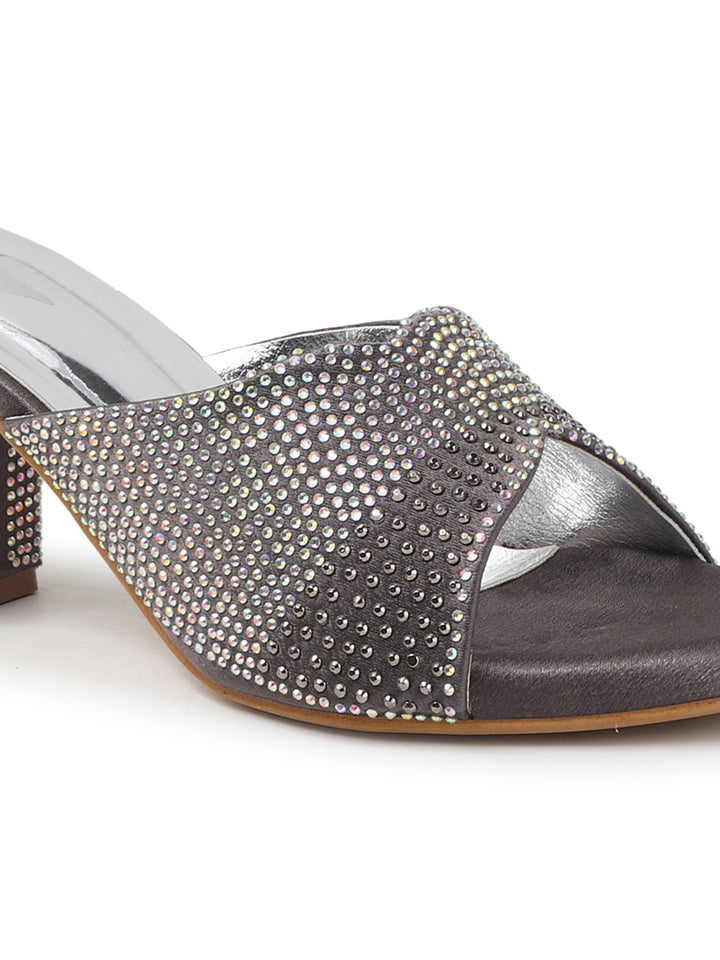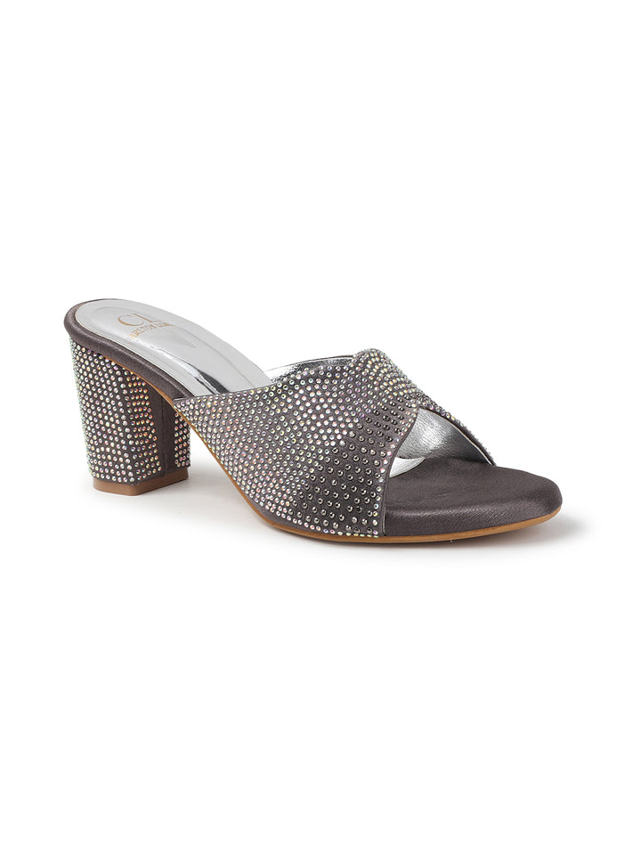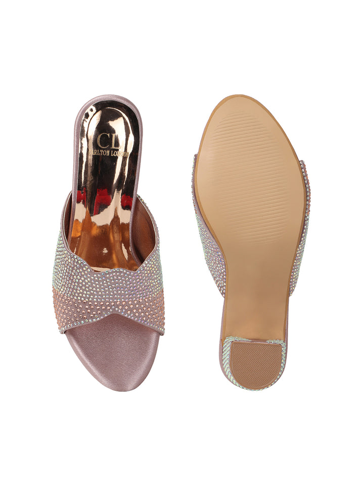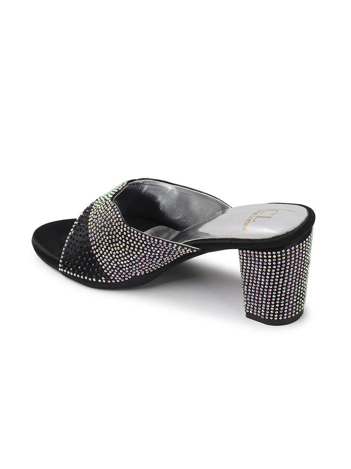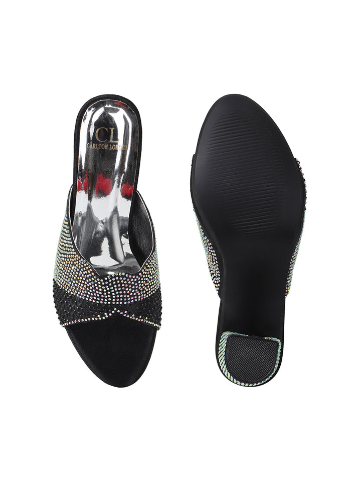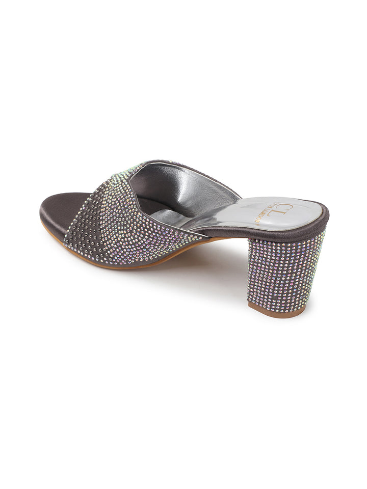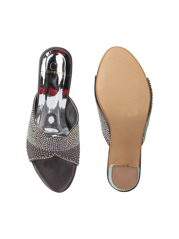 Carlton London Women Lridescent Gem Embellished Block Heel Sandals