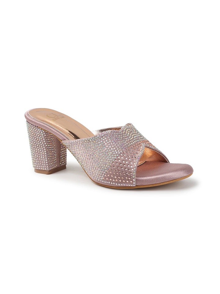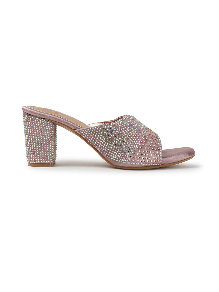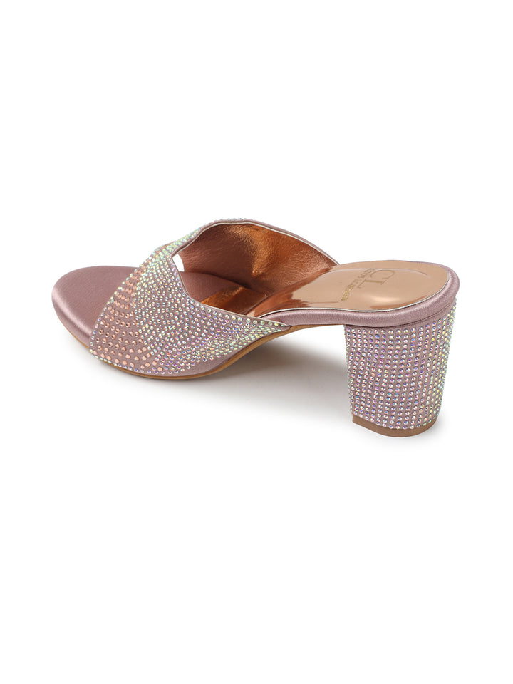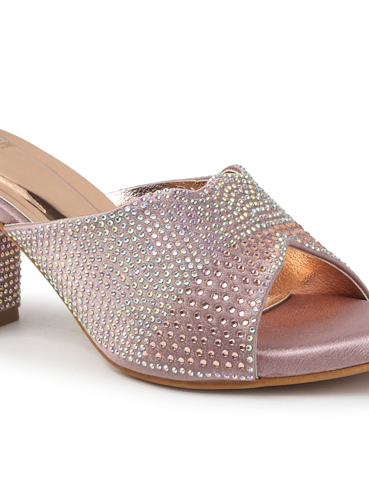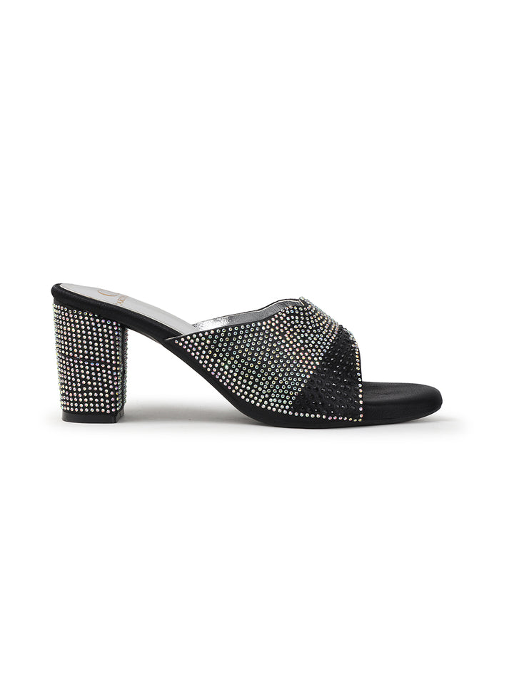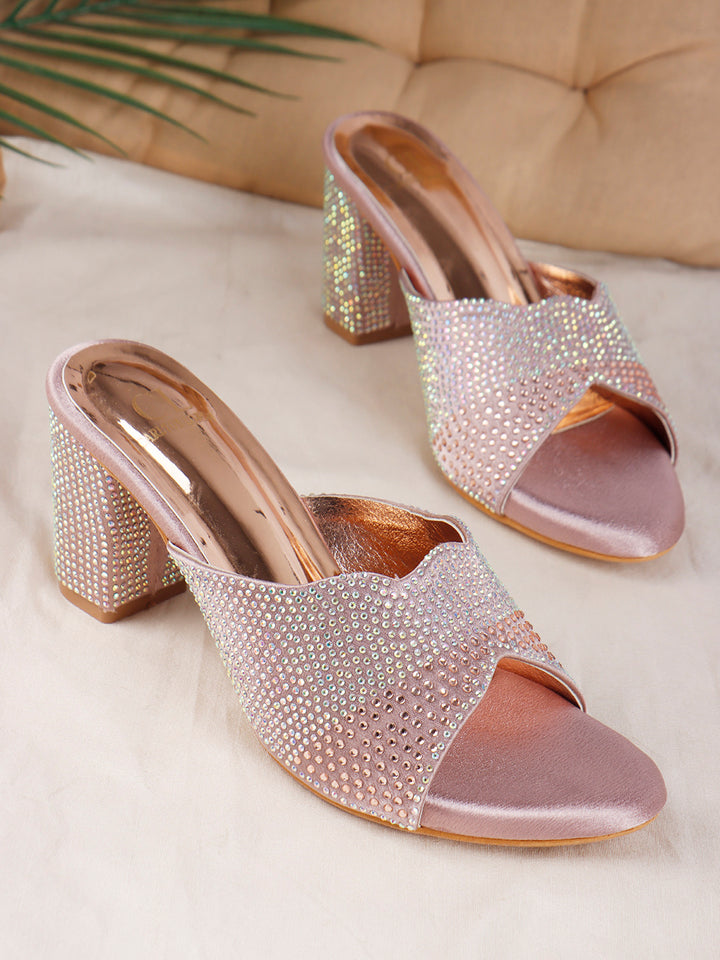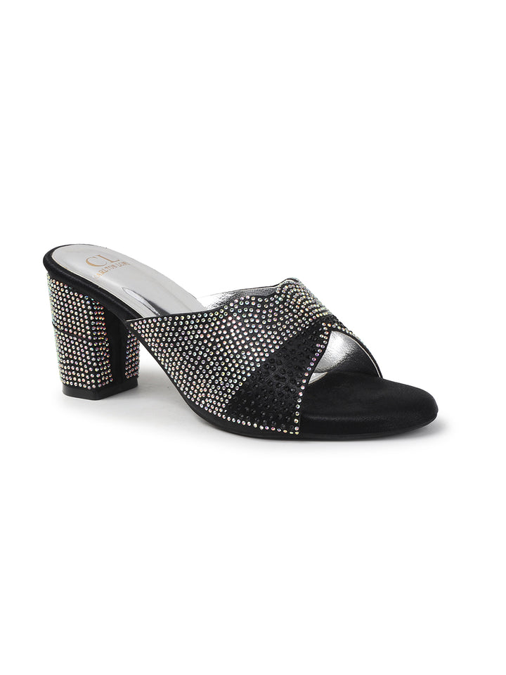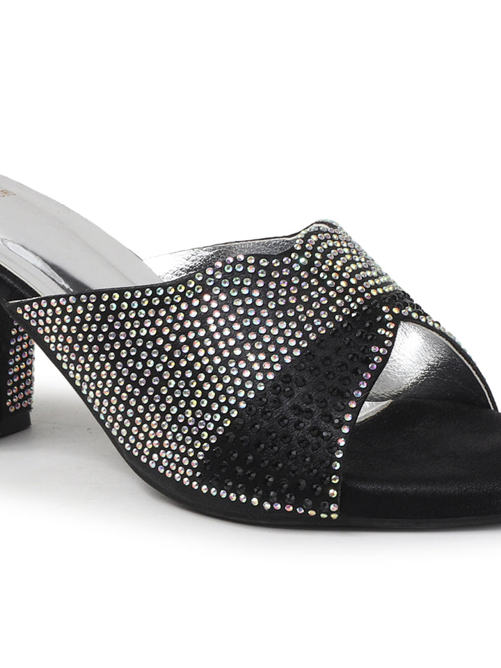 Carlton London Women Lridescent Gem Embellished Block Heel Sandals