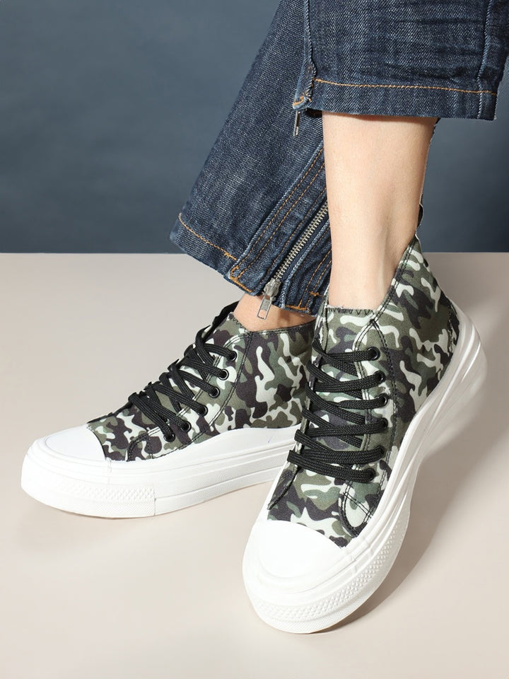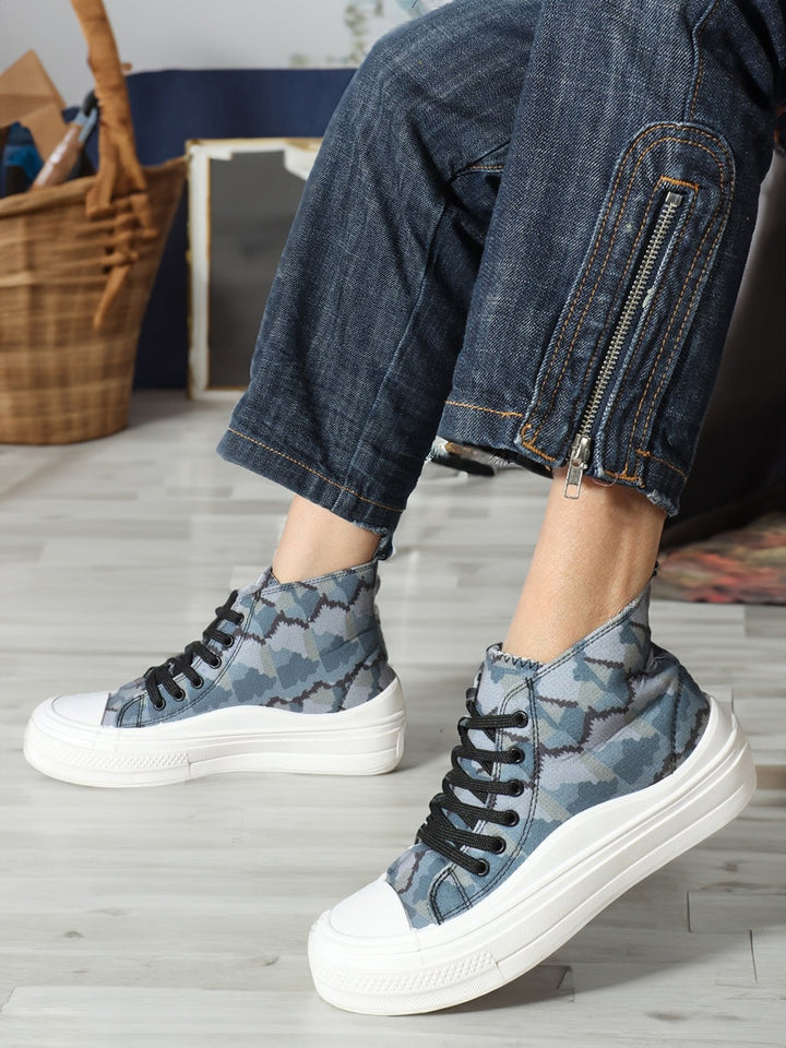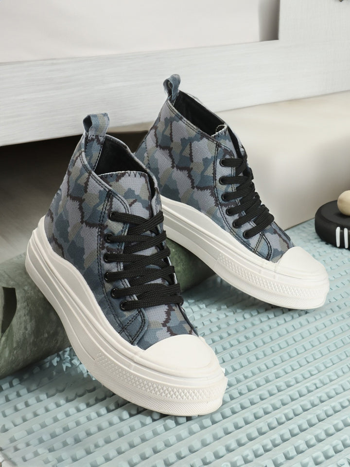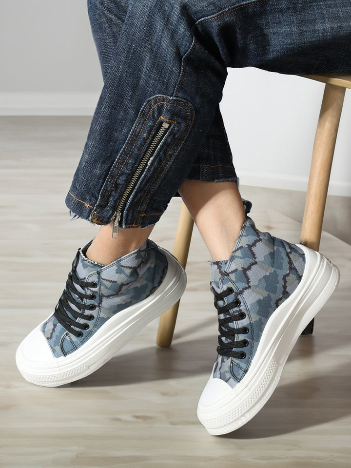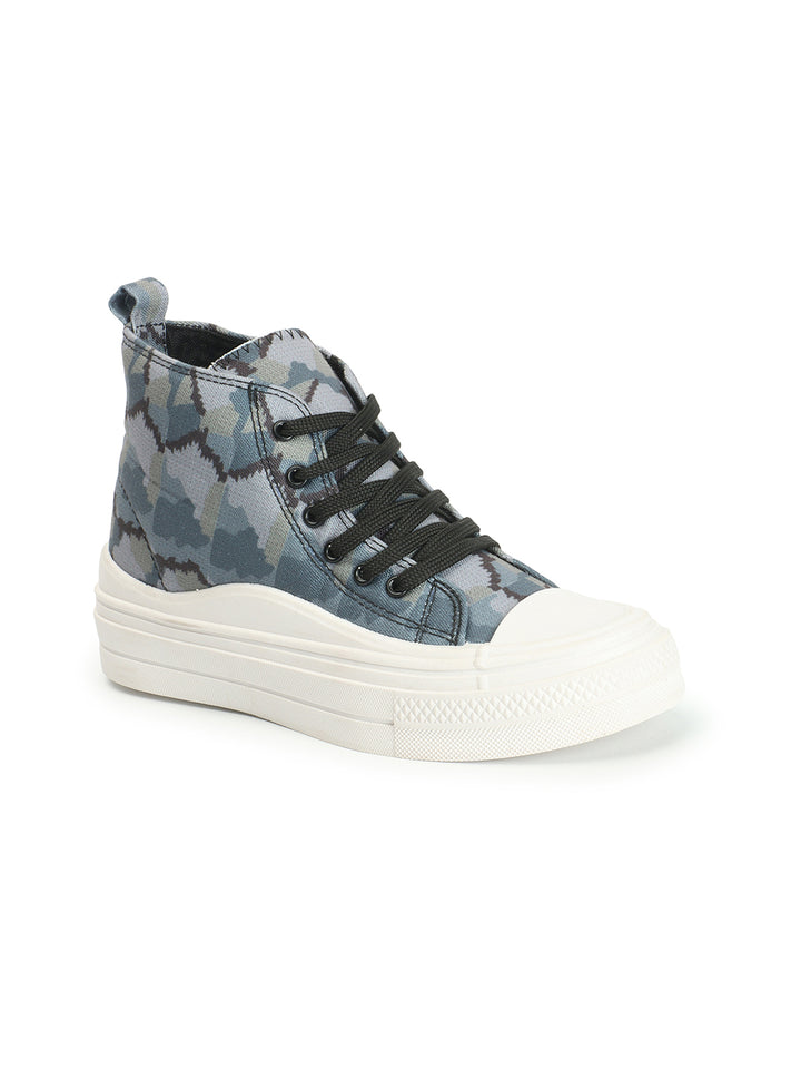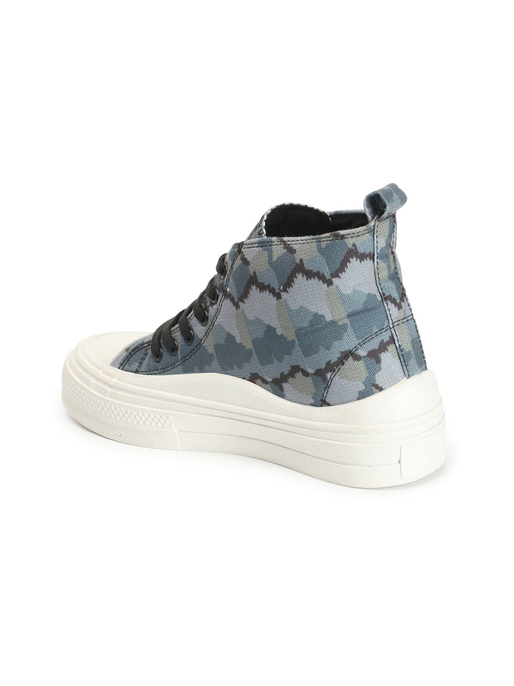 Women Printed Mid Top Lightweight Textile Comfort Insole Sneakers