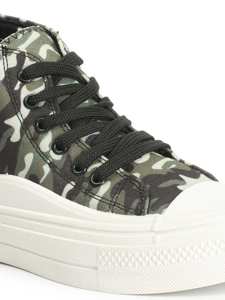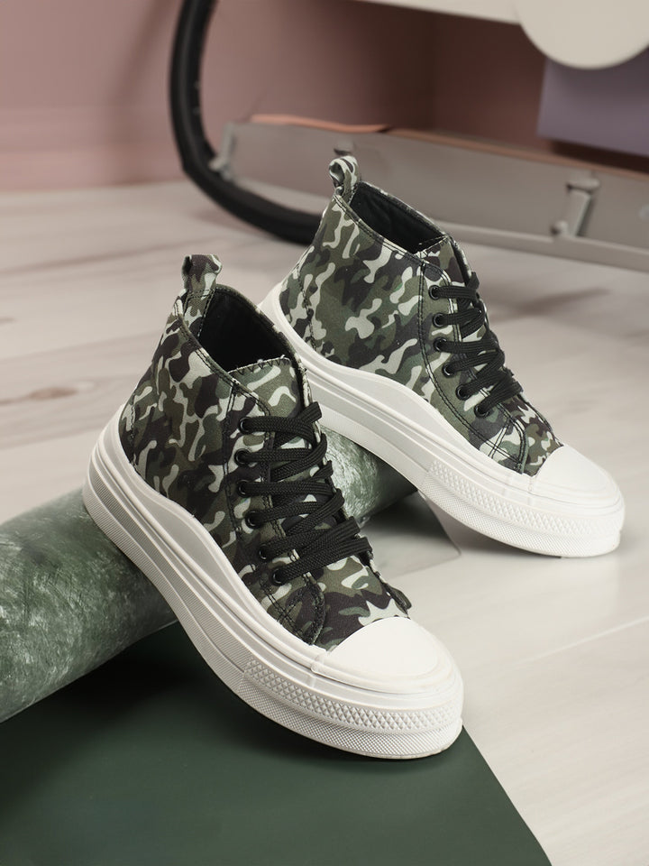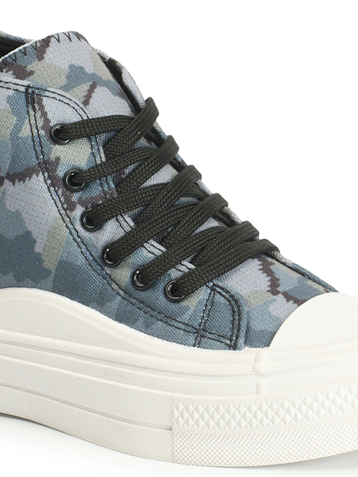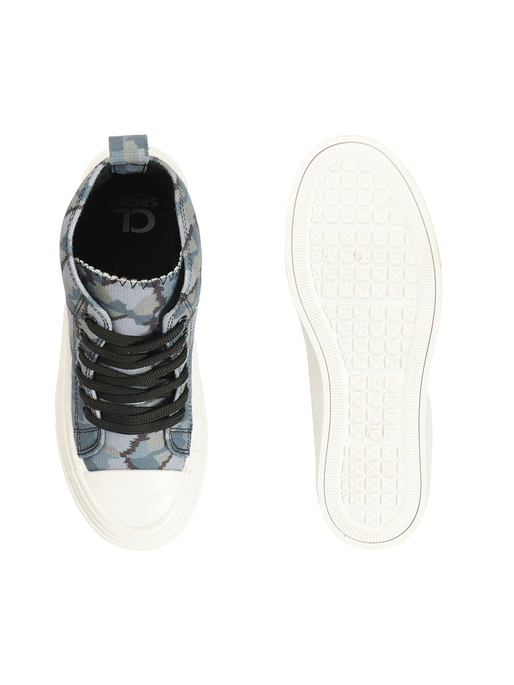 Carlton London Women Printed Mid Top Lightweight Textile Comfort Insole Sneakers