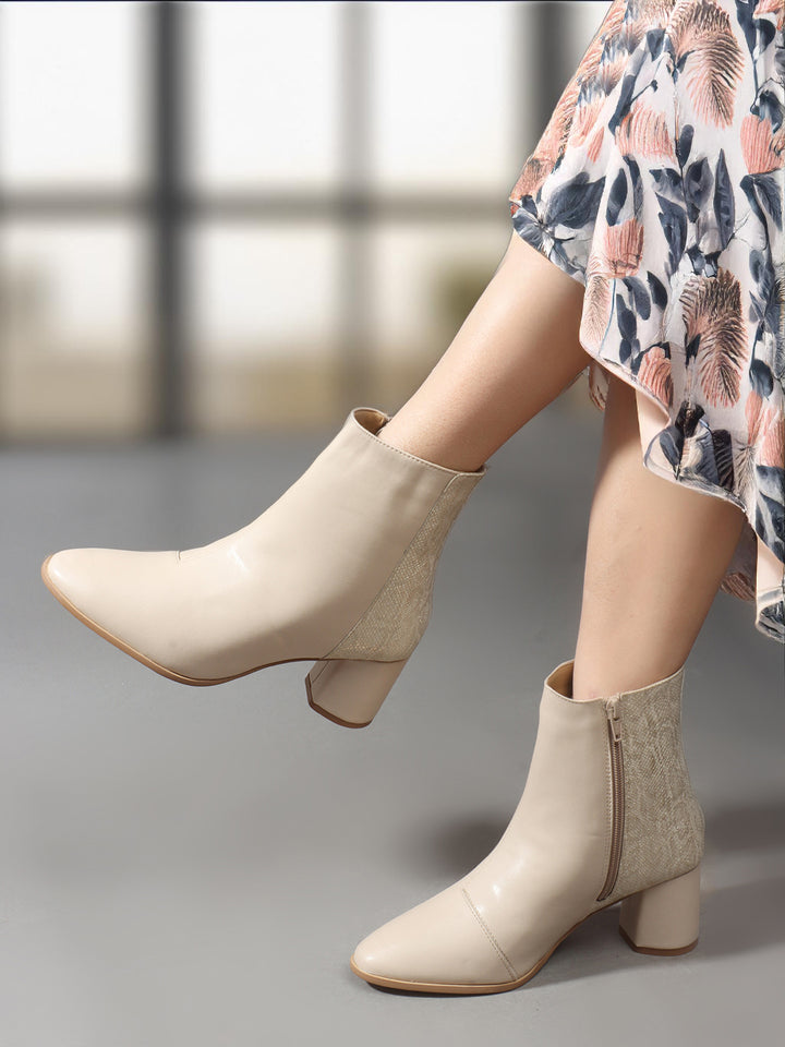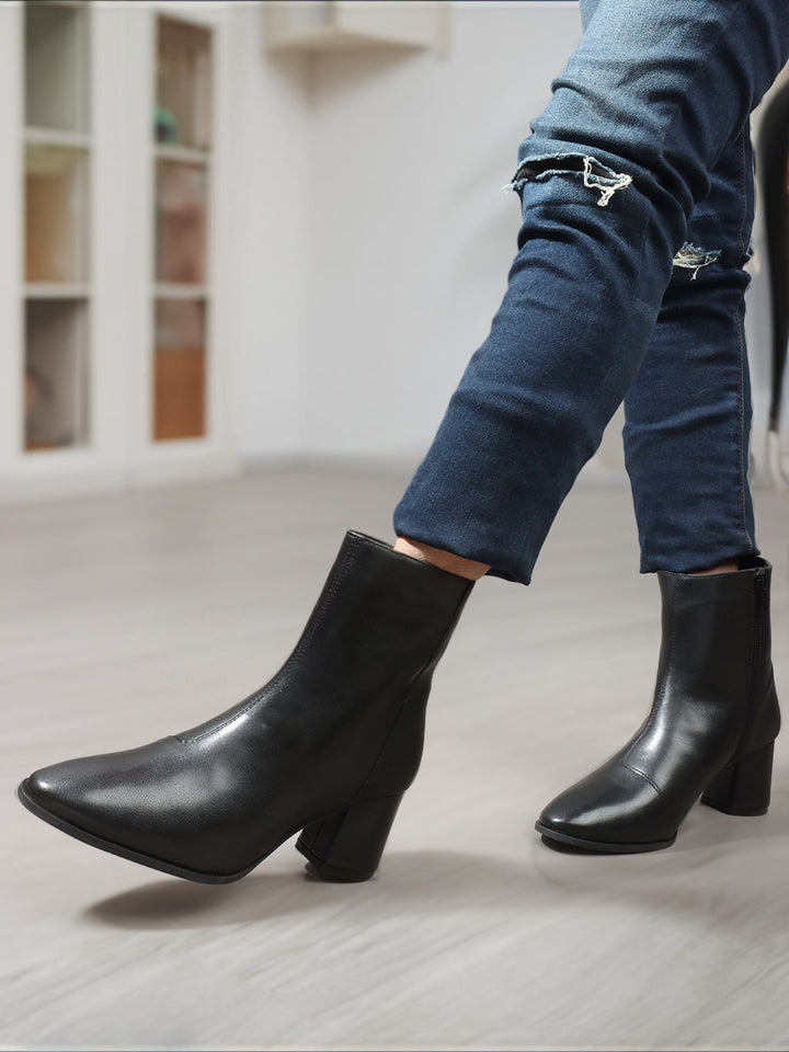Women Round Toe Mid-Top Solid Chelsea Boots