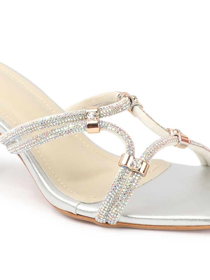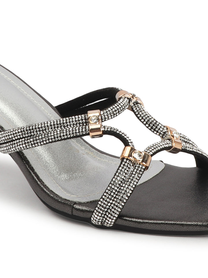 Carlton London Women Square Toe Embellished Party Stiletto Sandals