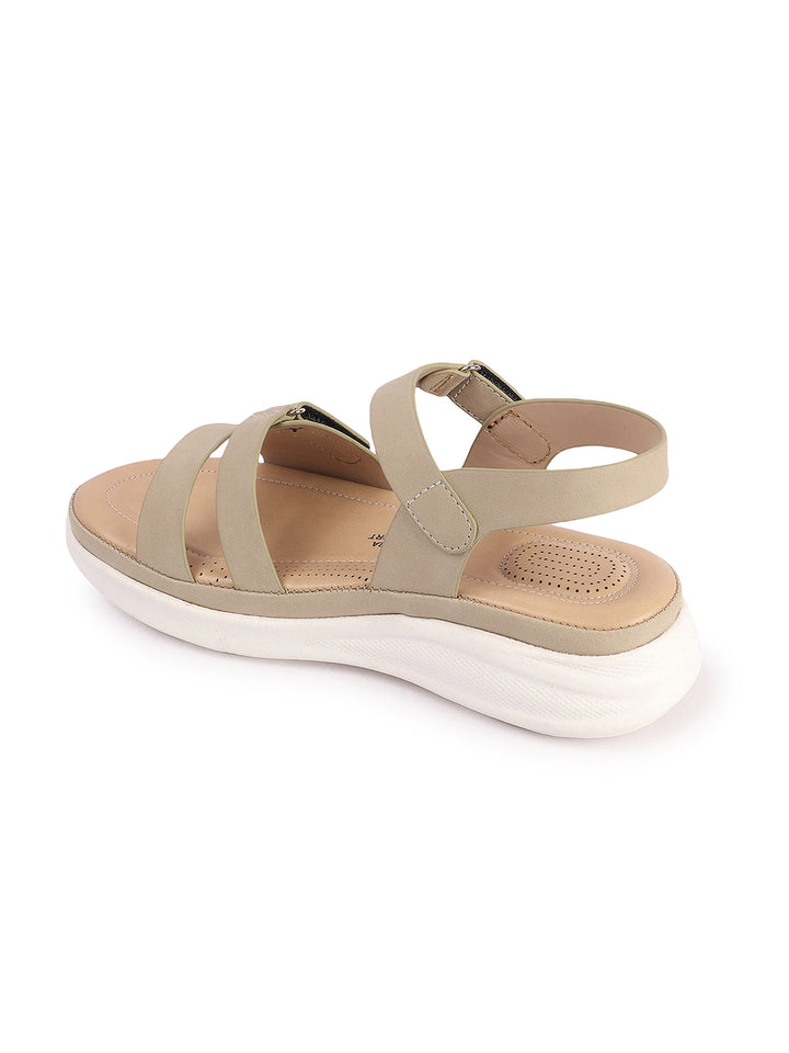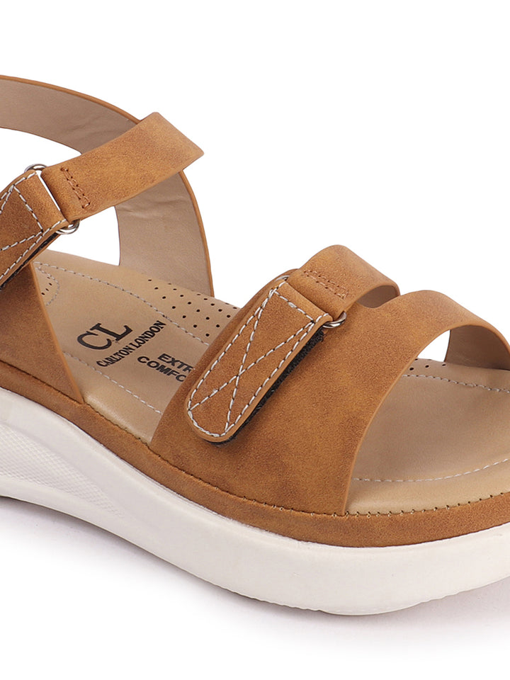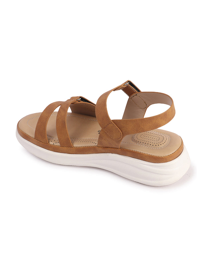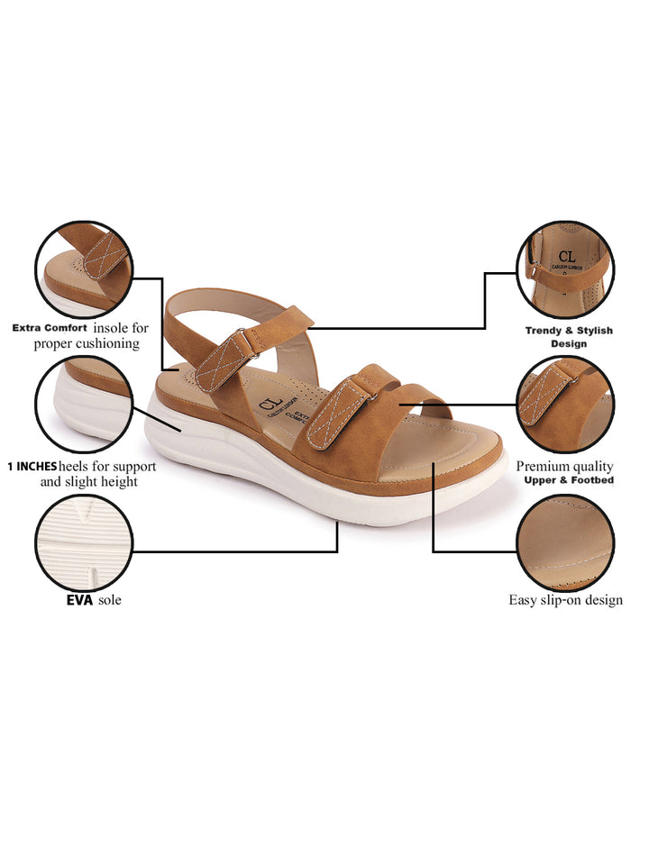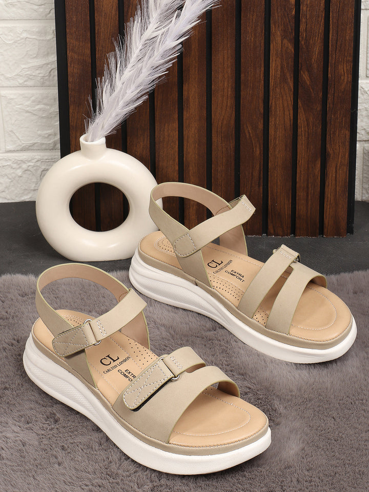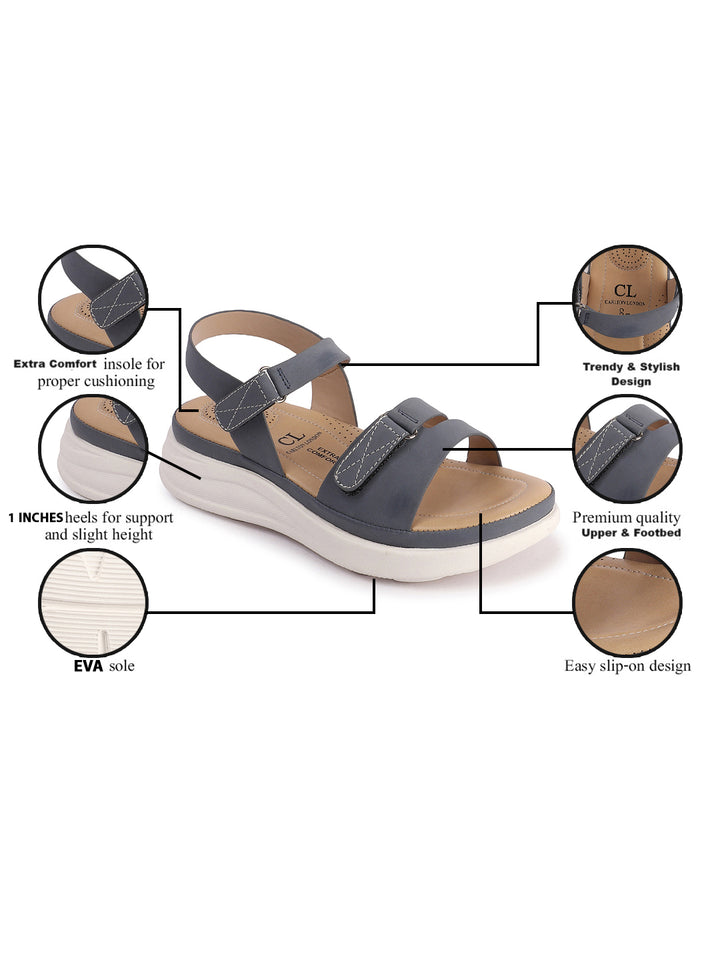 Carlton London Women's Adjustable Velcro Strap Comfort Sandals