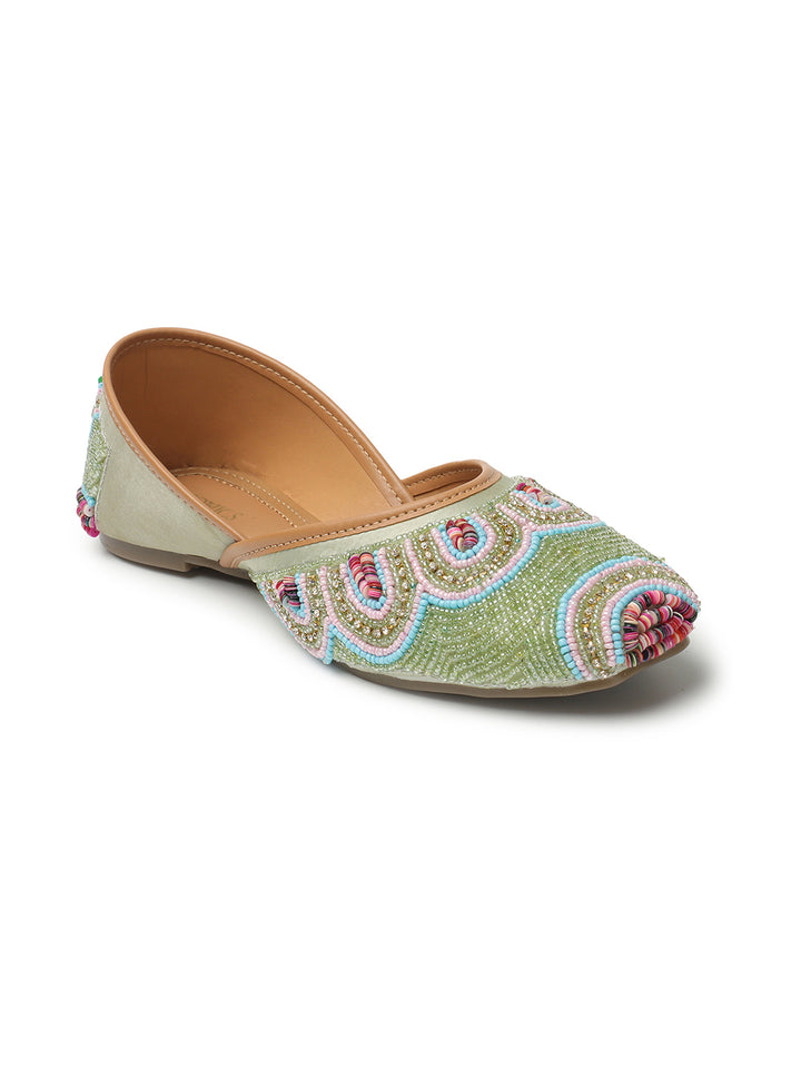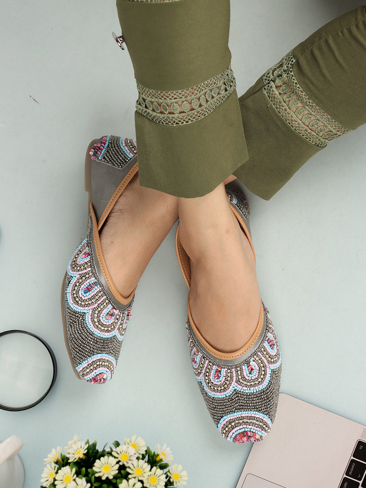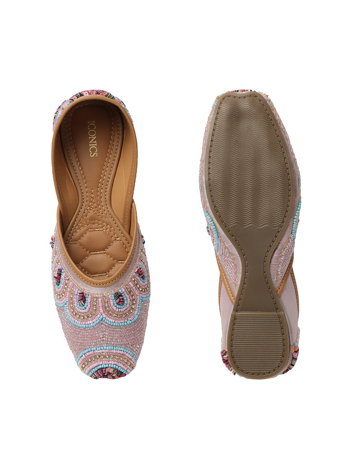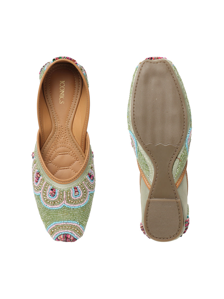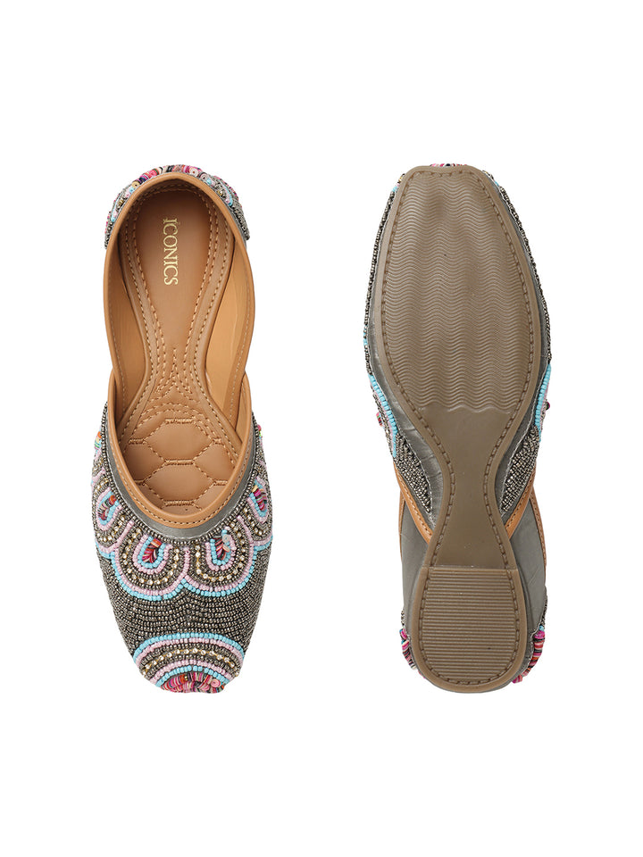 ICONICS Women's Artisan Beaded Jutti with Vibrant Scalloped Design