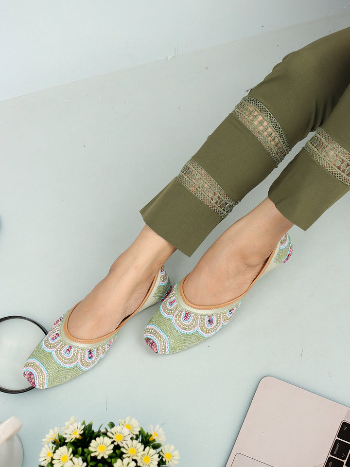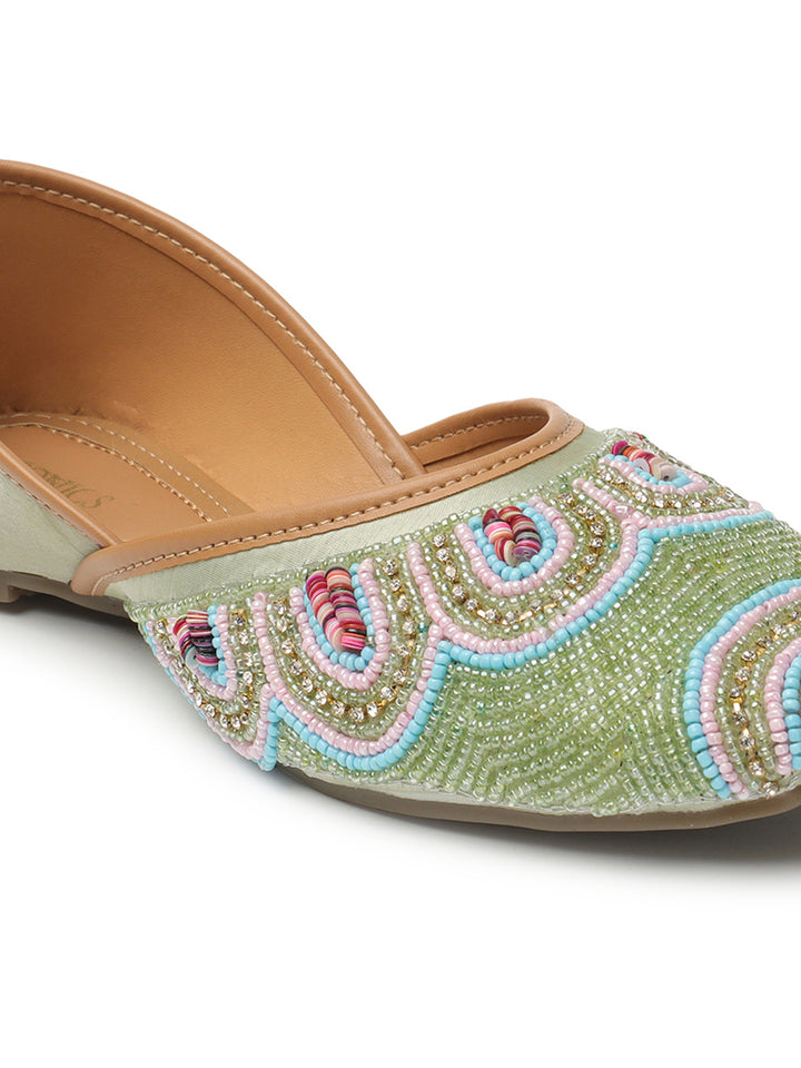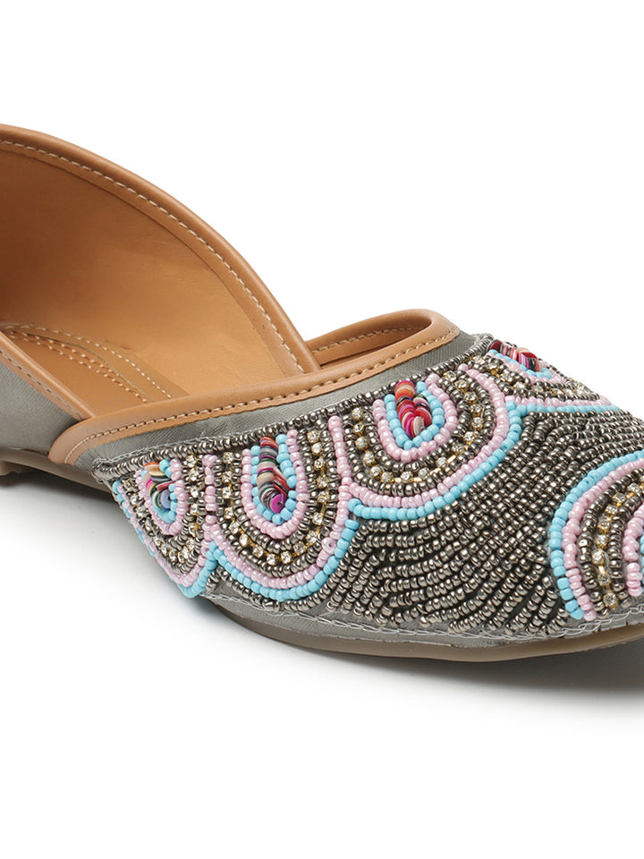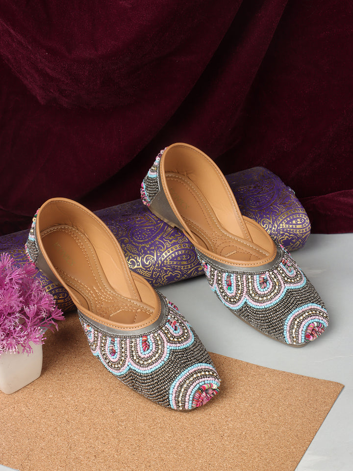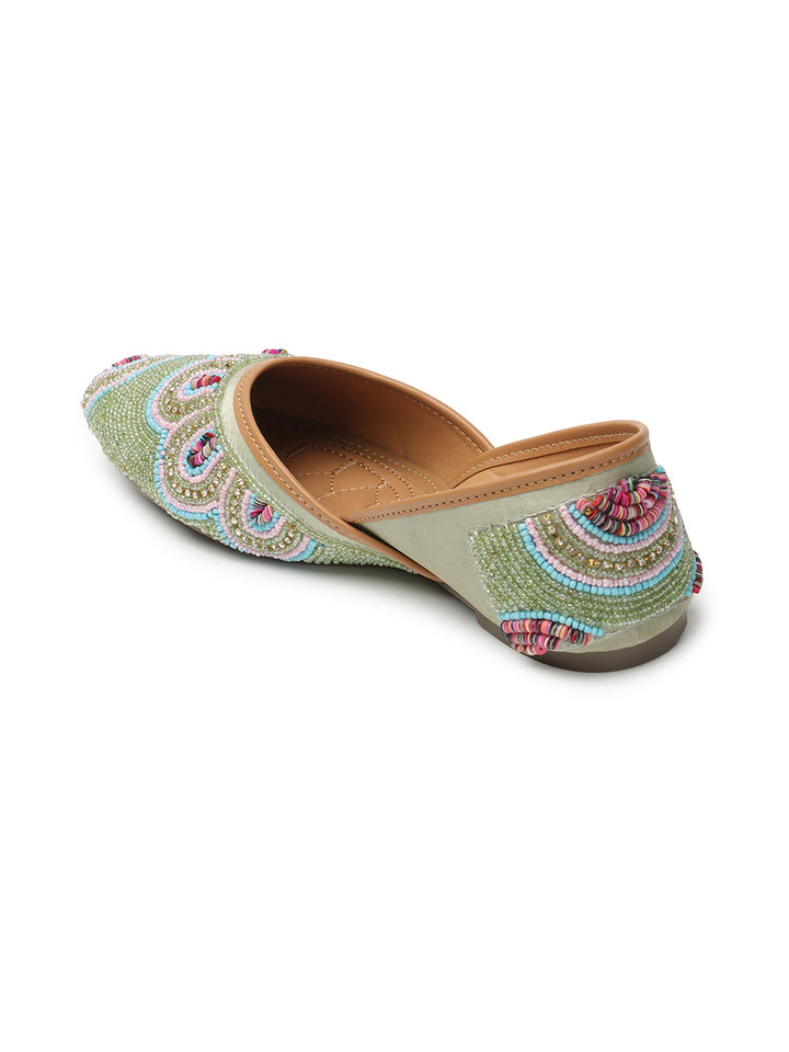ICONICS Women's Artisan Beaded Jutti with Vibrant Scalloped Design