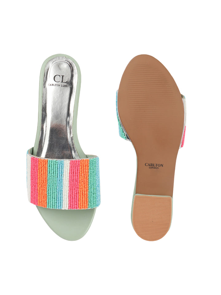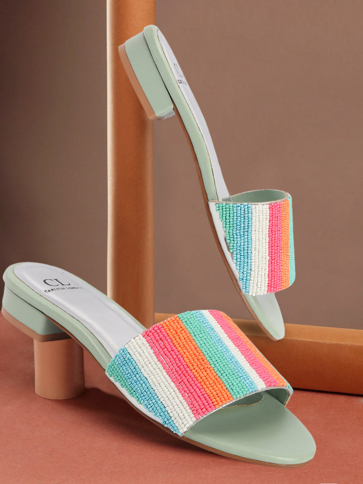 Carlton London Women's Beaded Stripe Low Block Heel Slide Sandals