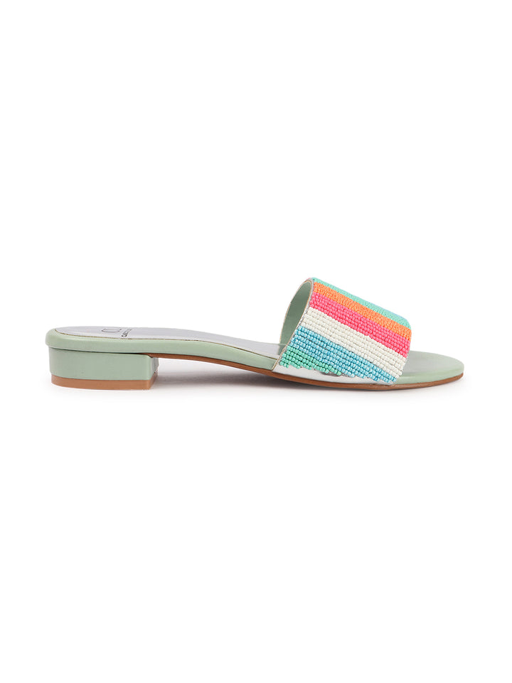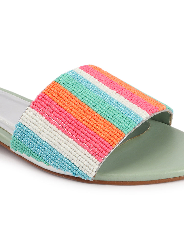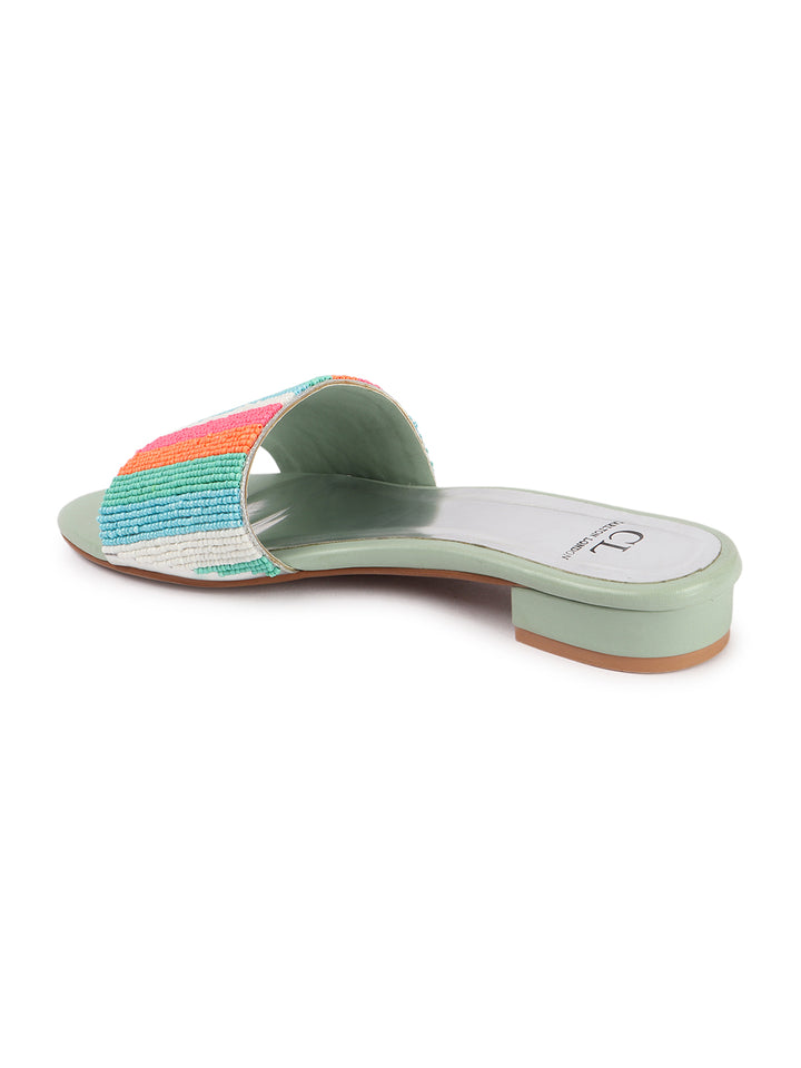 Women's Beaded Stripe Low Block Heel Slide Sandals