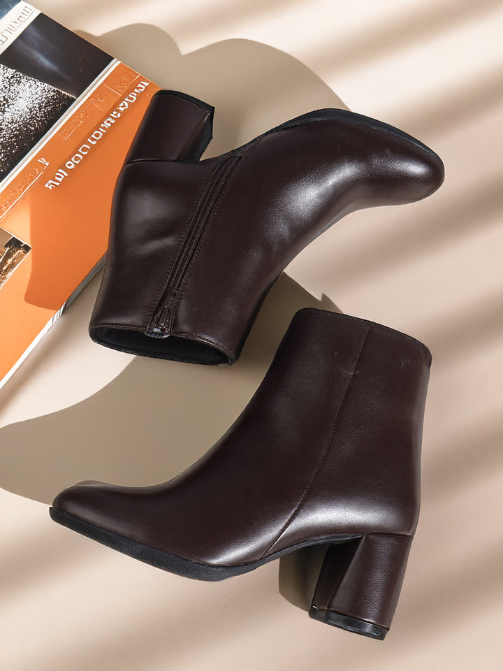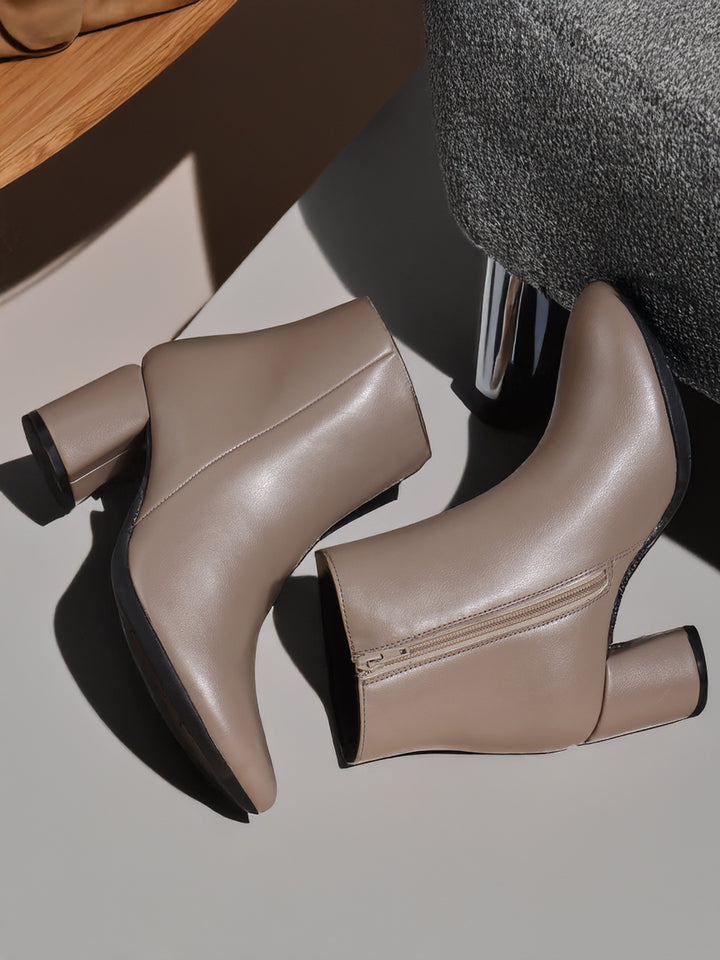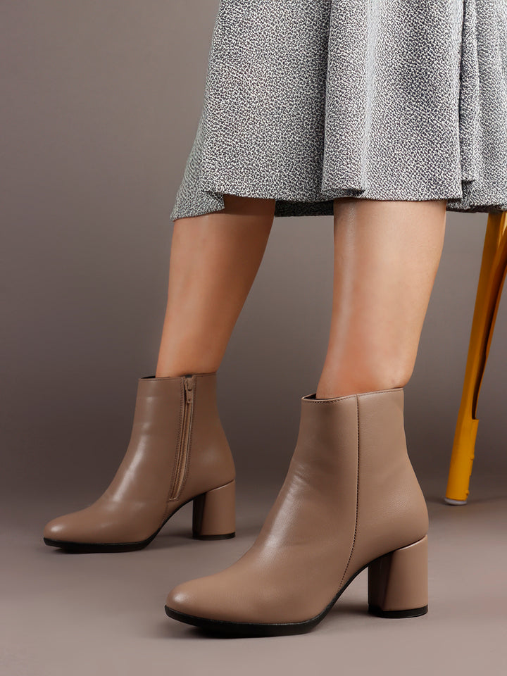 Elevate your style with these chic and versatile ankle boots, perfect for any occasion. Featuring a timeless design and a sturdy block heel, these boots offer the ideal combination of fashion and comfort. The sleek silhouette pairs effortlessly with a variety of outfits, from jeans to dresses, making them a must-have for your wardrobe. With a convenient side zipper, they are easy to slip on and off, while the cushioned insole ensures all-day comfort. These boots are designed for both style and practicality, providing a secure fit and a sophisticated look.
