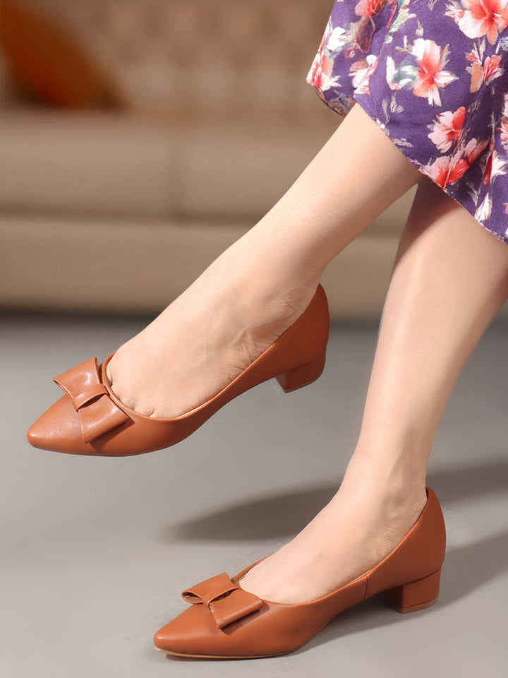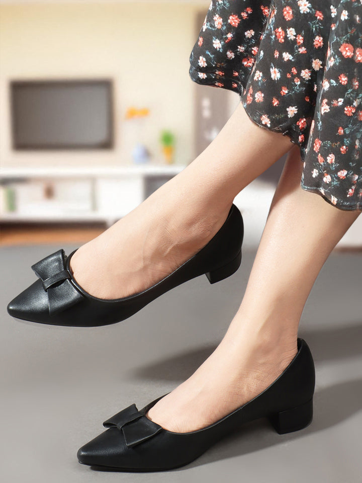 Carlton London Women's Block Heel Solid Pumps with Bows