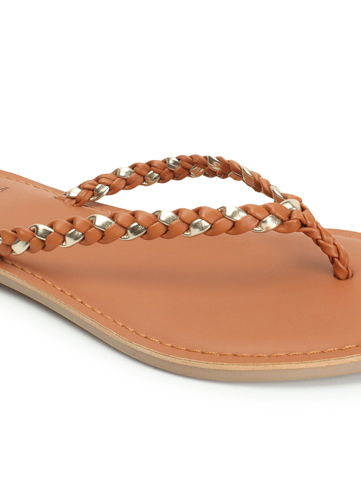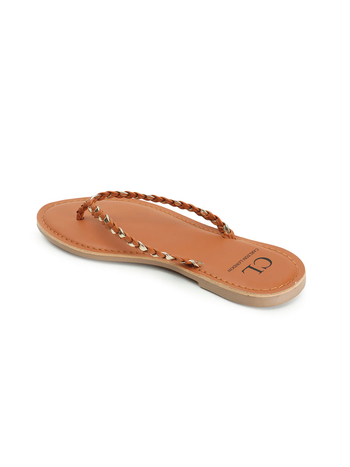 Women's Braided Detail Open Toe Flats