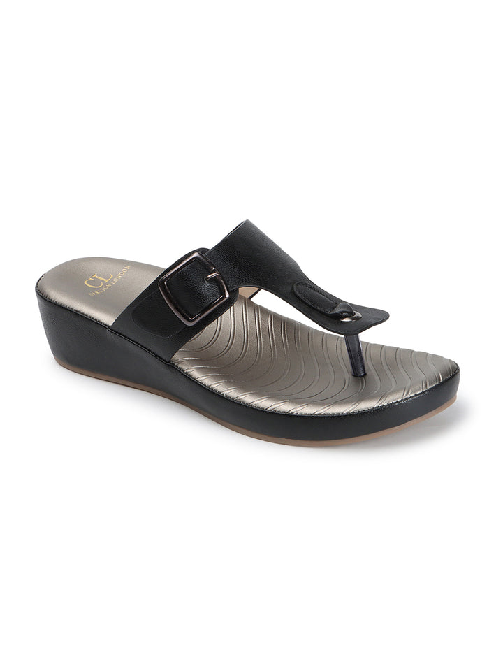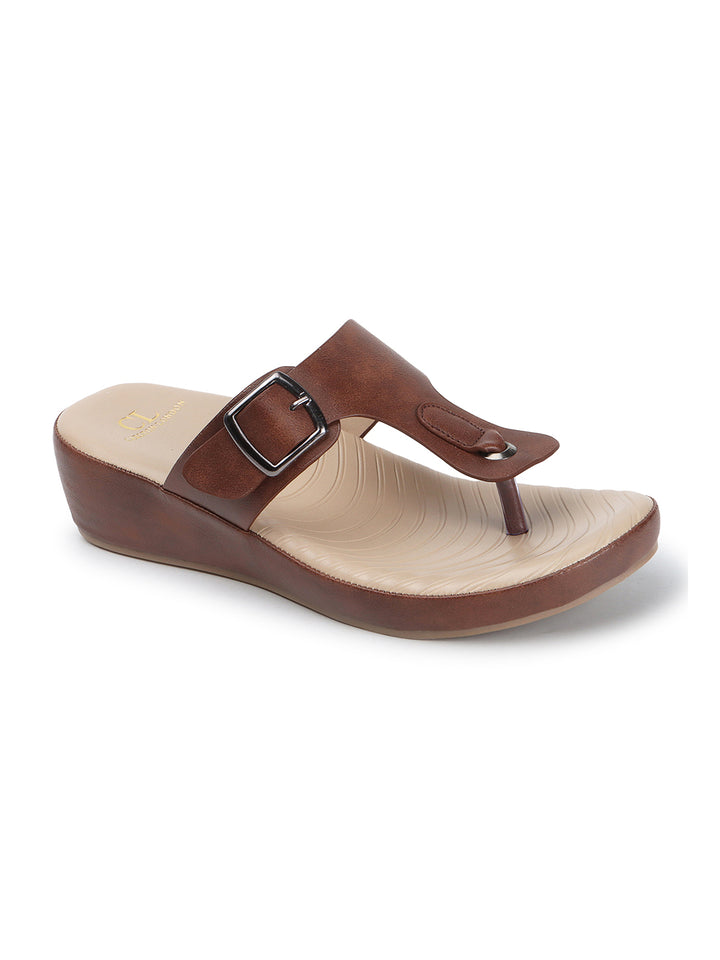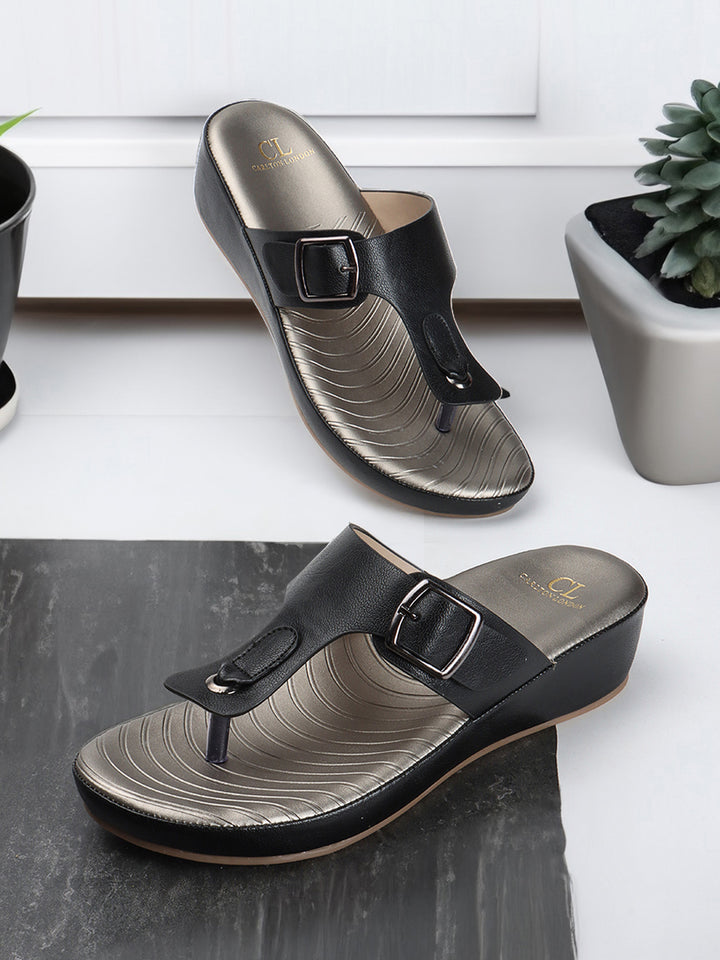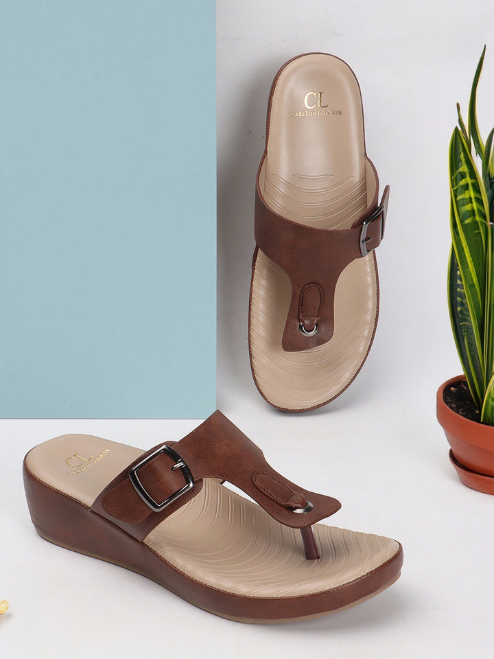Carlton London Women's Buckle Detail Thong Wedge Sandals