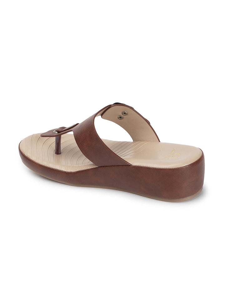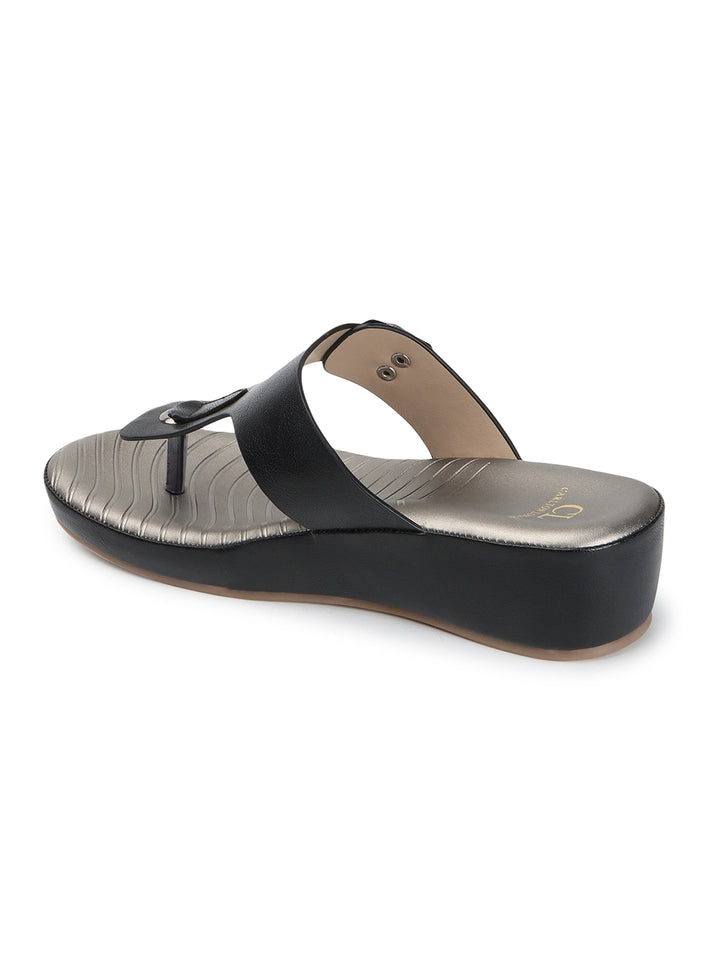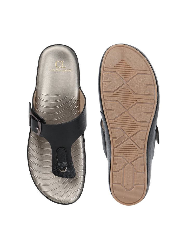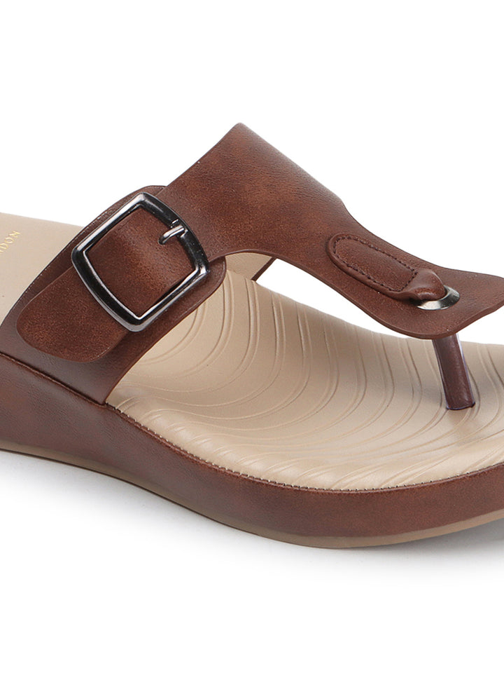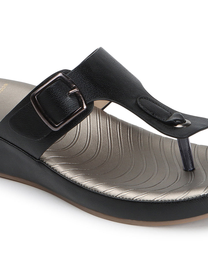 Carlton London Women's Buckle Detail Thong Wedge Sandals