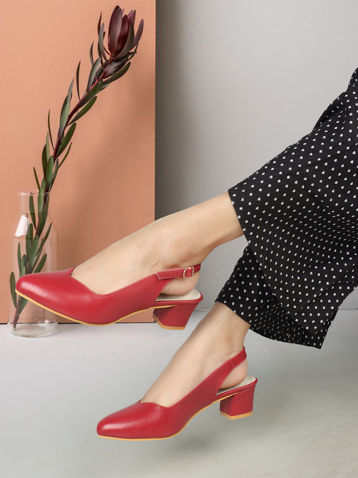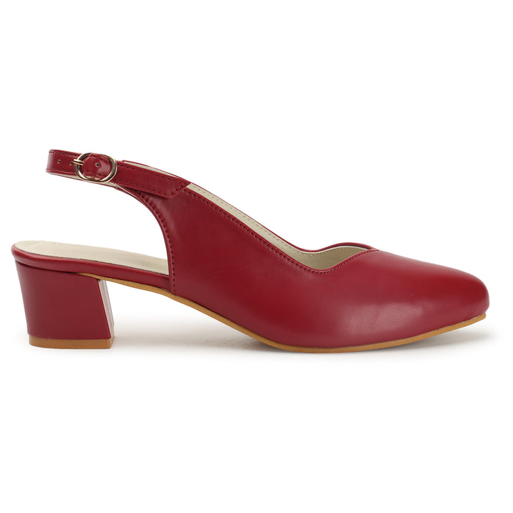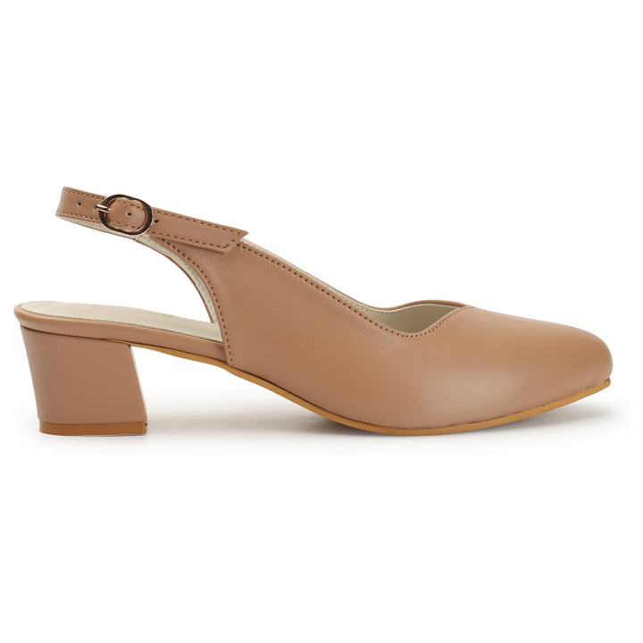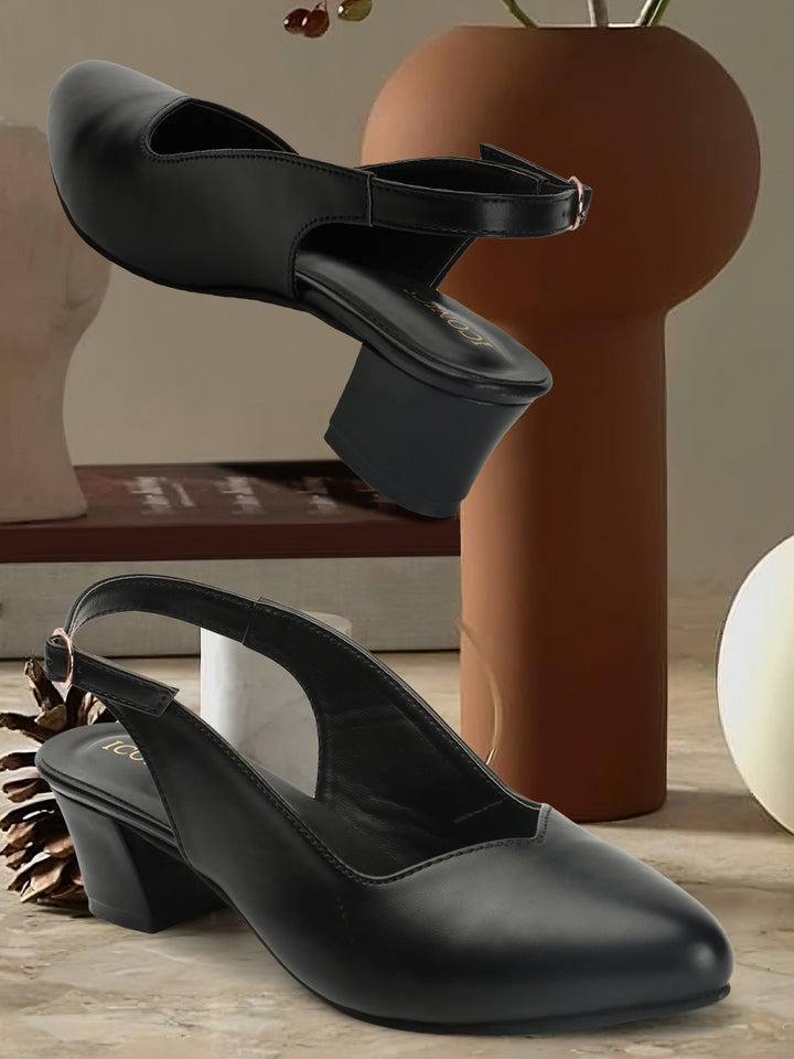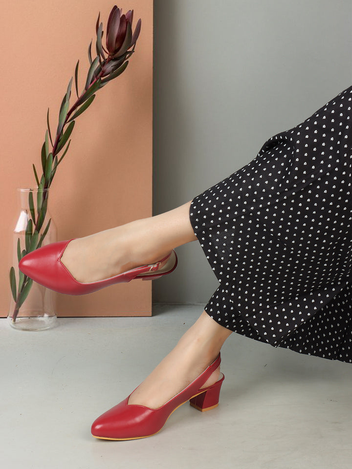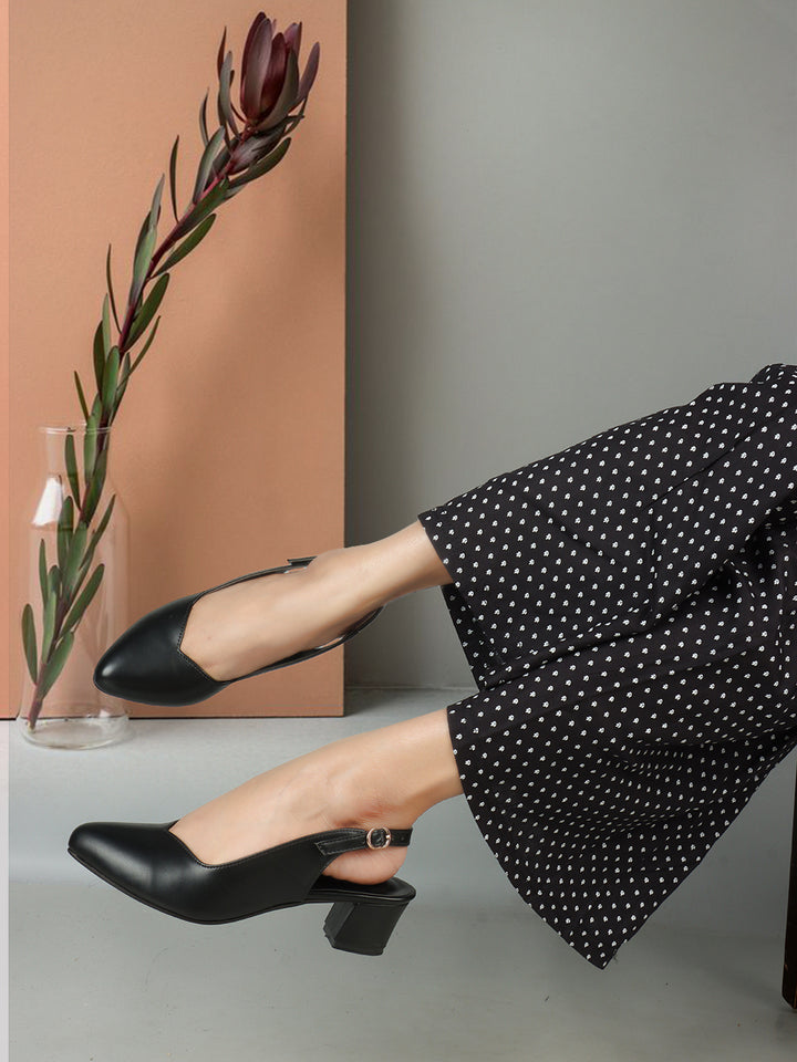 The shoe is secured by an adjustable slingback strap with a small buckle closure, ensuring a comfortable and secure fit. The modest yet stable mid-height block heel provides excellent stability and all-day comfort, making them an ideal choice for long meetings or busy days. Pair them with tailored trousers, pencil skirts, or a sophisticated dress for a sharp, polished look.