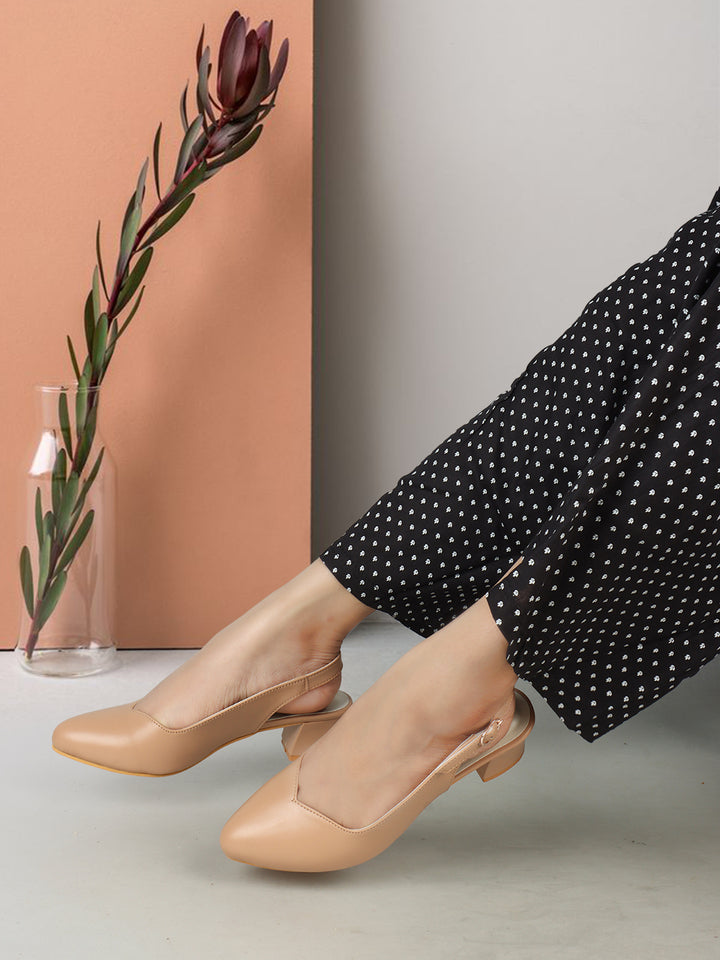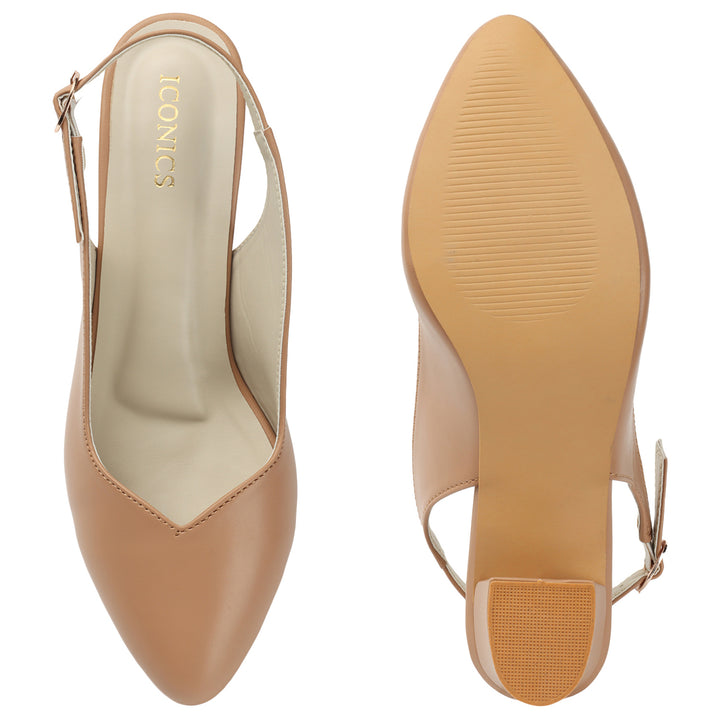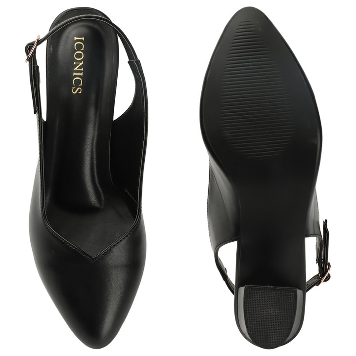 Step into sophistication with these timeless Slingback Heels, the perfect blend of professional polish and comfortable support. Designed for the modern workplace and elegant events, these heels feature a sharp pointed toe and a flattering V-cut vamp, offering a clean and refined silhouette.