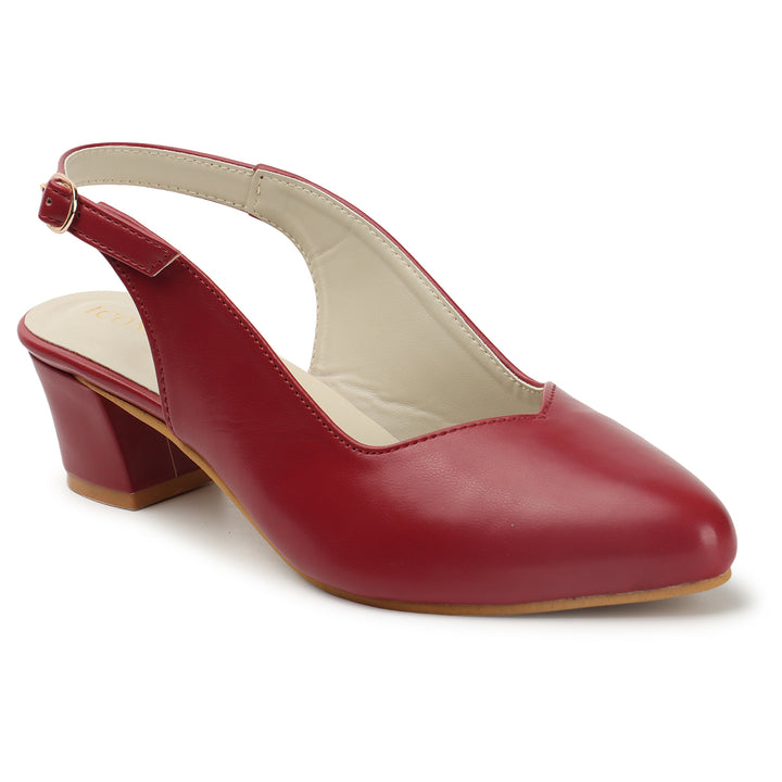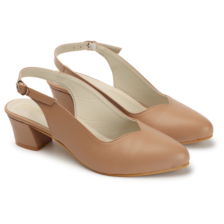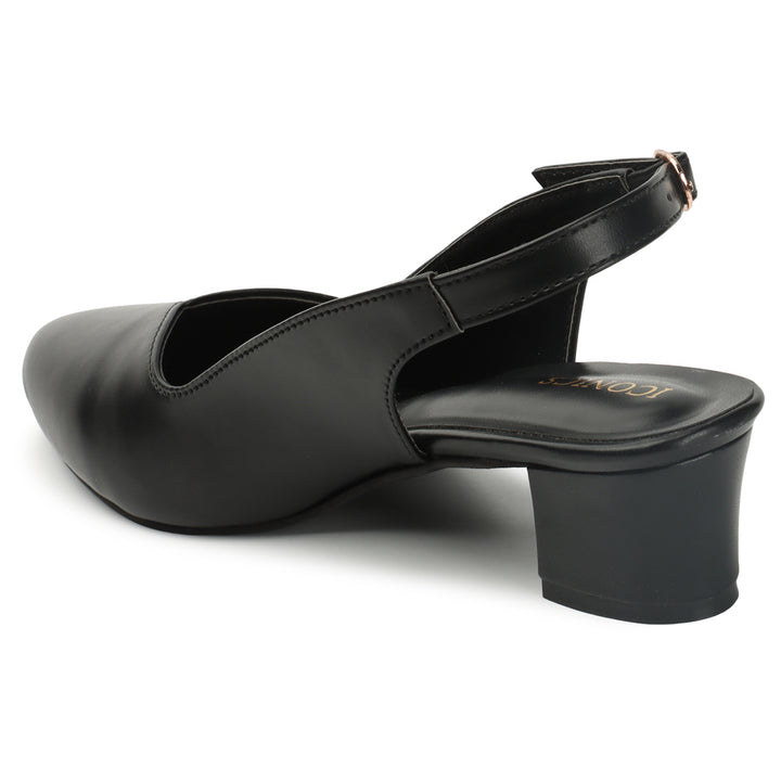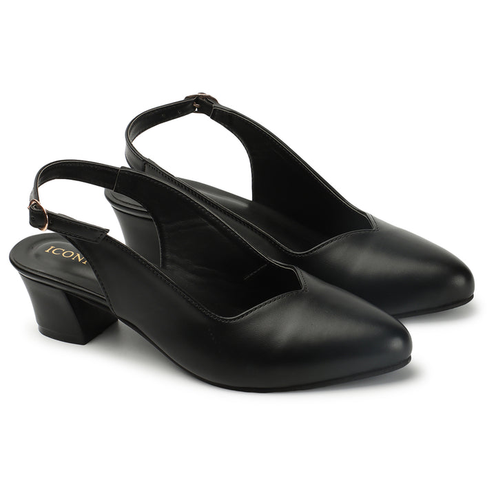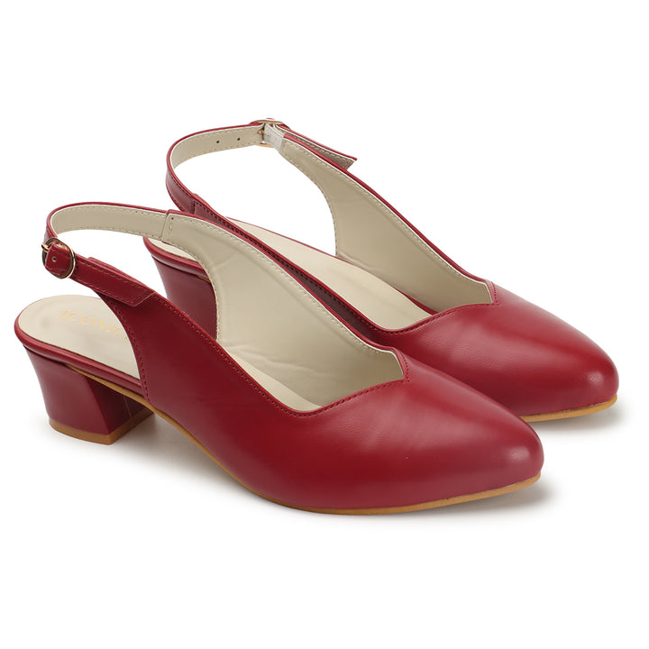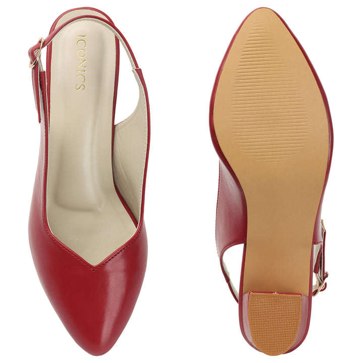 ICONICS Women's Classic Pointed-Toe Slingback Heels with Block Heel