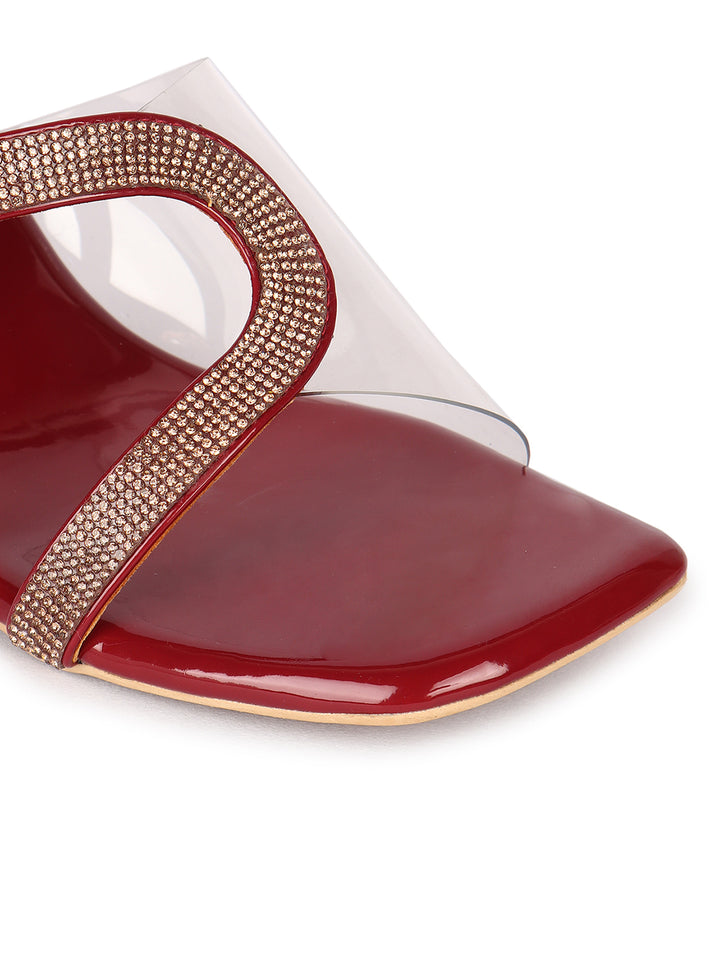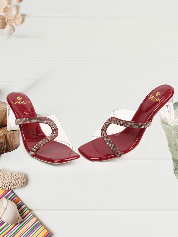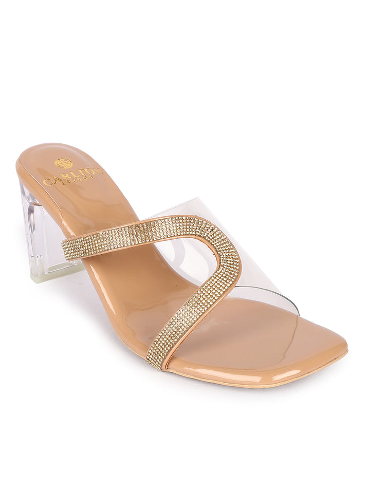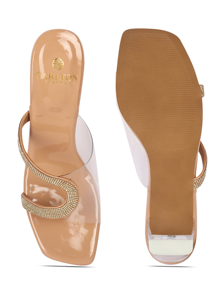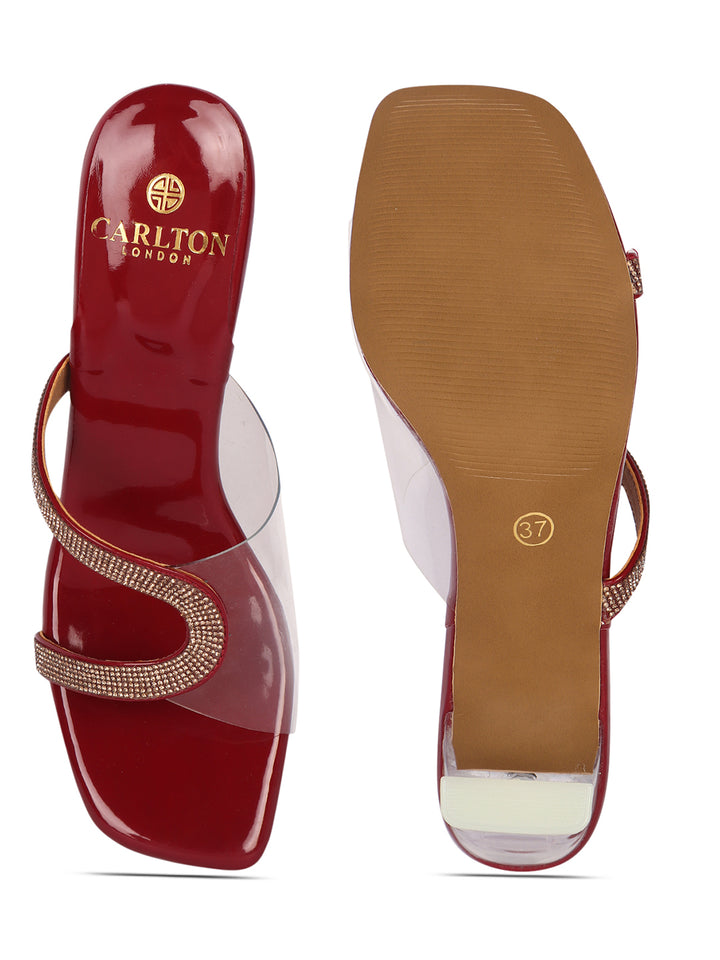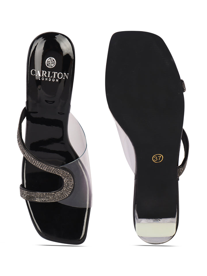 Carlton London Women's Clear Strap Heeled Mules with Glitter Detail