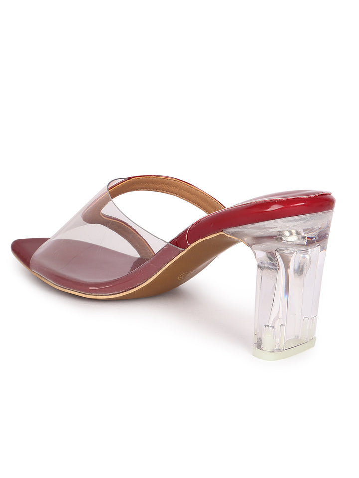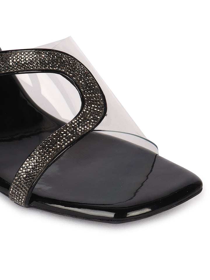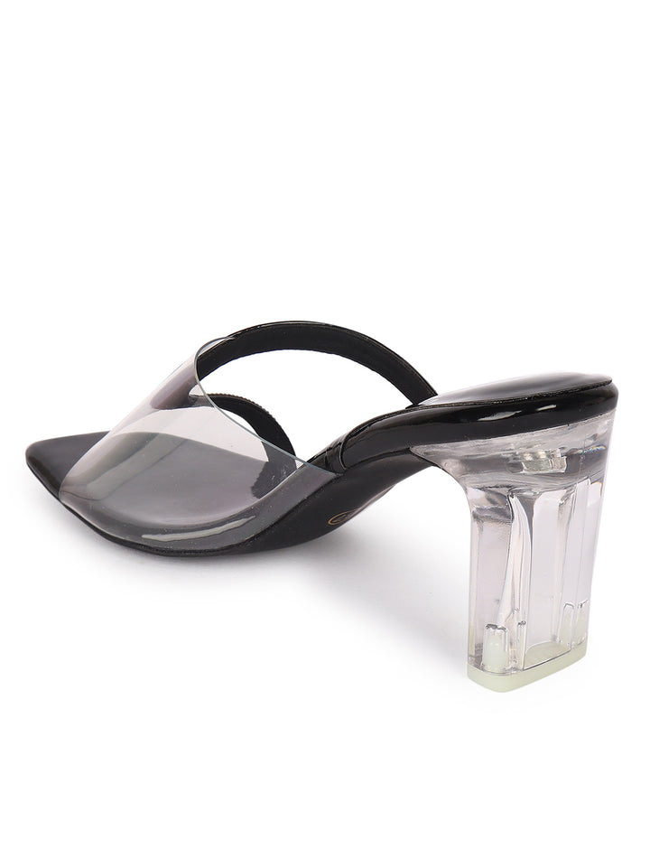 Women's Clear Strap Heeled Mules with Glitter Detail