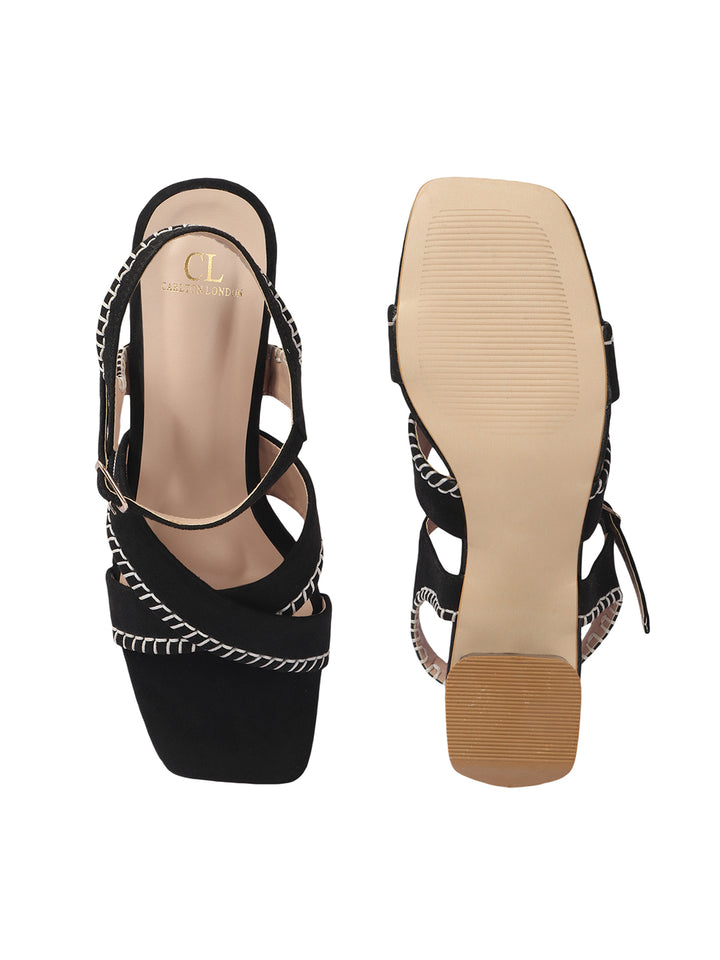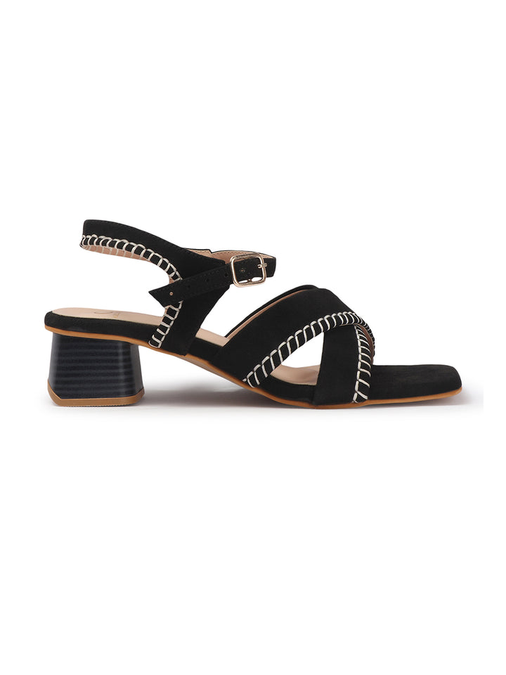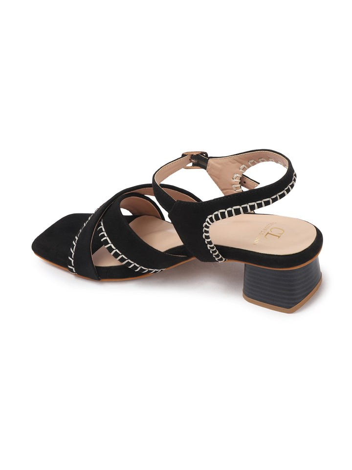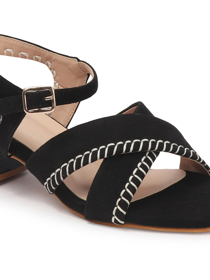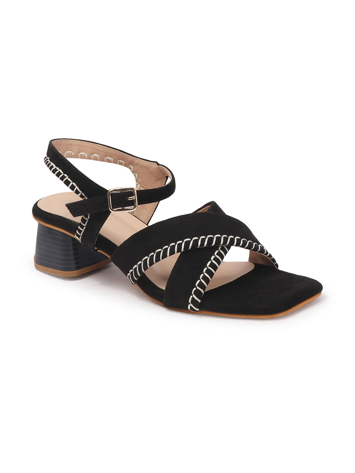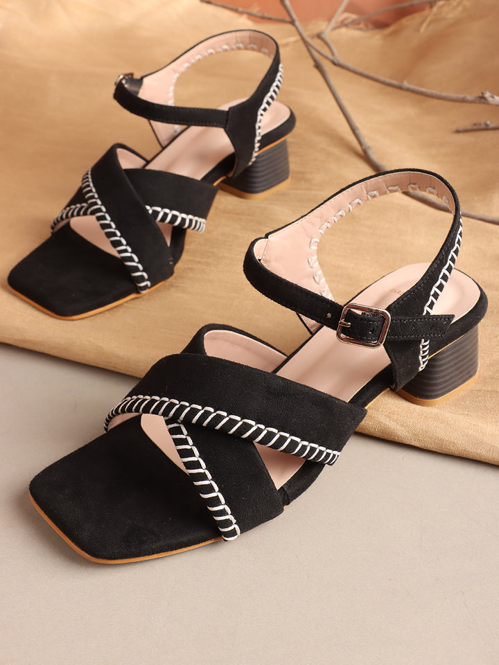 Women's Criss-Cross Stitch Detail Ankle Strap Block Heel Sandals