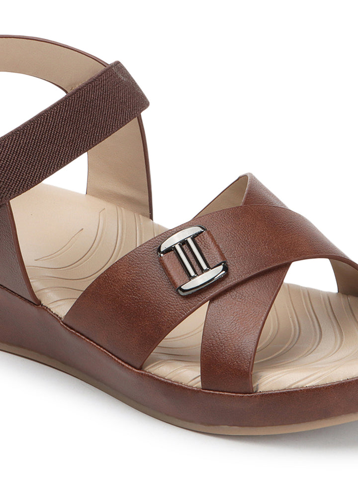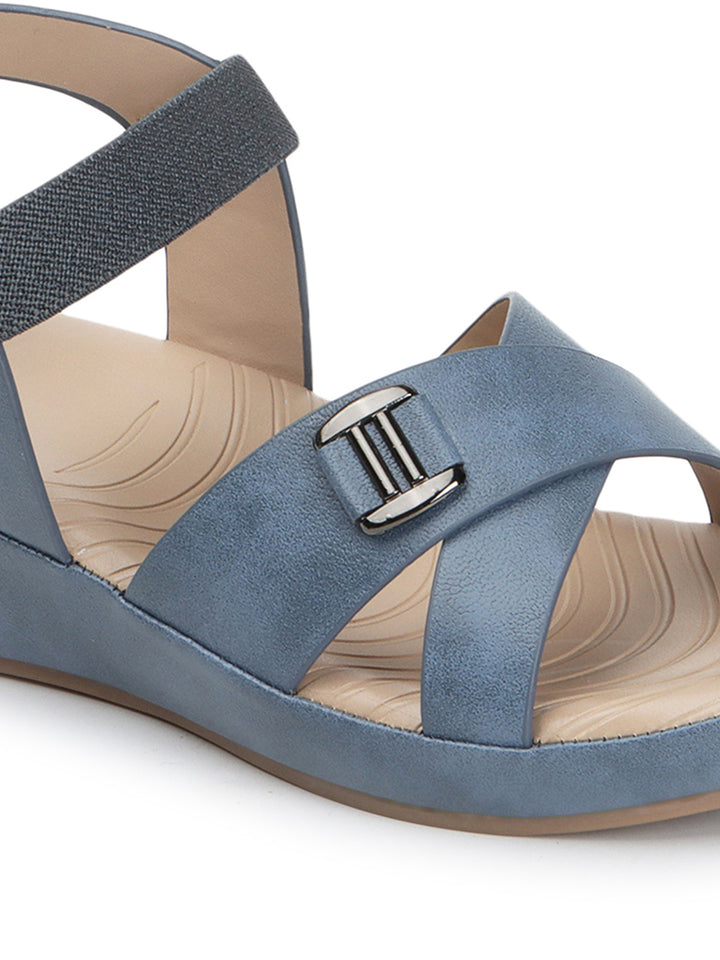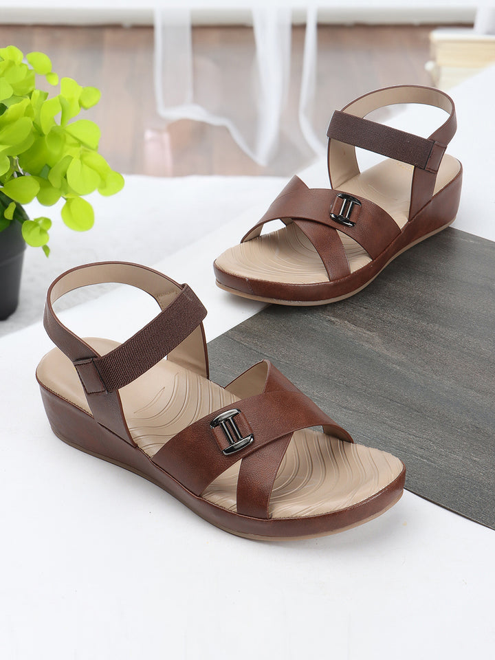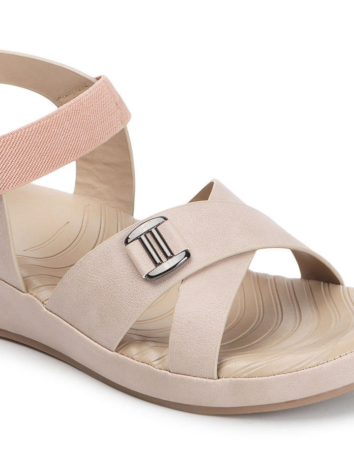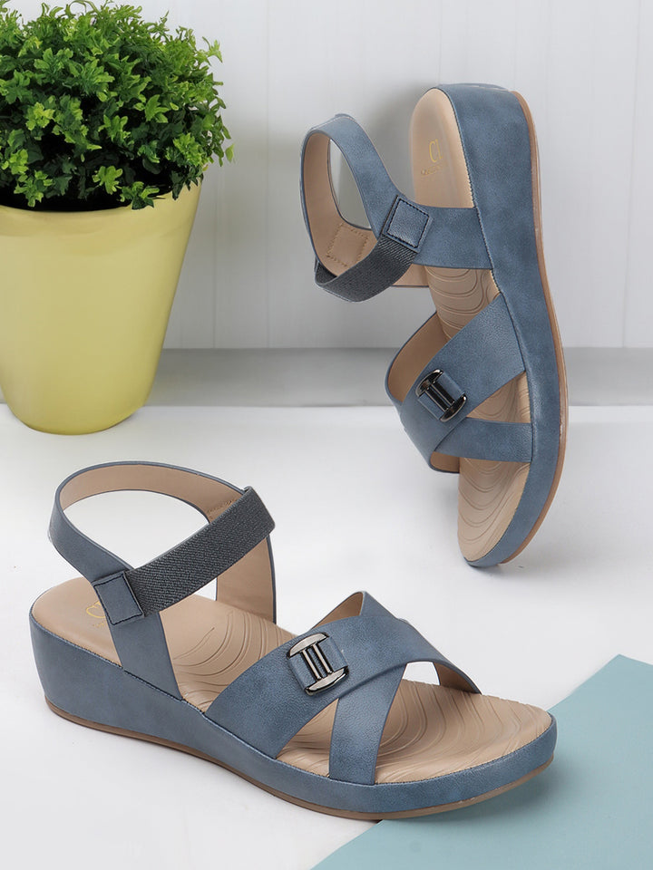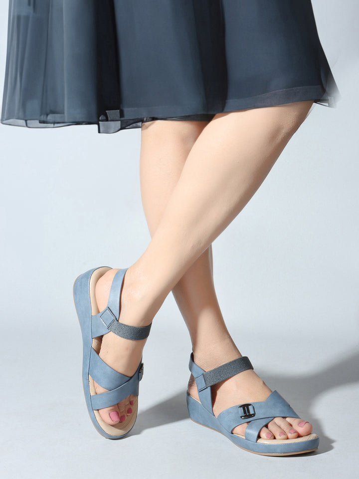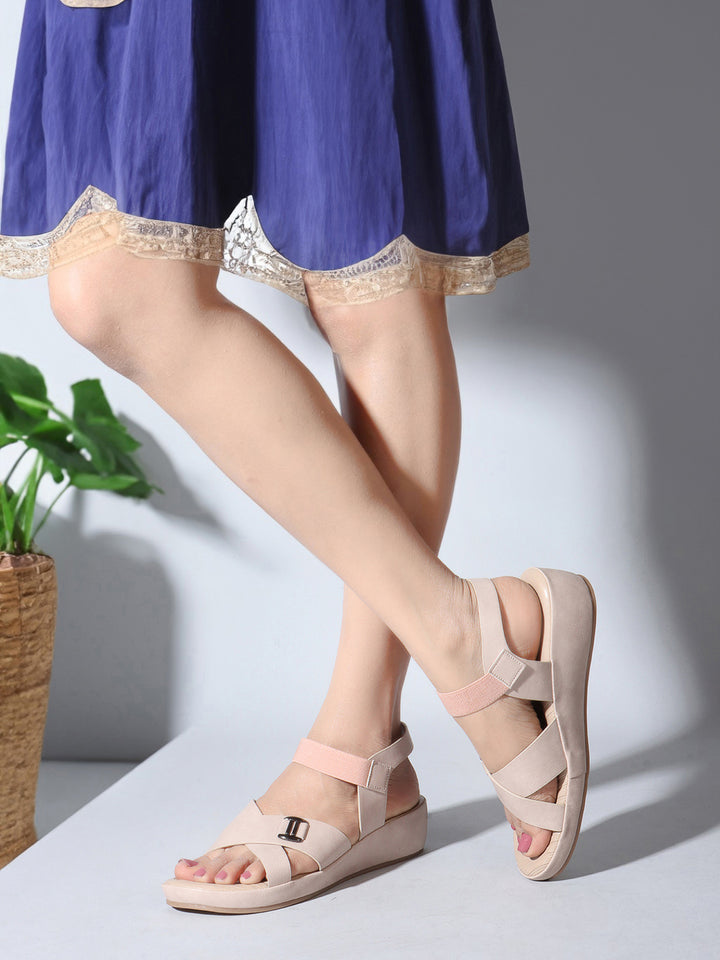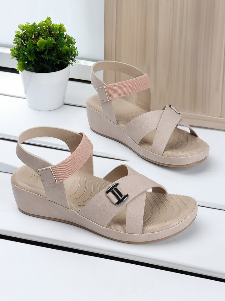 Women's Criss-Cross Strap Elastic Ankle Wedge Sandals