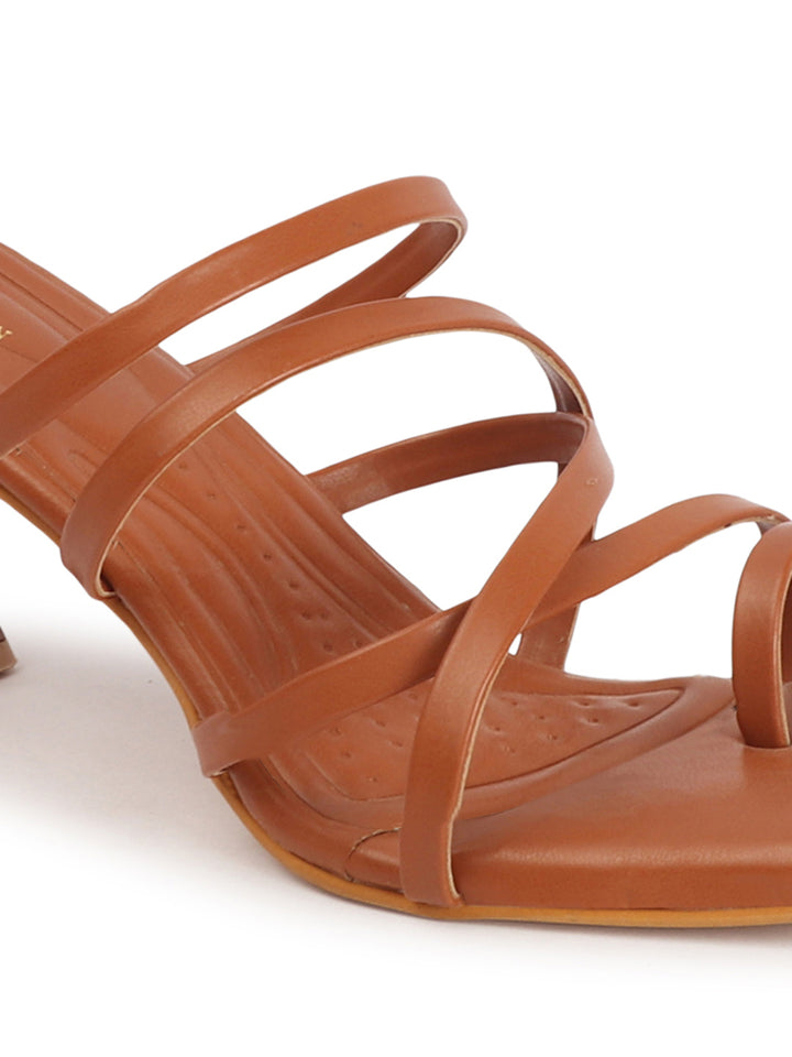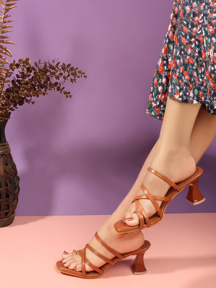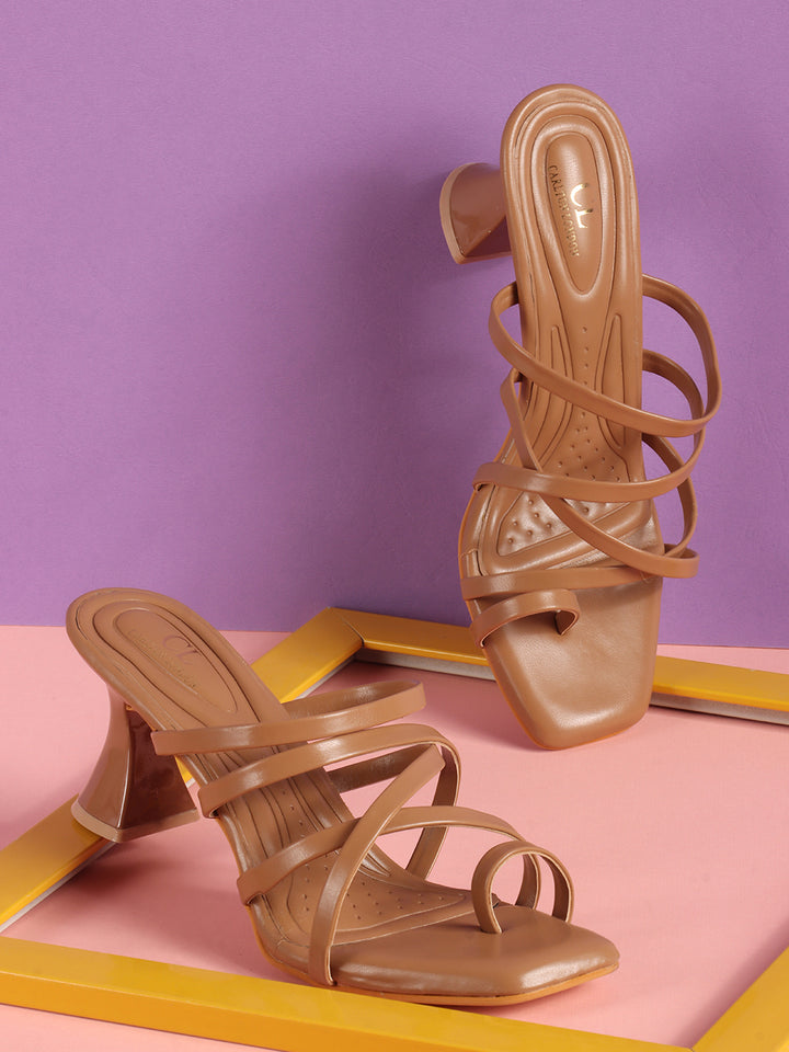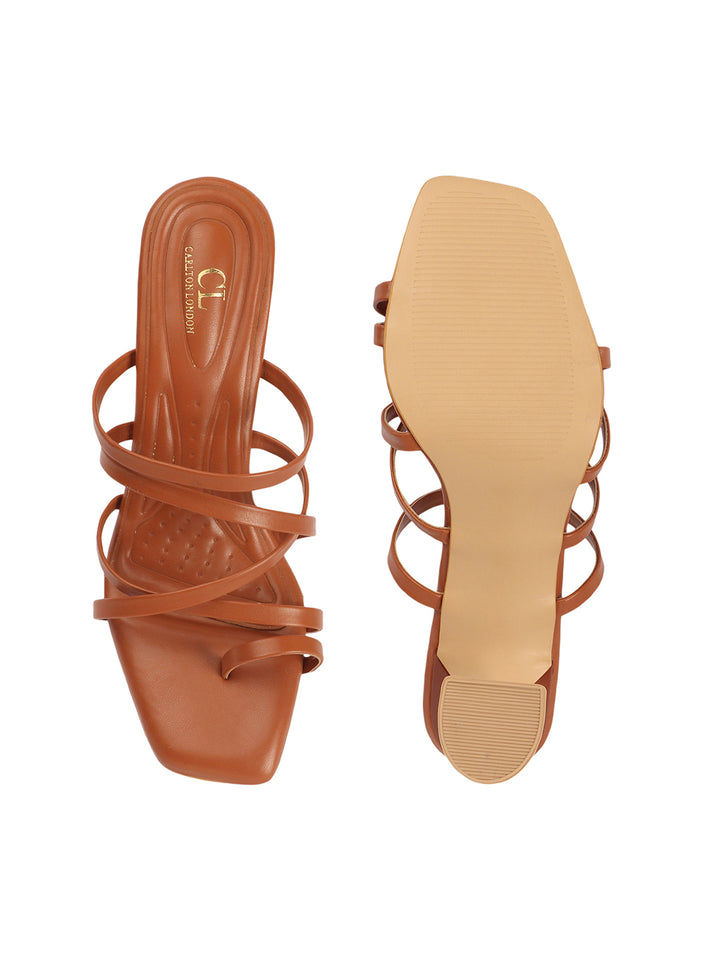 Carlton London Women's Criss-Cross Strap Square Toe Sculpted Heel Sandals