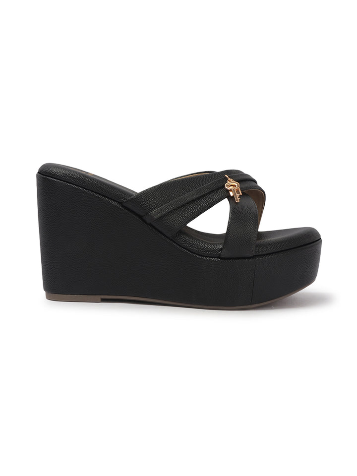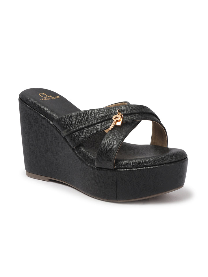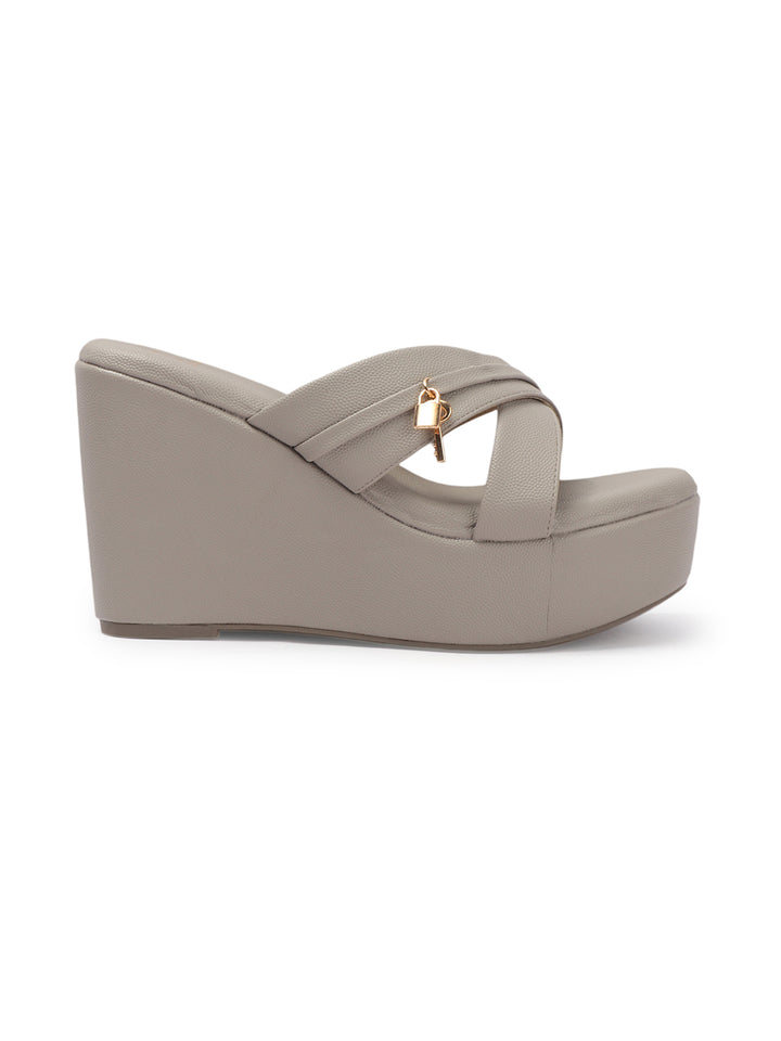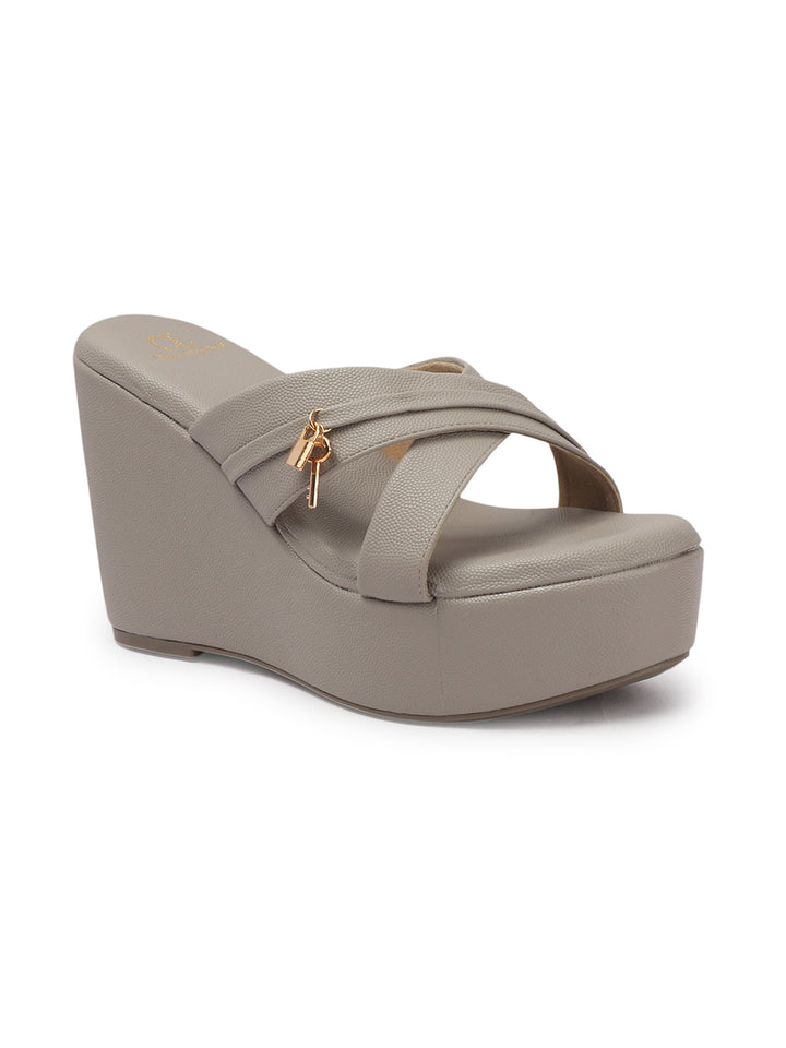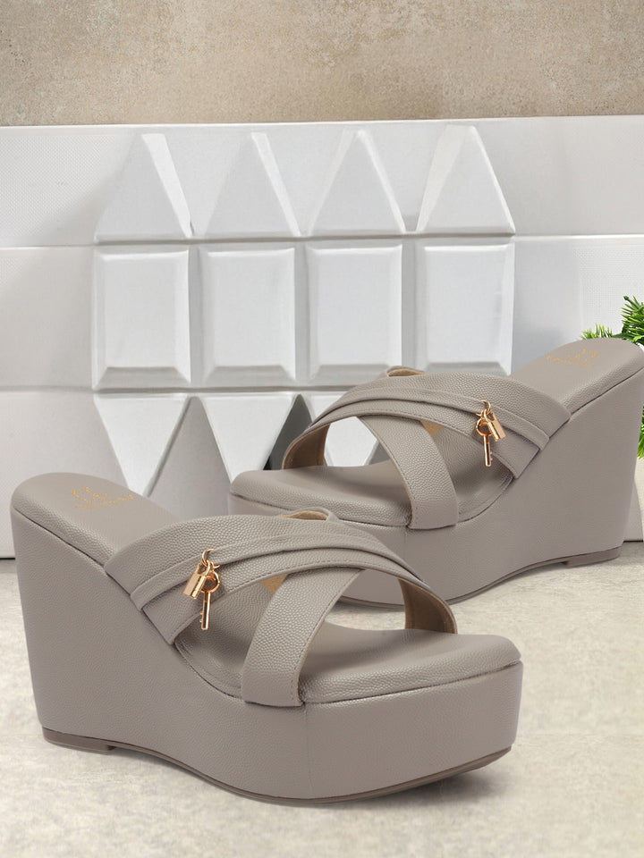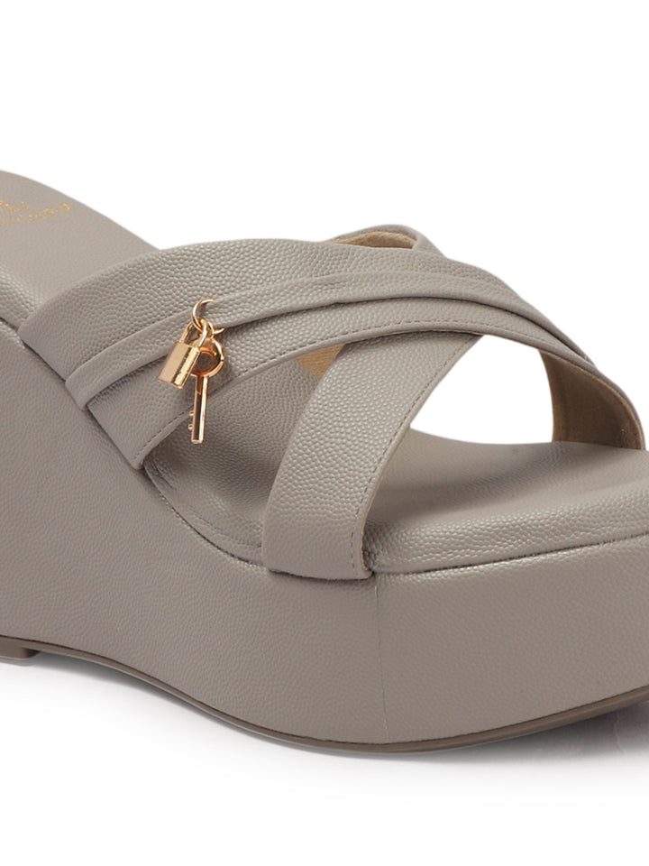 Women's Criss-Cross Strap Wedge Sandal with Charm Detail
