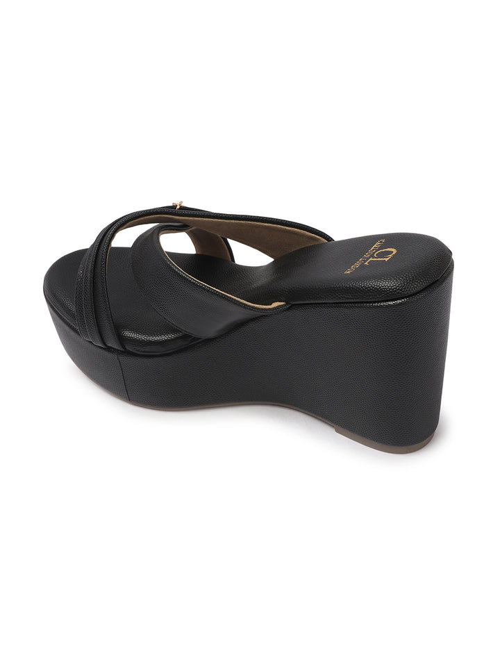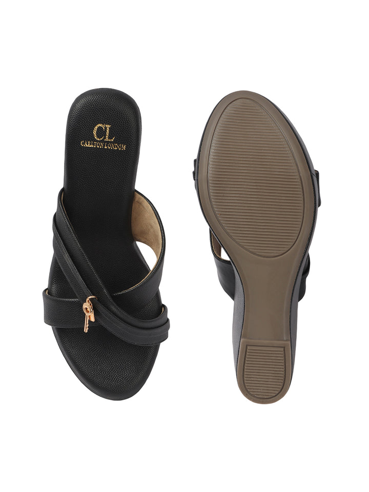 Carlton London Women's Criss-Cross Strap Wedge Sandal with Charm Detail