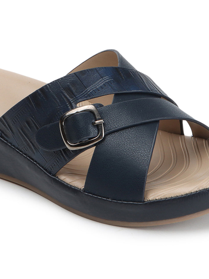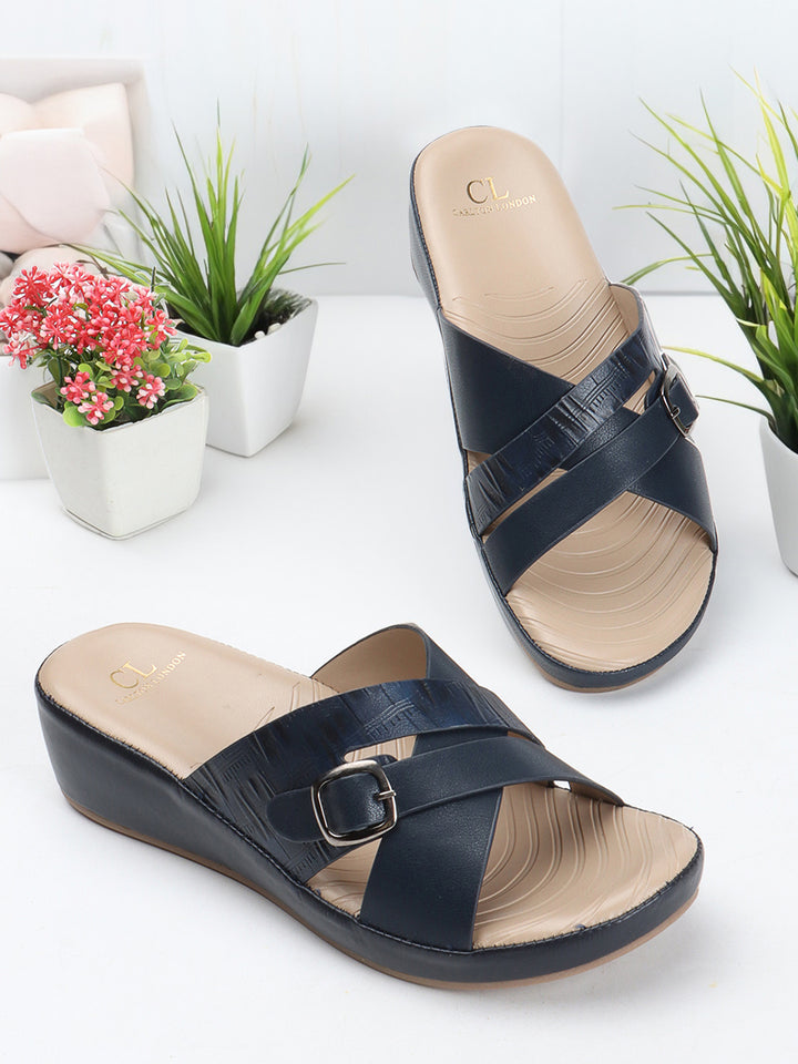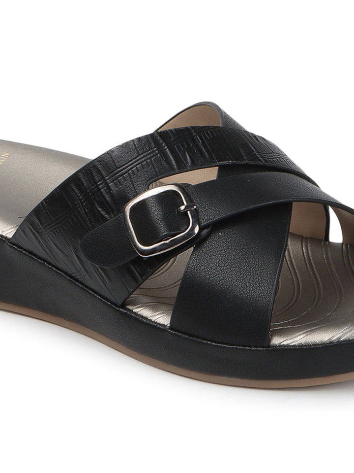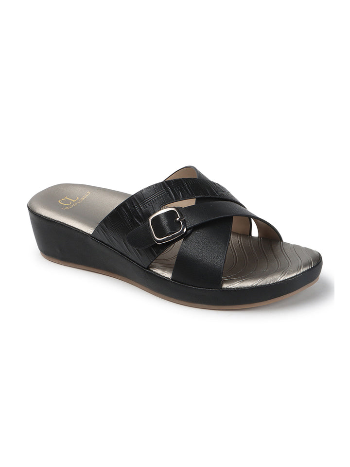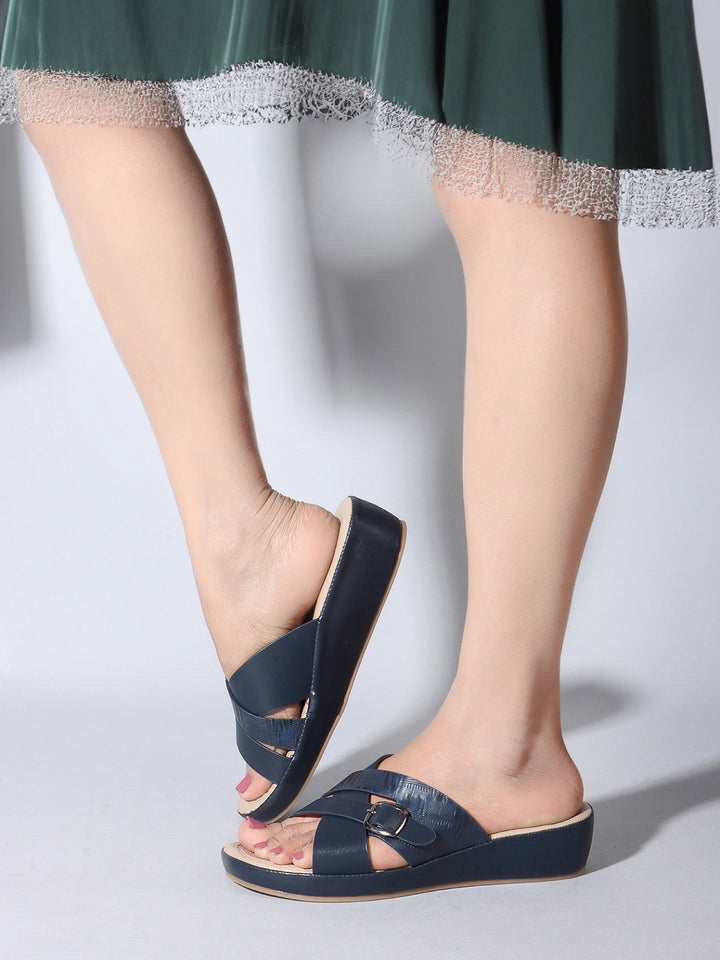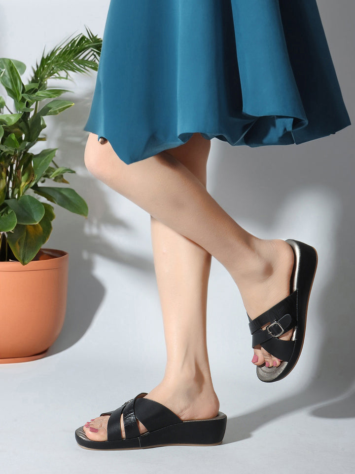 Women's Criss-Cross Strap Wedge Sandals with Buckle