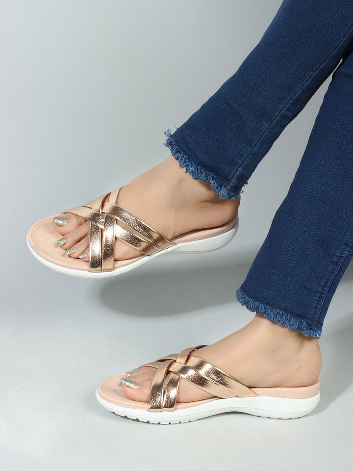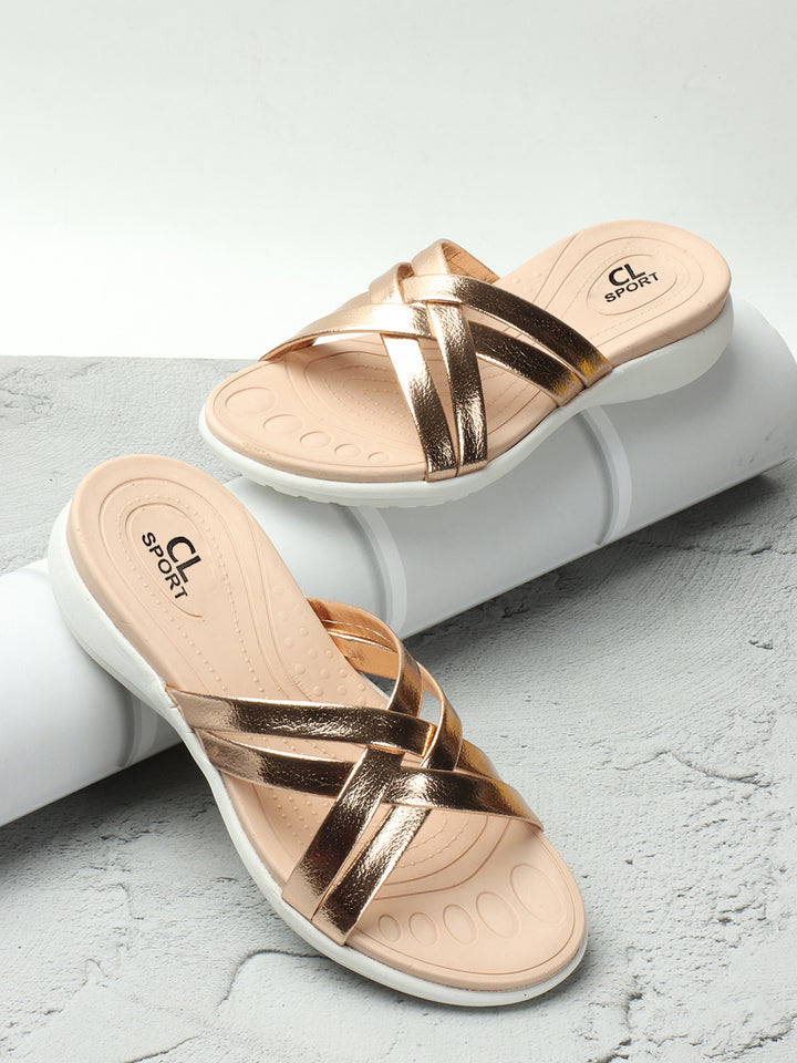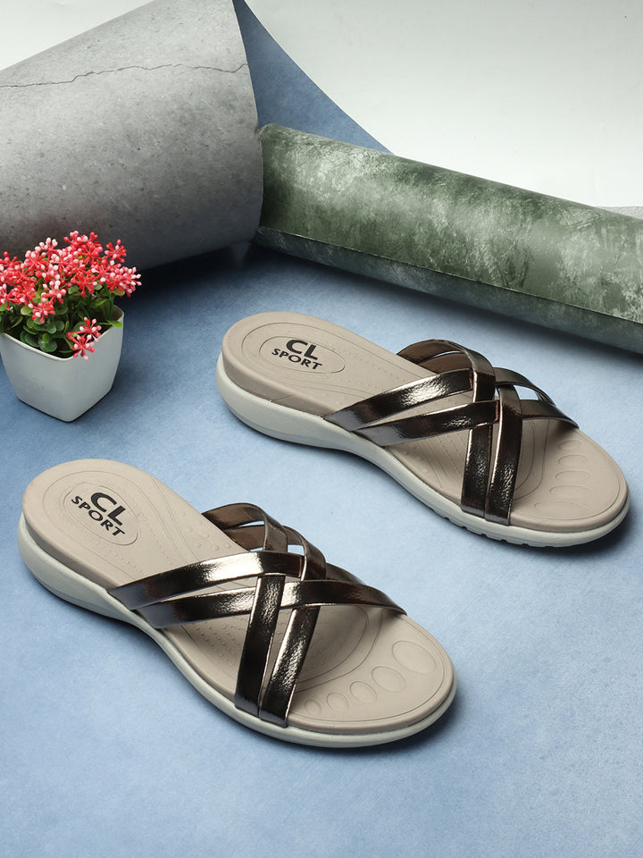 Carlton London Women's Crisscross Strap Comfort Slide Sandals