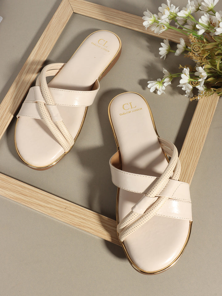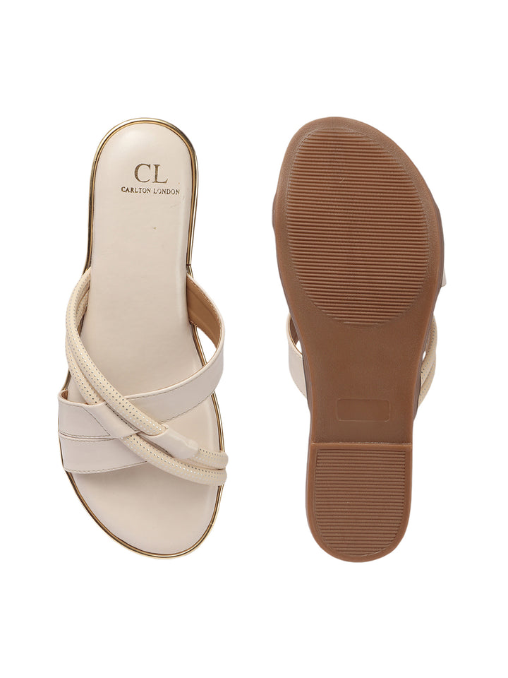 Carlton London Women's Crisscross Strap Flat Slide Sandals