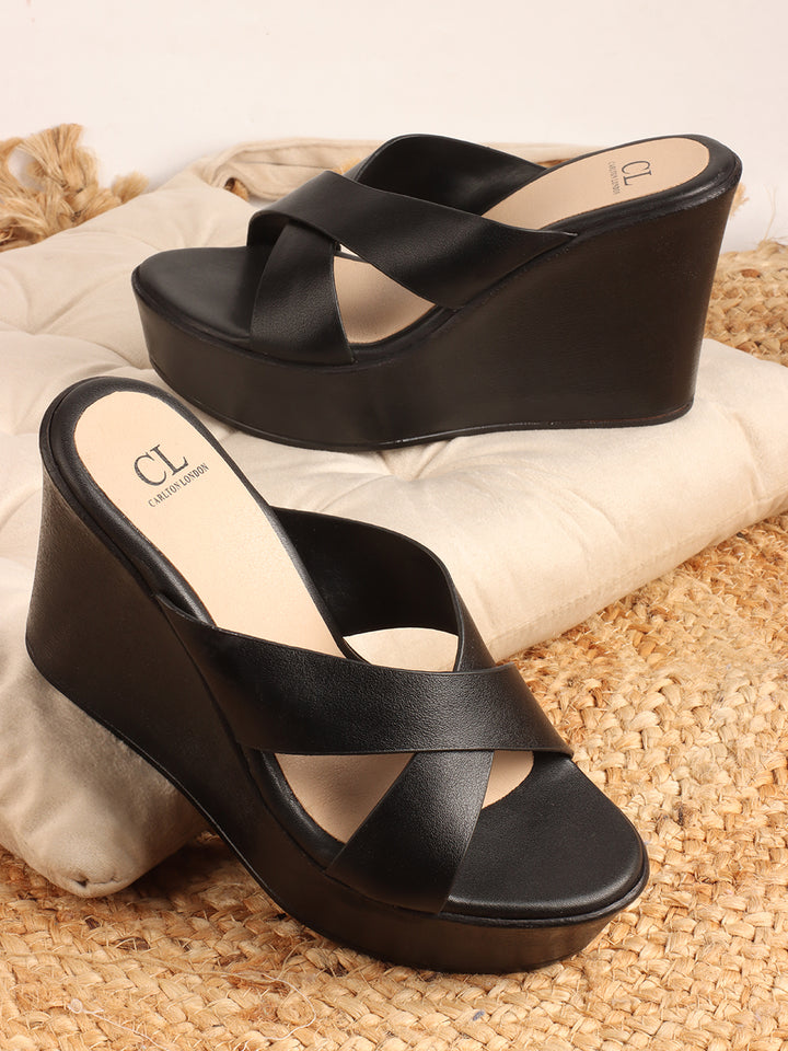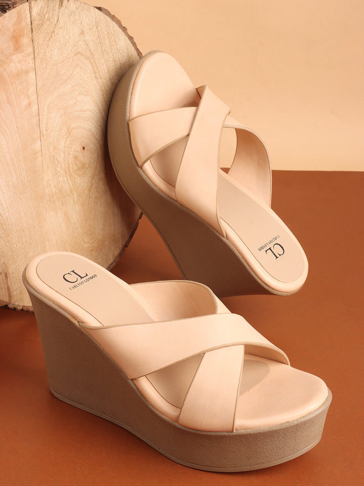 Carlton London Women's Crisscross Strap Wedge Sandals