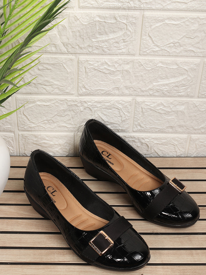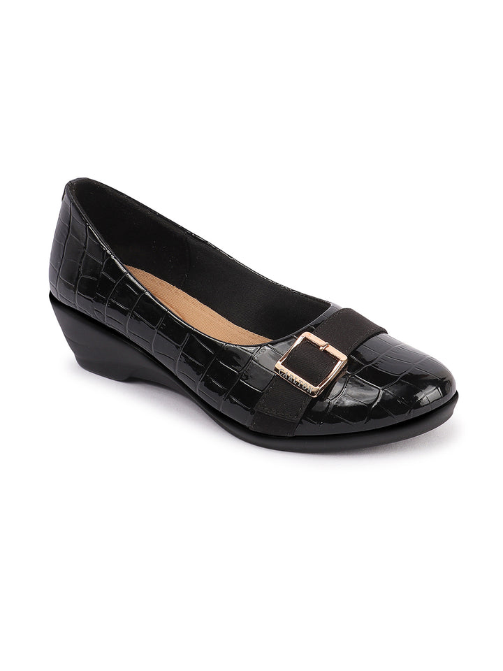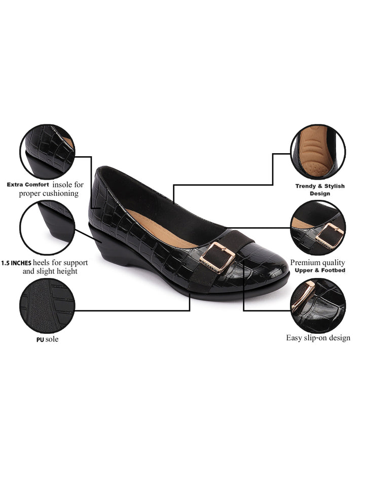 Step into sparkling style and comfort with these Women's Croc-Embossed Buckle Detail Wedge Pumps Women's Designed for a fashionable yet relaxed look, these footwear The comfortable Perfect for warm weather, these versatile are ideal for casual outings, special events, or simply adding a touch to your everyday look.