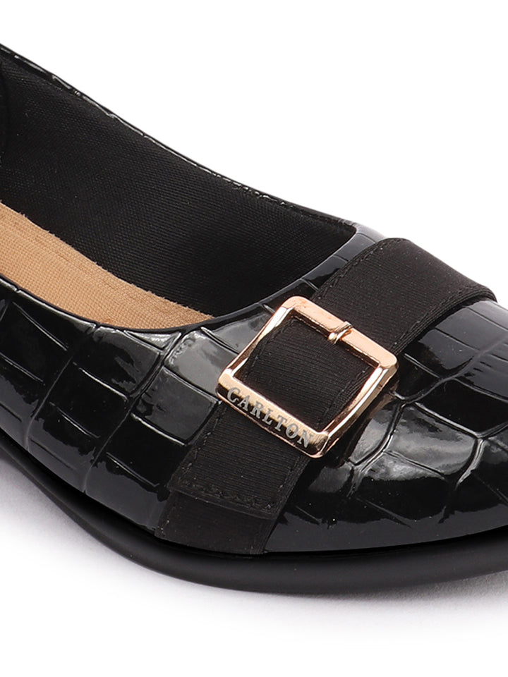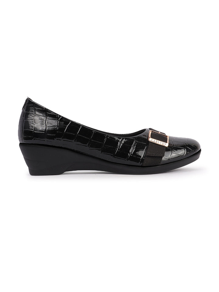 Carlton London Women's Croc-Embossed Buckle Detail Wedge Pumps