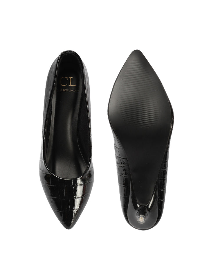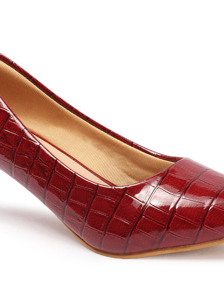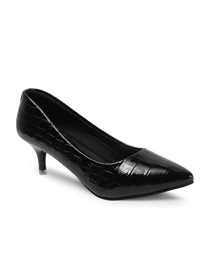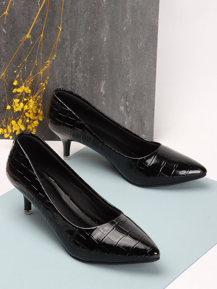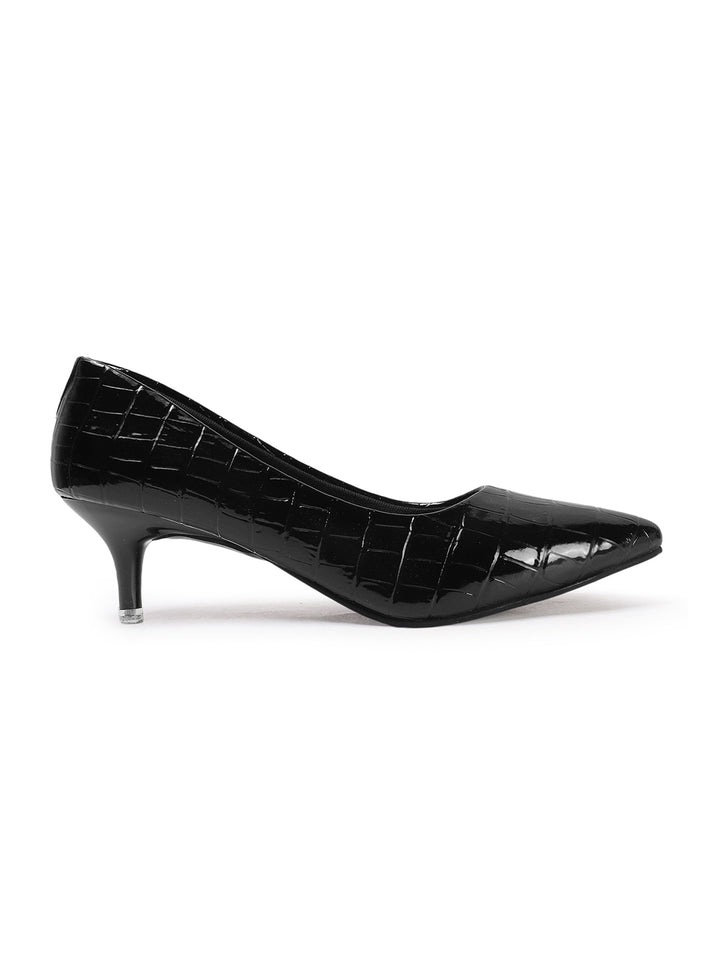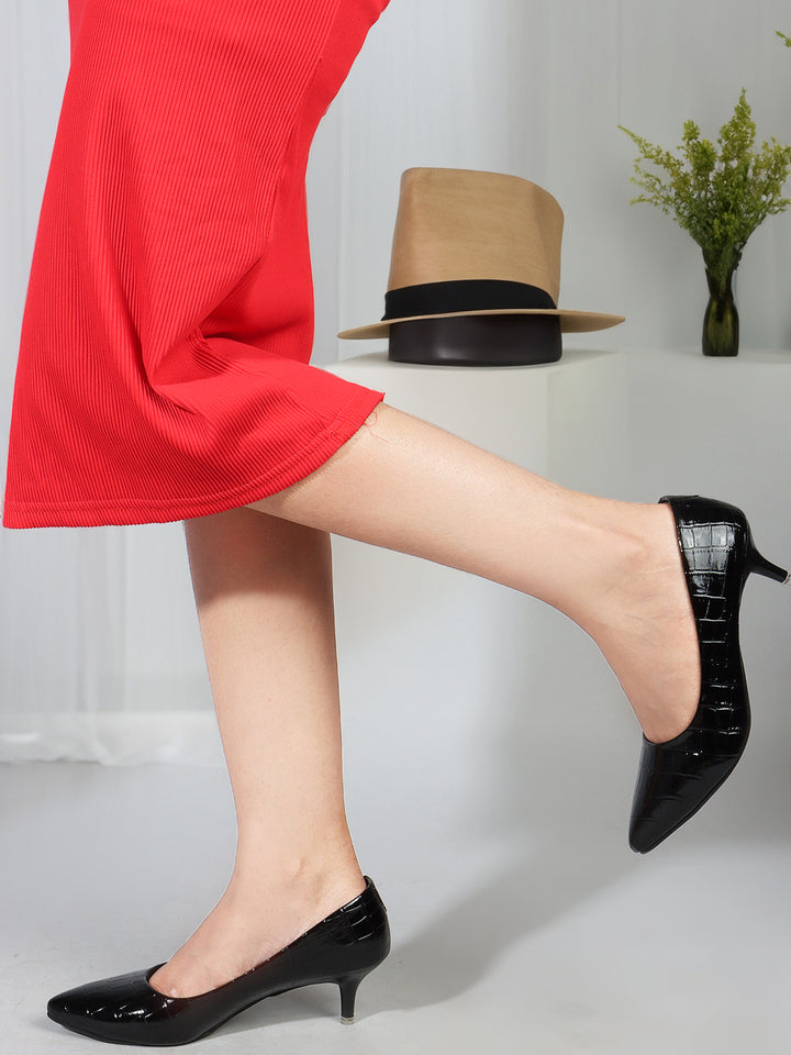 Women's Croc-Embossed Pointed Toe Kitten Heel Pumps