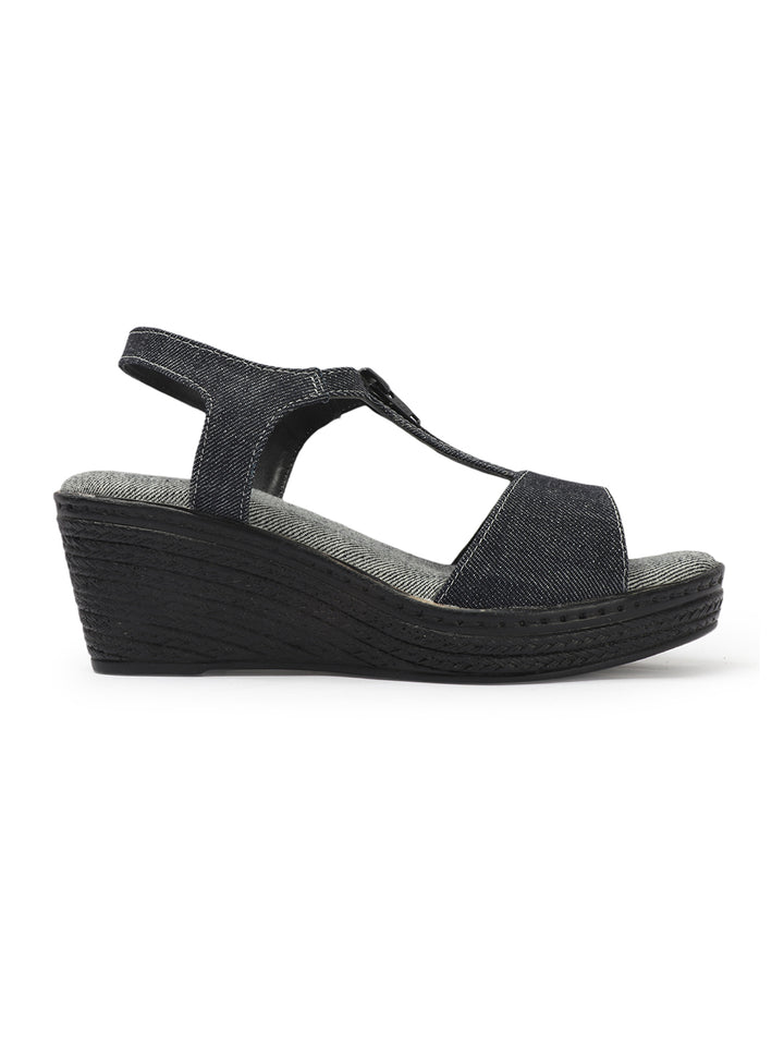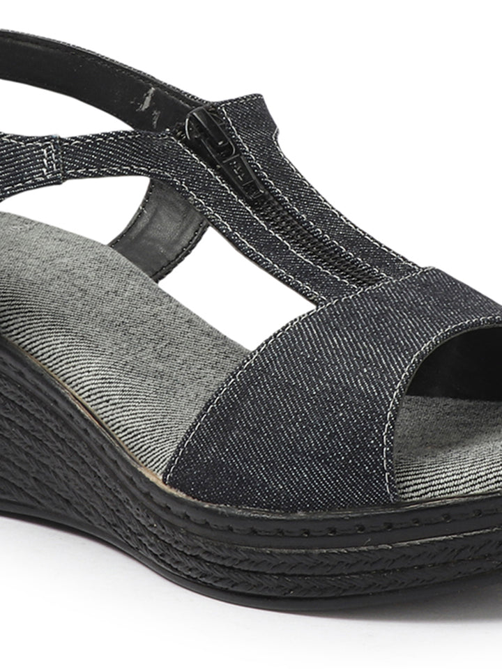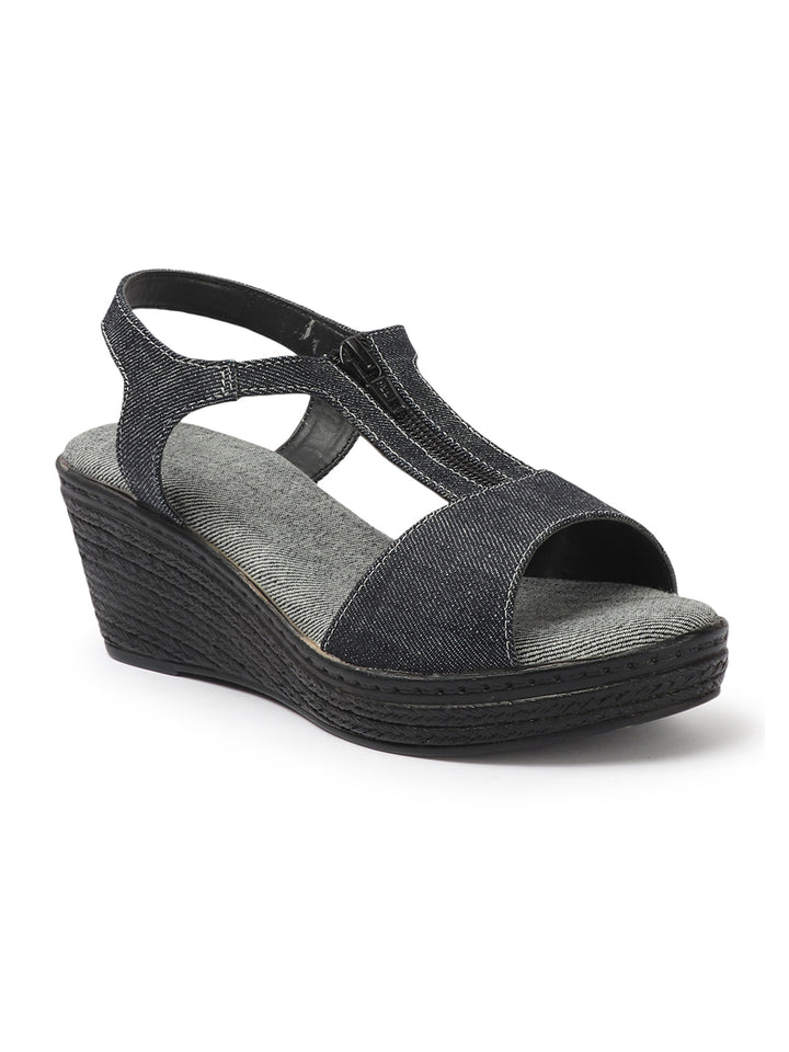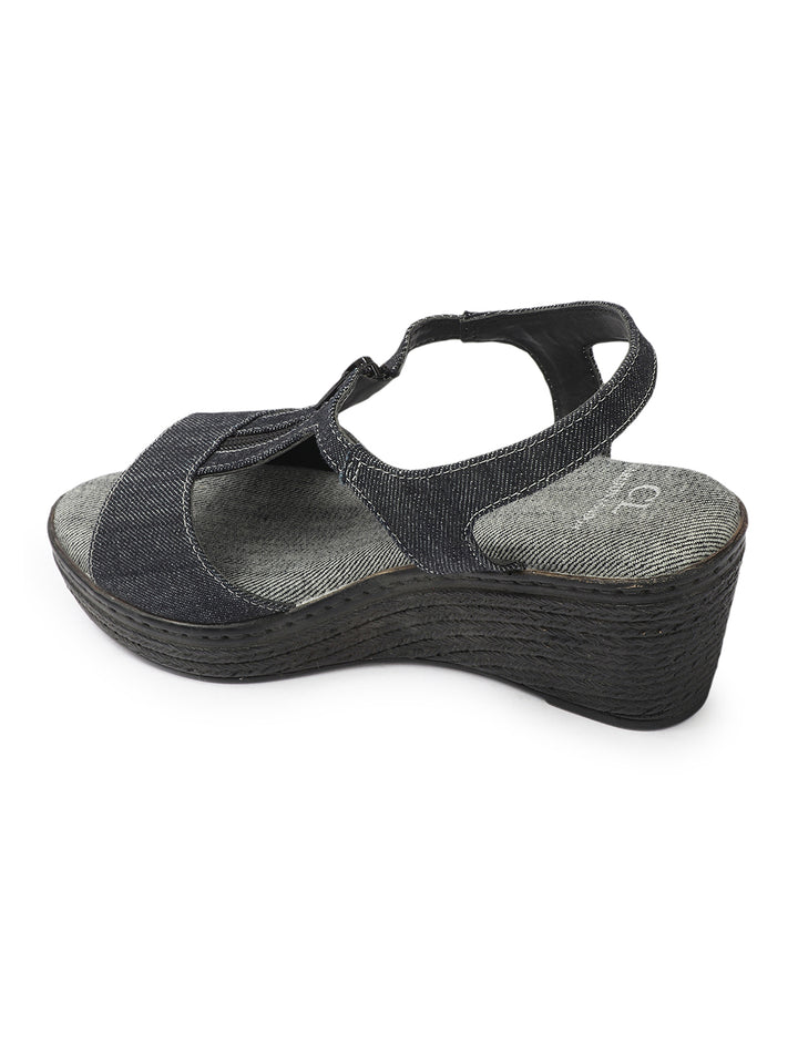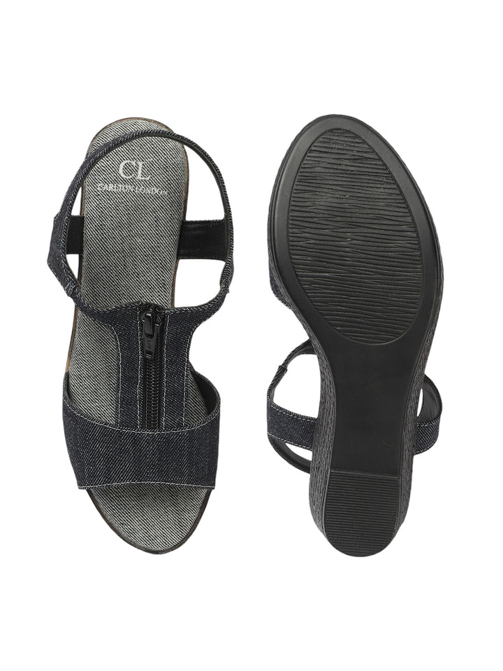 Carlton London Women's Denim Studded Crisscross Platform Sandals