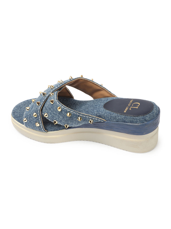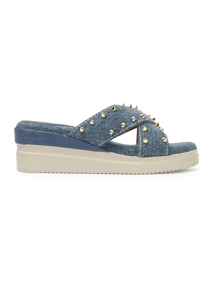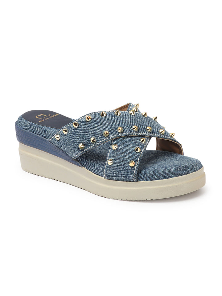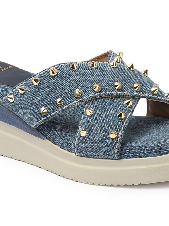 Carlton London Women's Denim Studded Crisscross Wedge Sandals