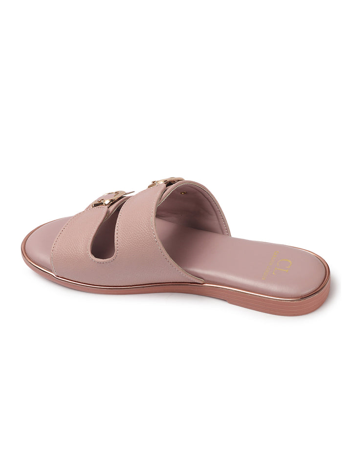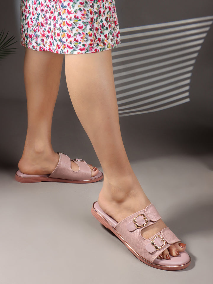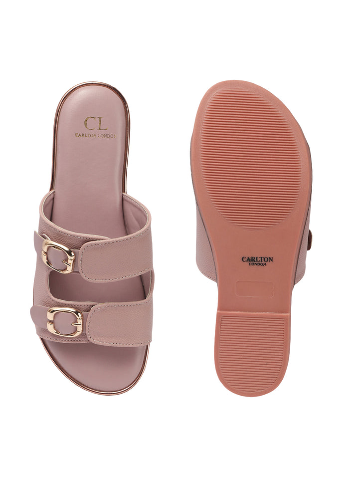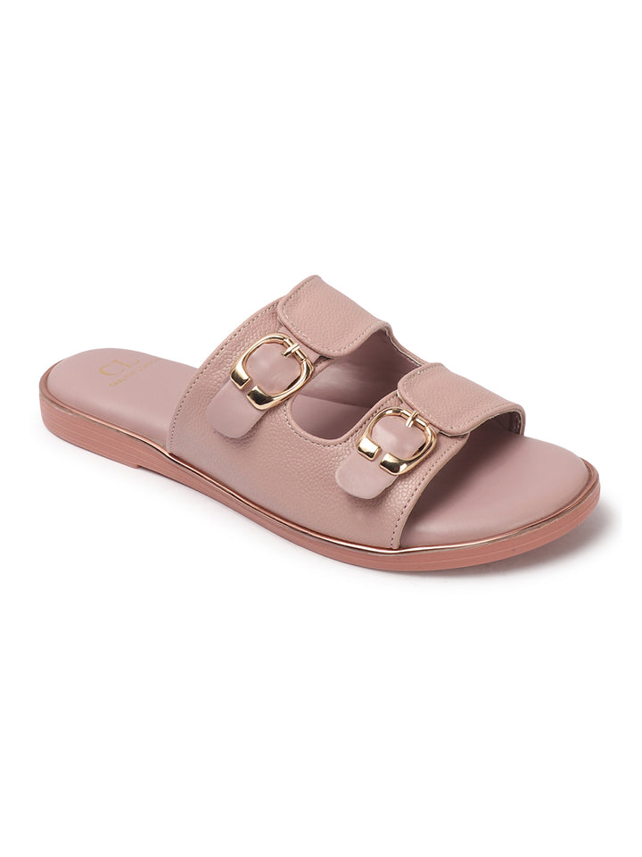 Carlton London Women's Double Buckle Adjustable Flat Slide Sandals