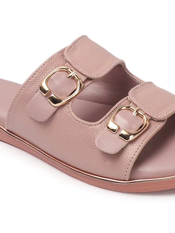 Women's Double Buckle Adjustable Flat Slide Sandals