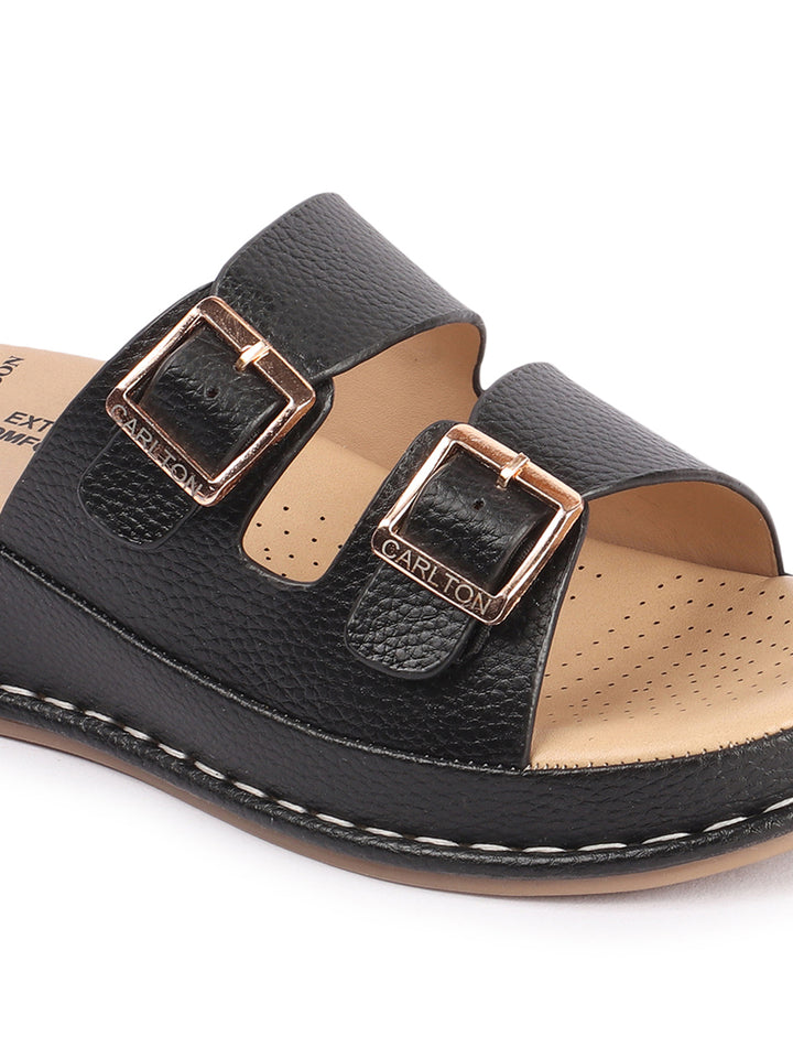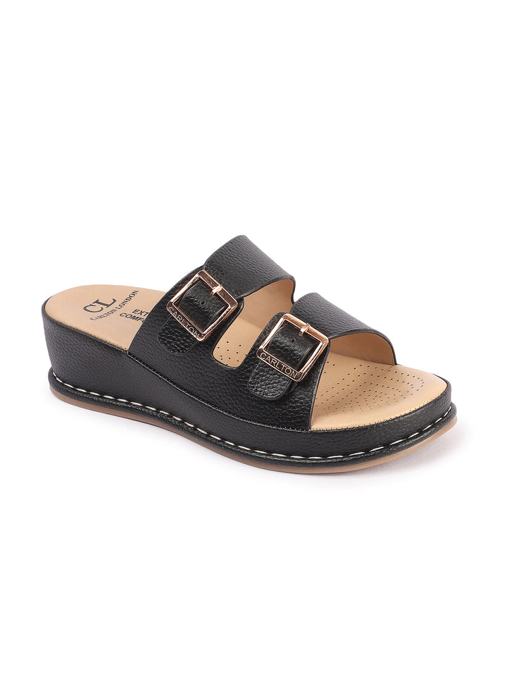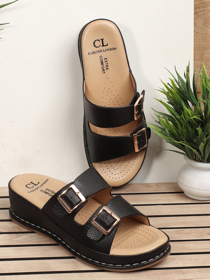 Carlton London Women's Double Buckle & Strap Wedge Sandals