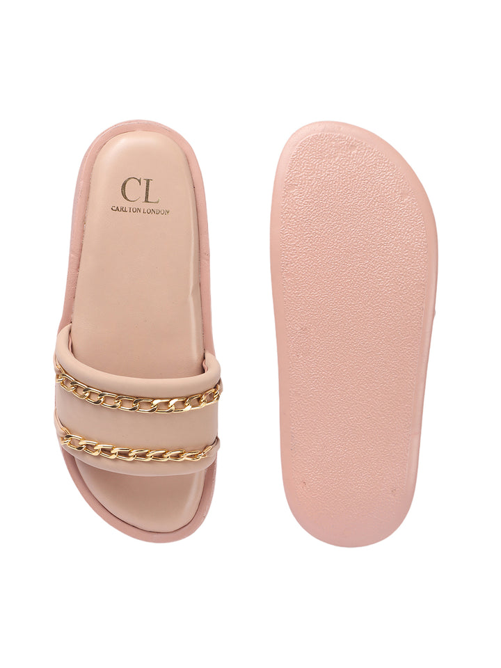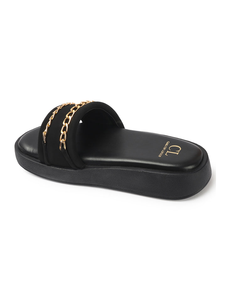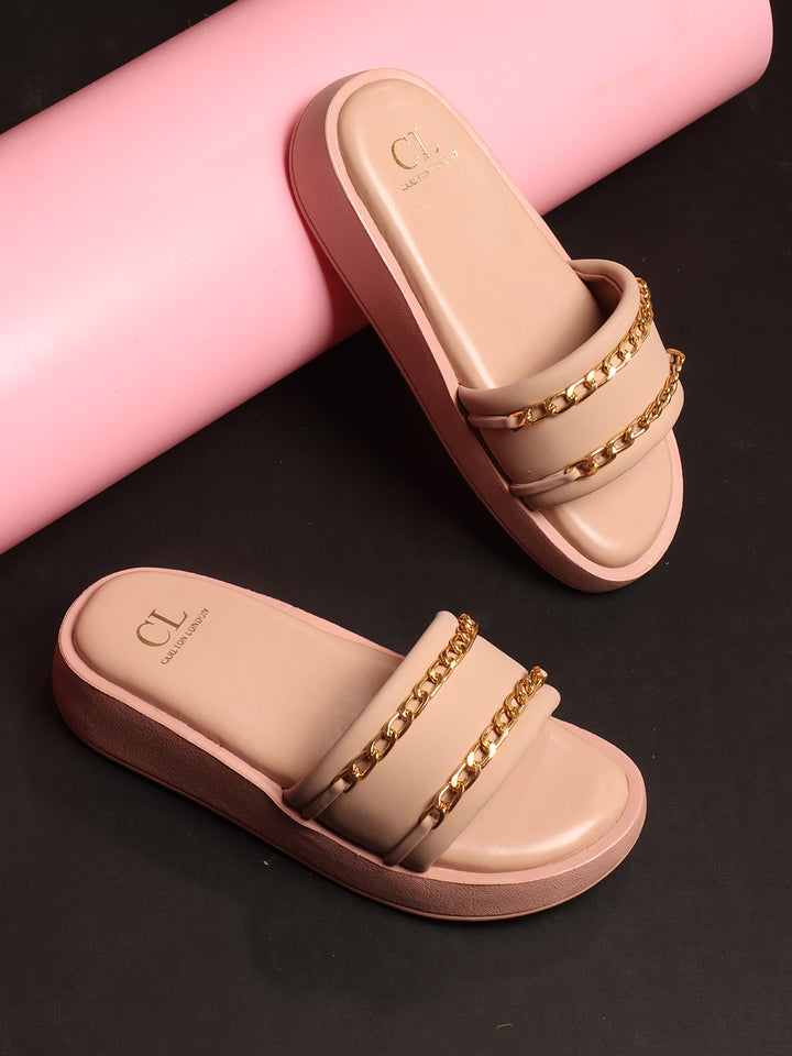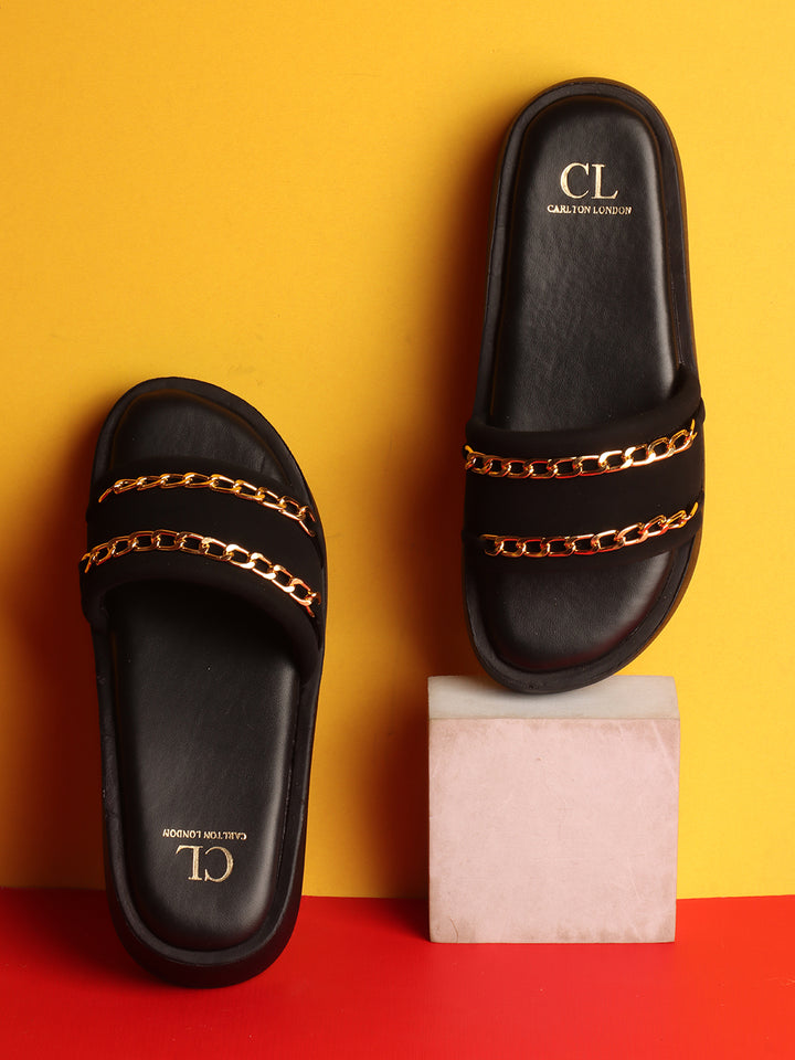 Carlton London Women's Double Strap Chain Detail Platform Slide Sandals
