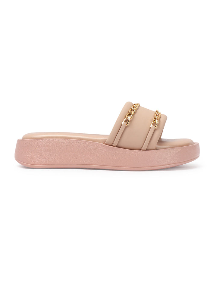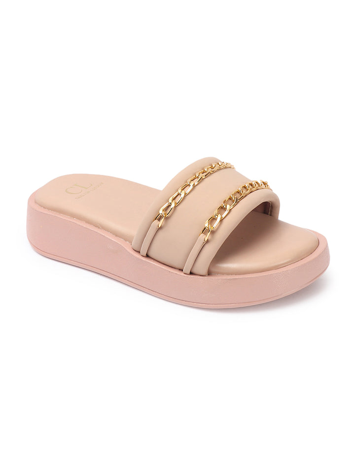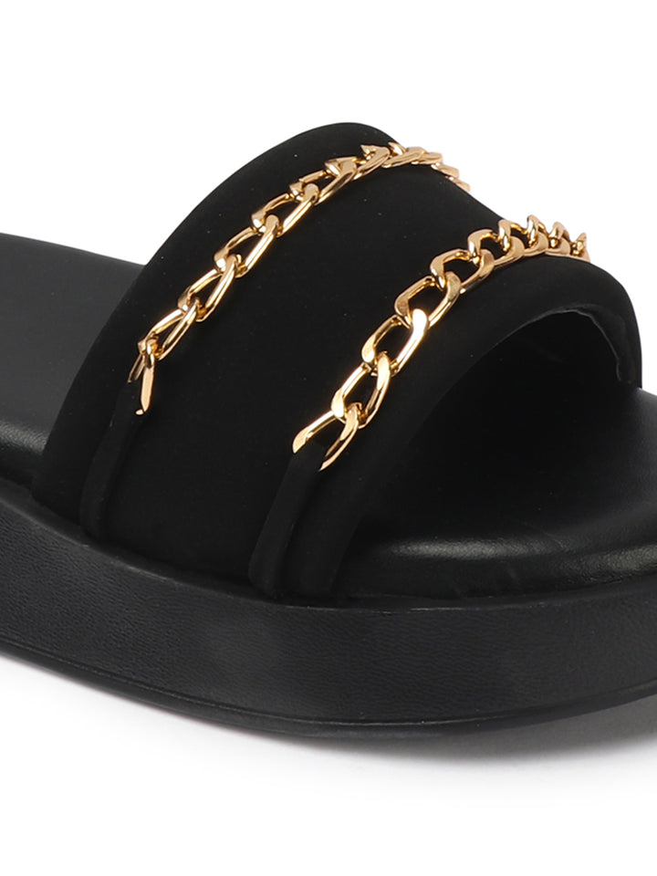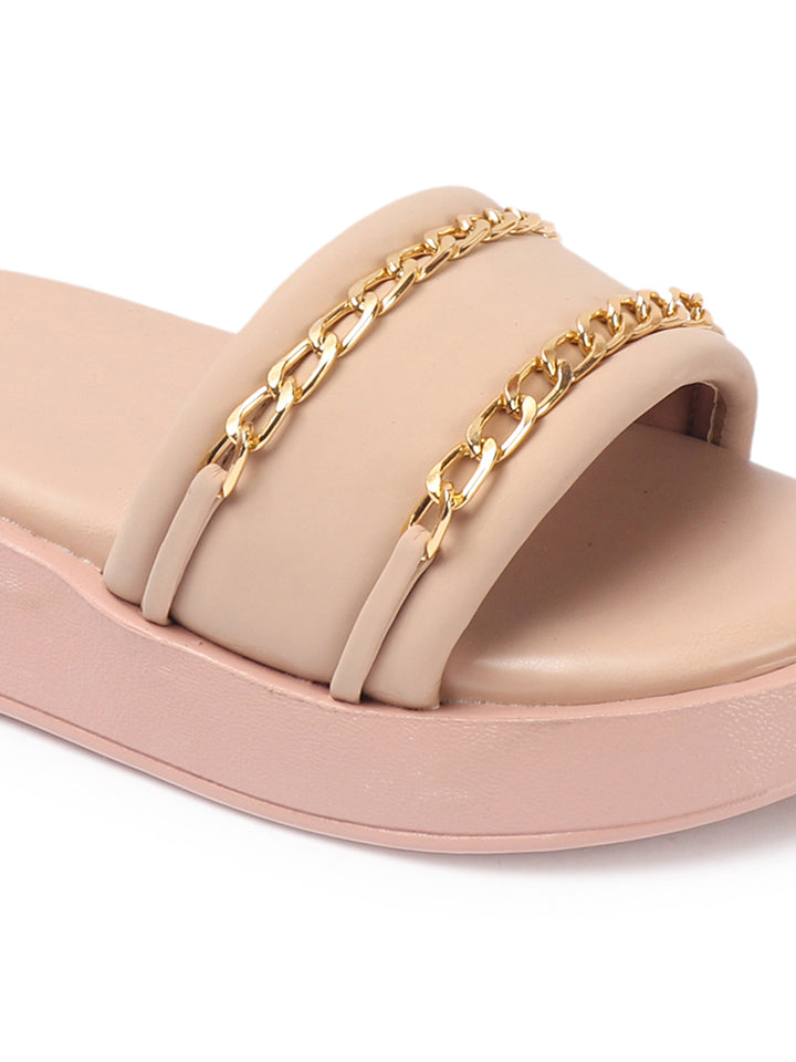 Women's Double Strap Chain Detail Platform Slide Sandals